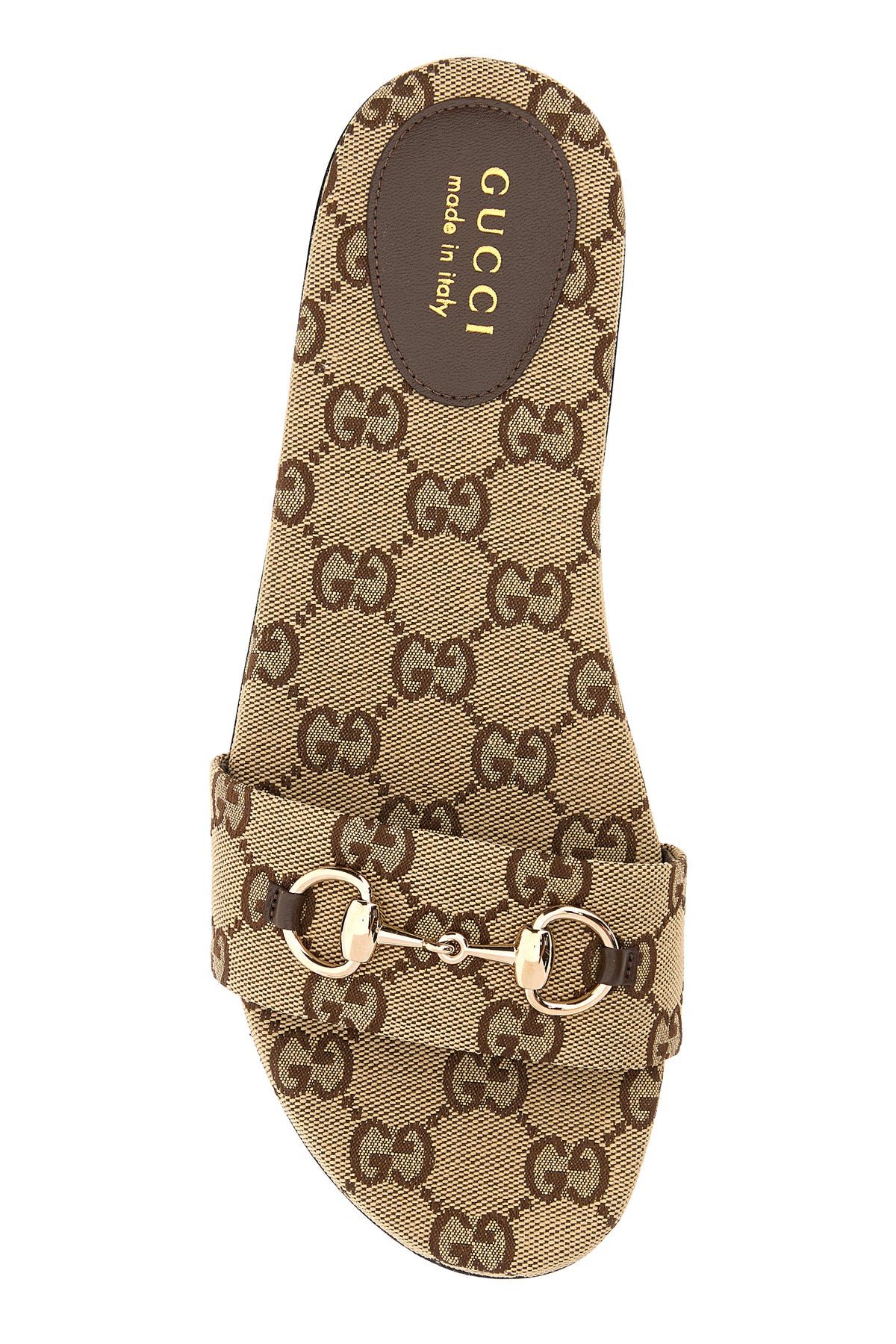 Slippers realized in GG fabric enriched by Horsebit metal detail on the instep.