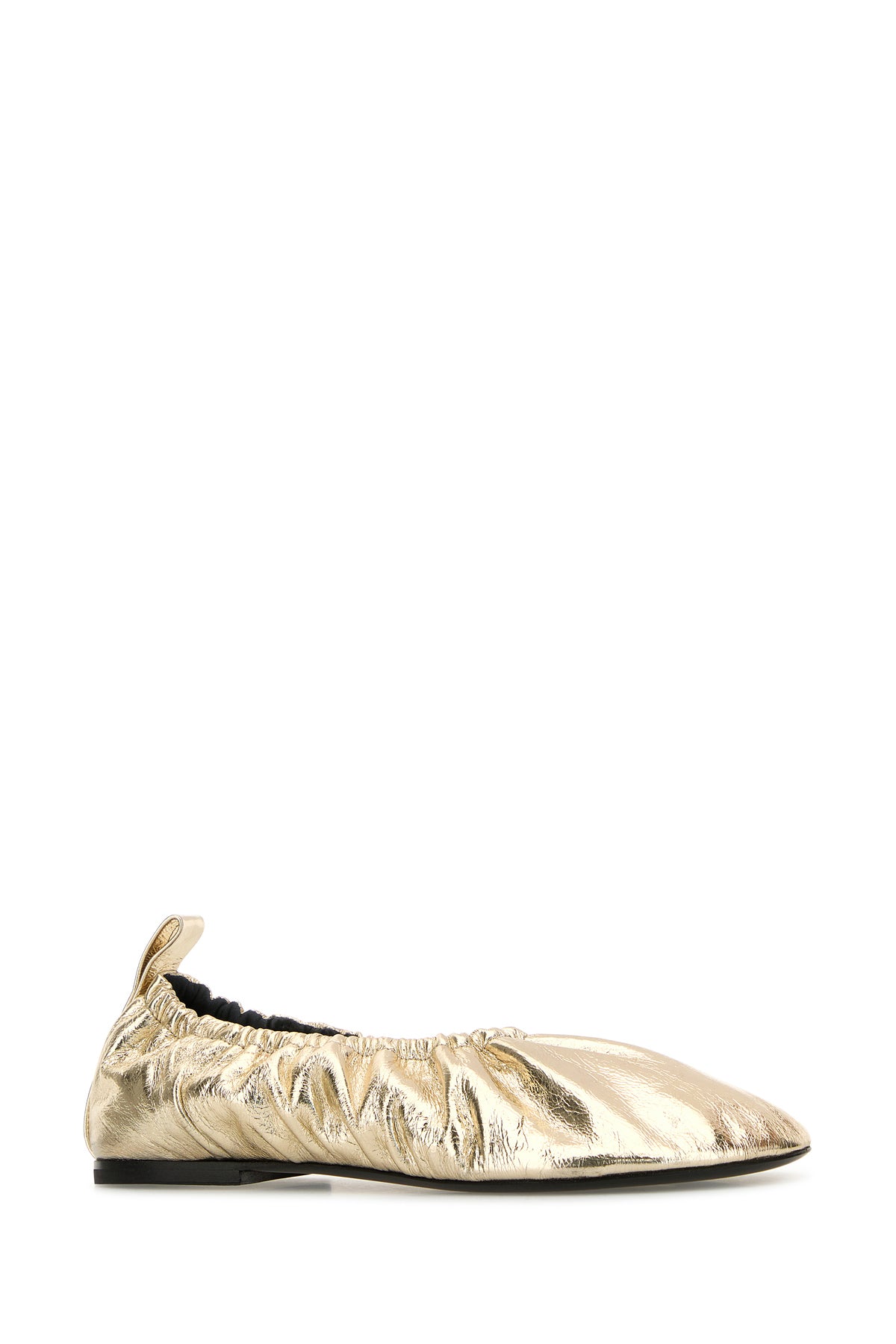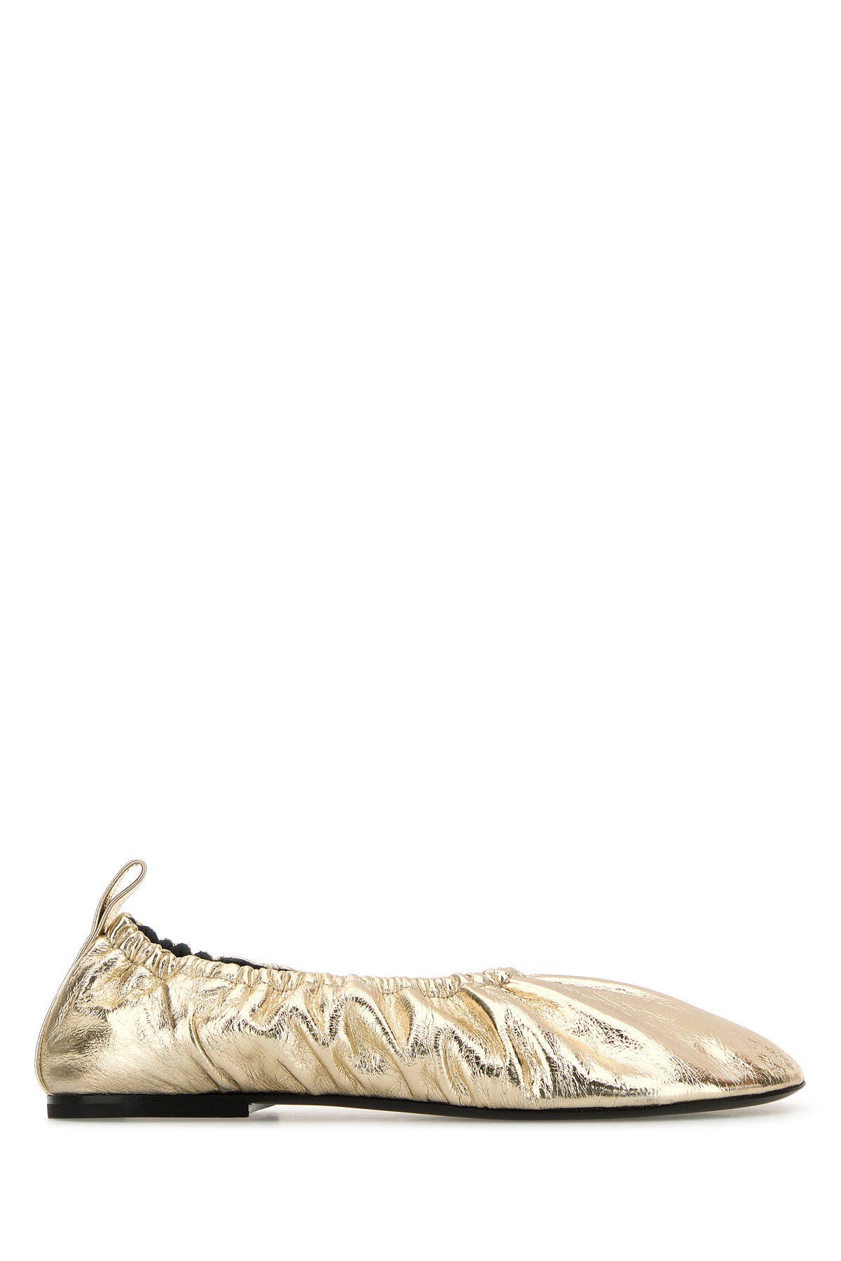 Ballerinas realized in laminated ovine leather characterized by chattering on the trimmings.
