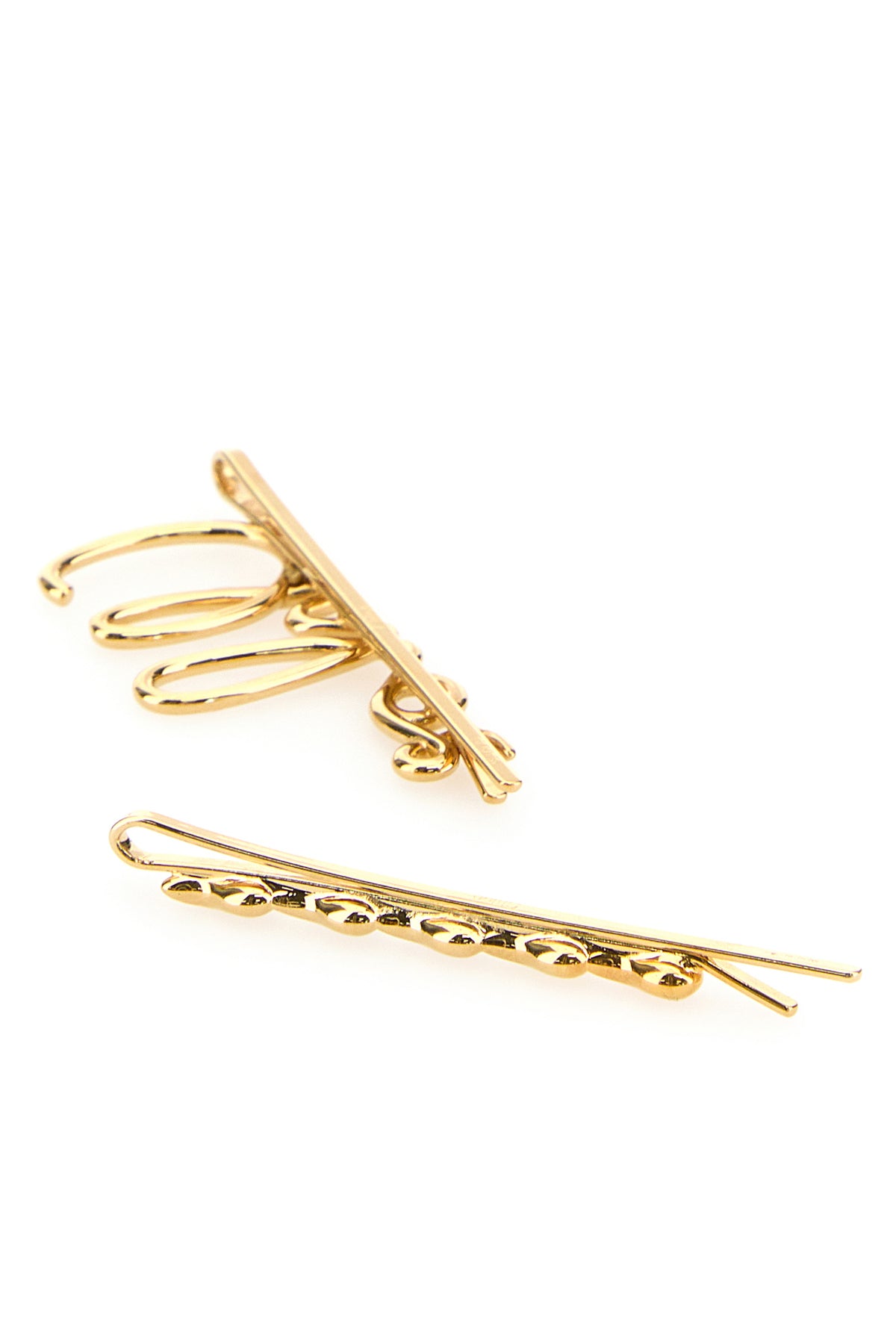 Hair clips realized in gold-tone plated metal enriched by metal lettering logo.