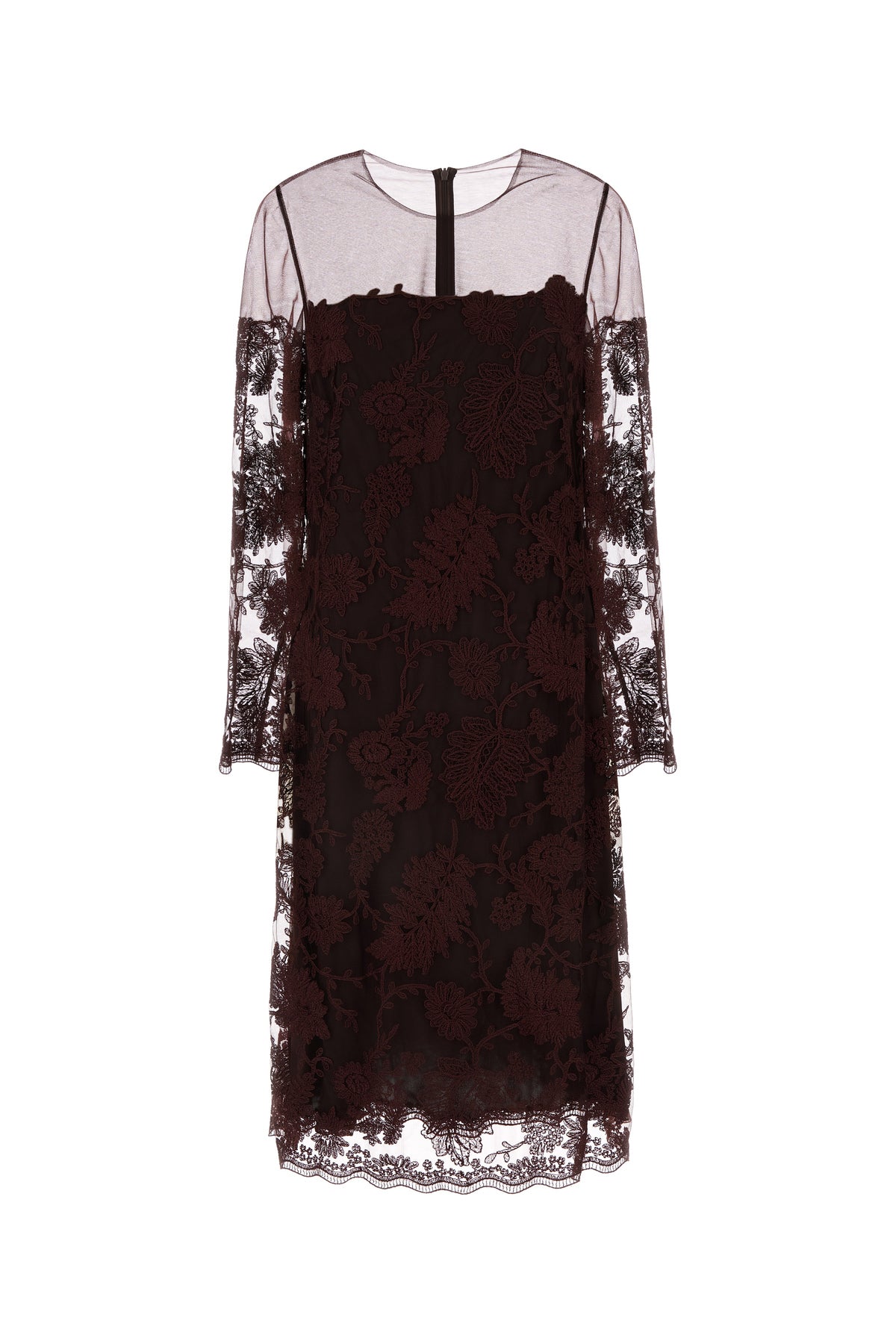 Dress realized in lace.
