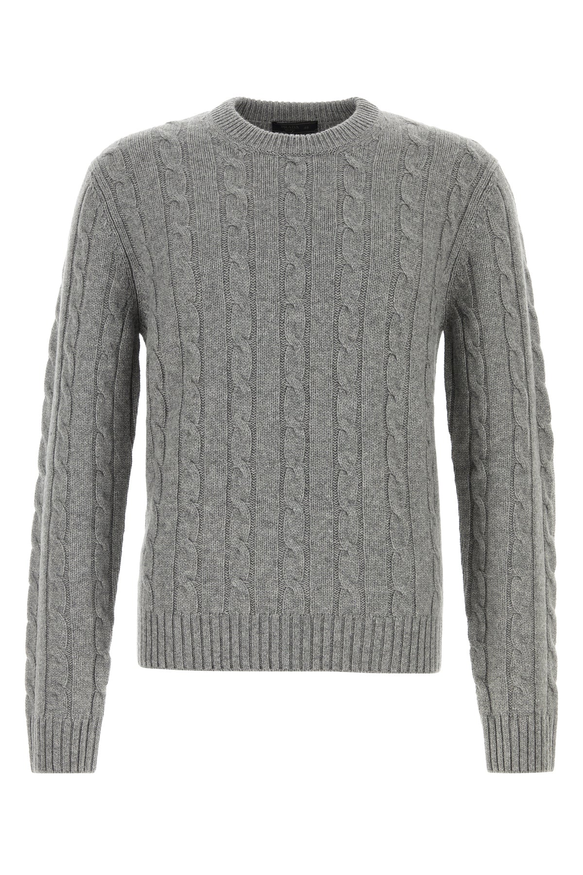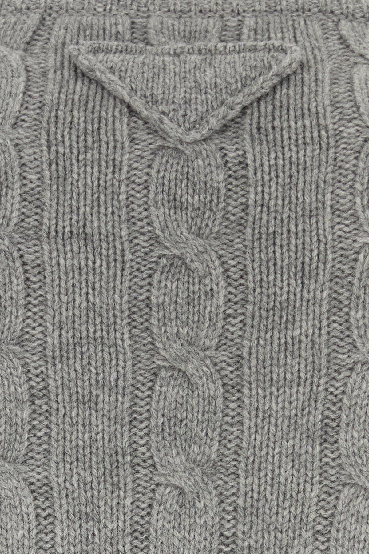Knitted sweater realized in pure cashmere enriched by iconic tonal fabric triangle at the back.