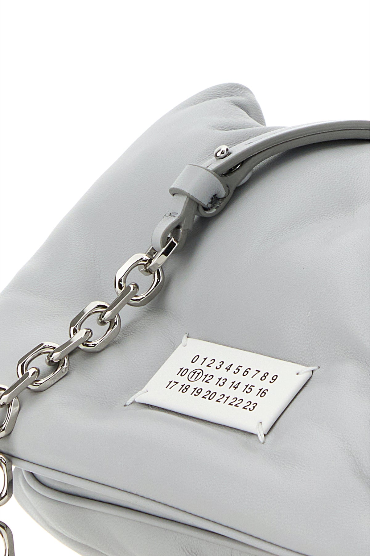 - Metal chain shoulder strap with leather shoulder pad