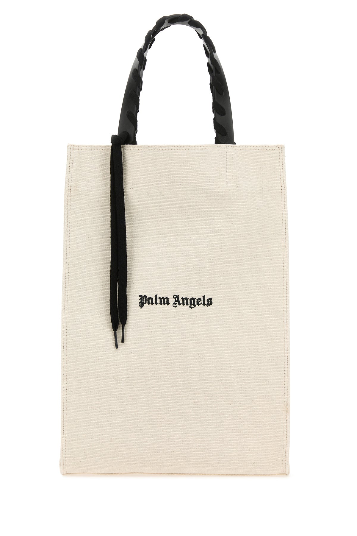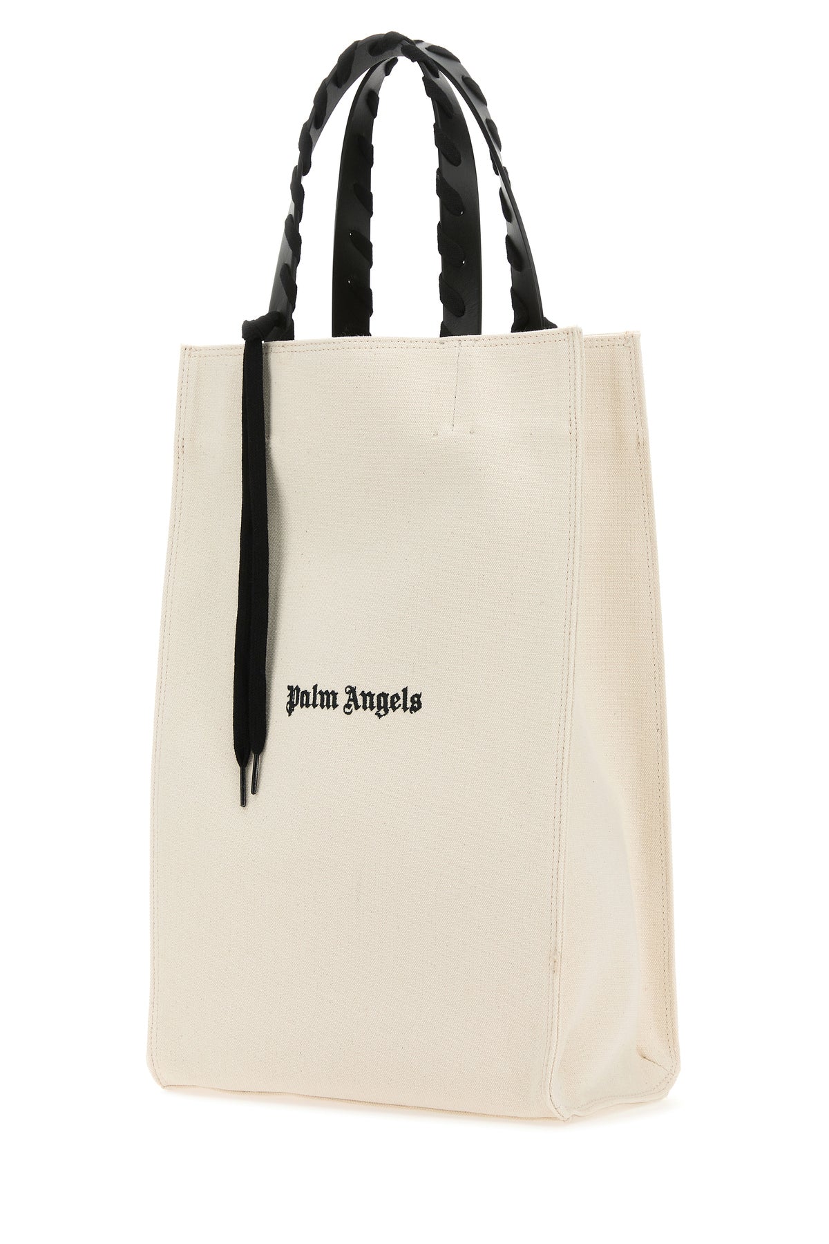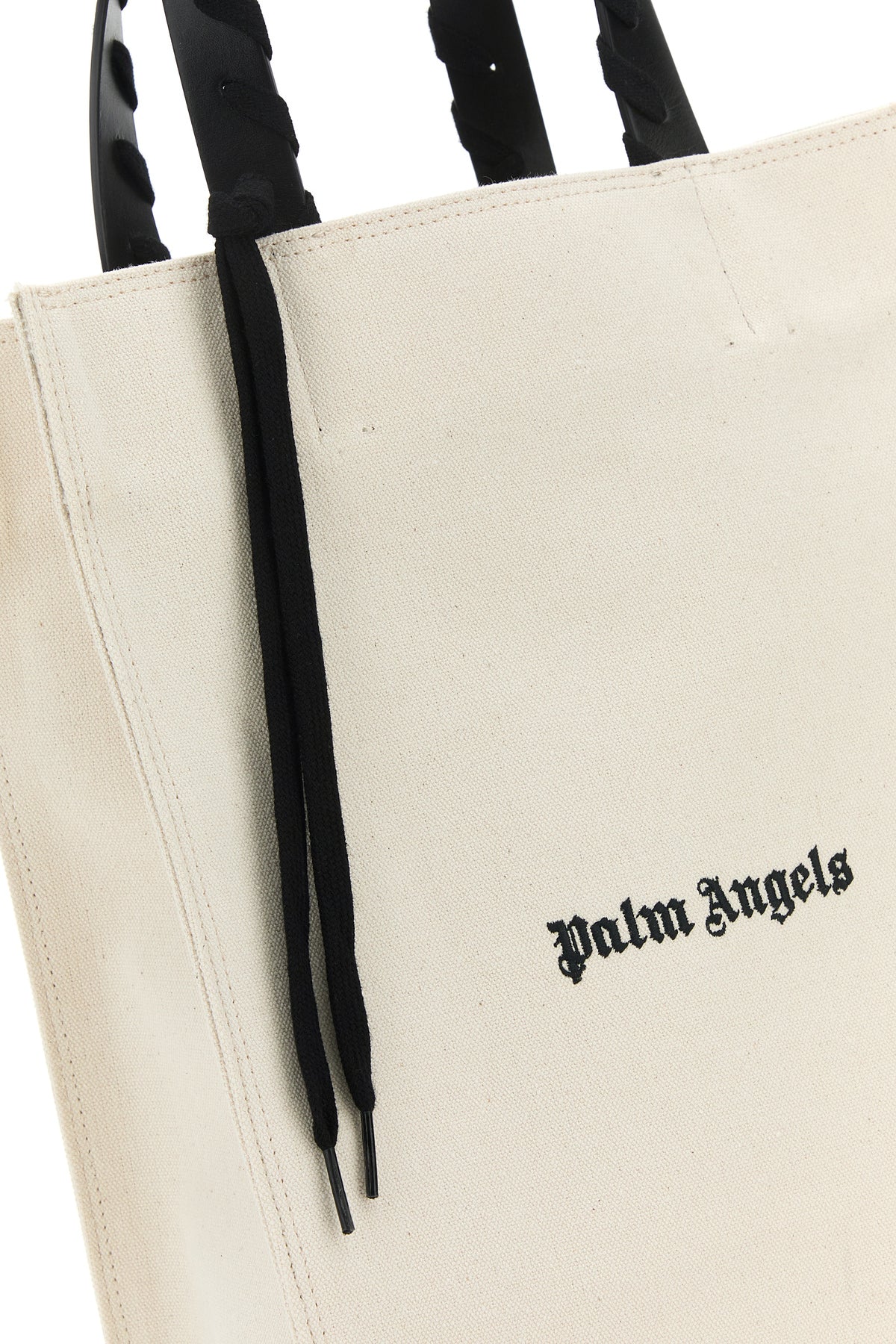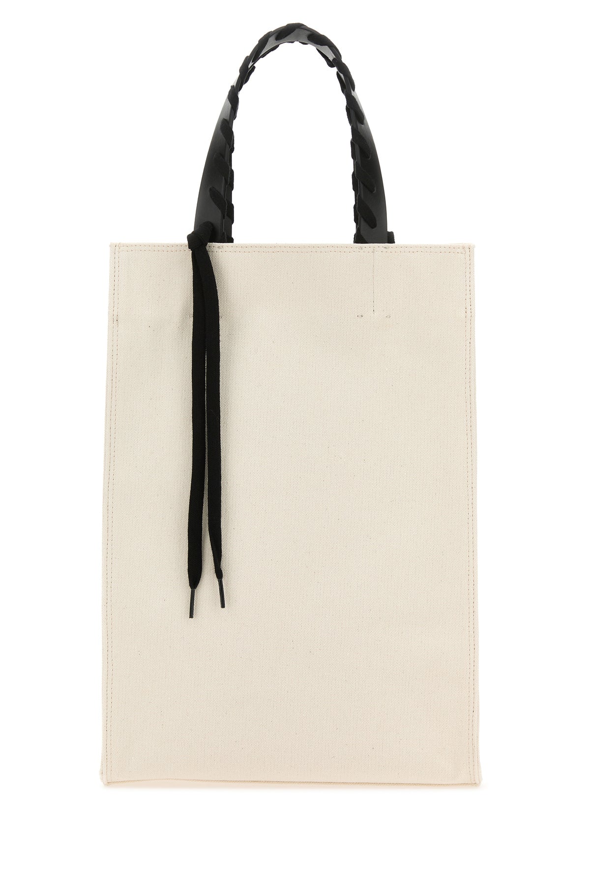 Shopping bag realized in pure cotton canvas characterized by contrasting logoed embroidery at the front enriched by decorative laces on the handles.