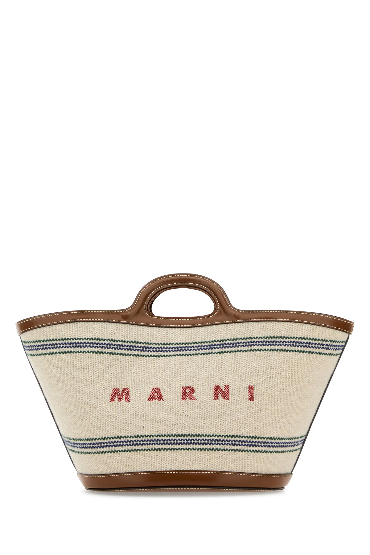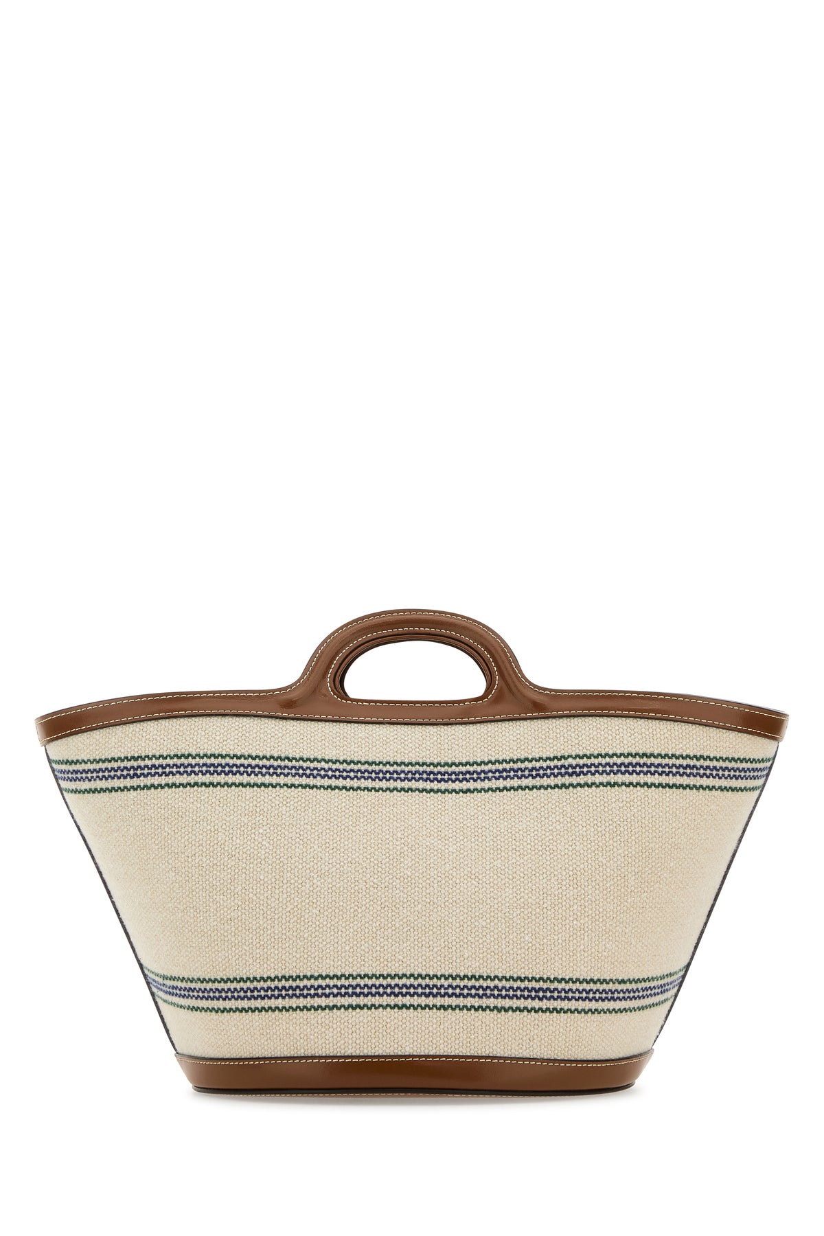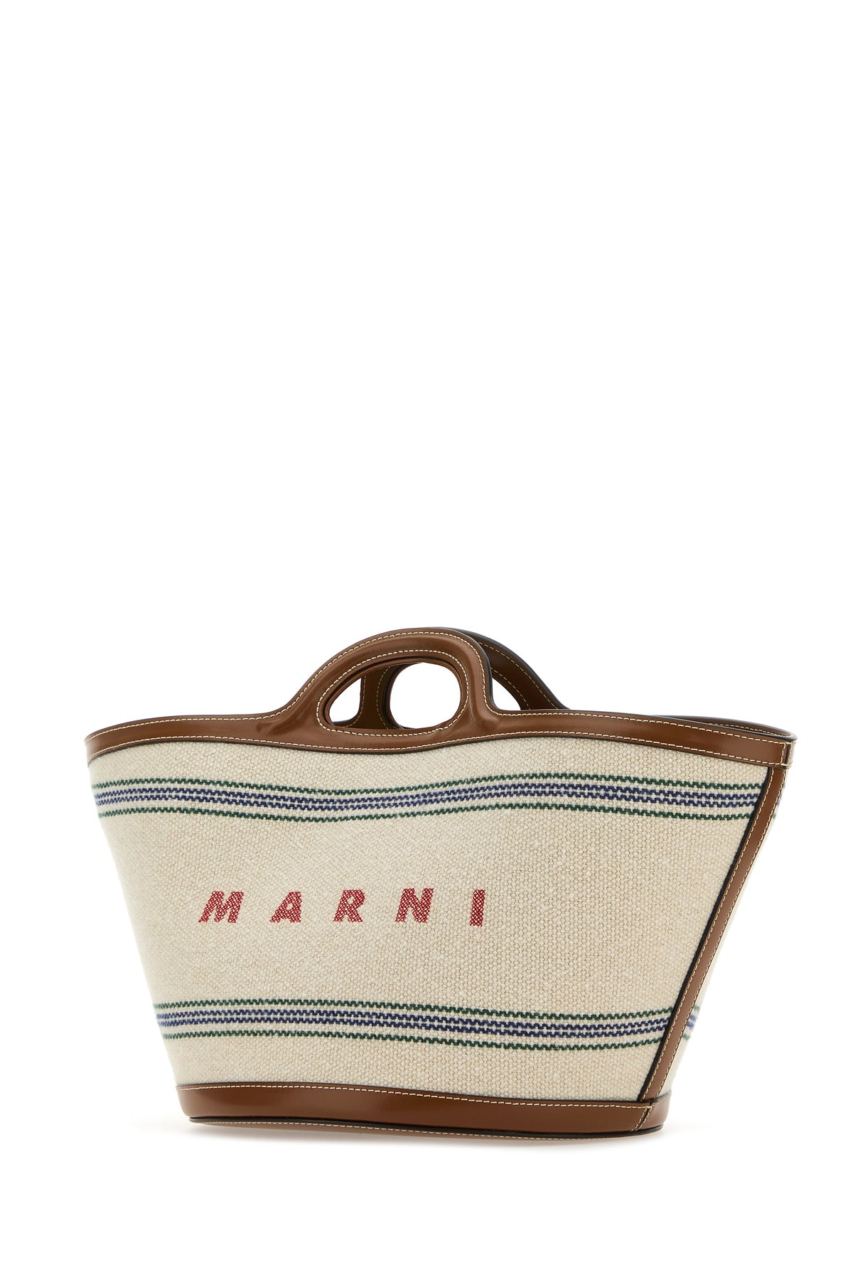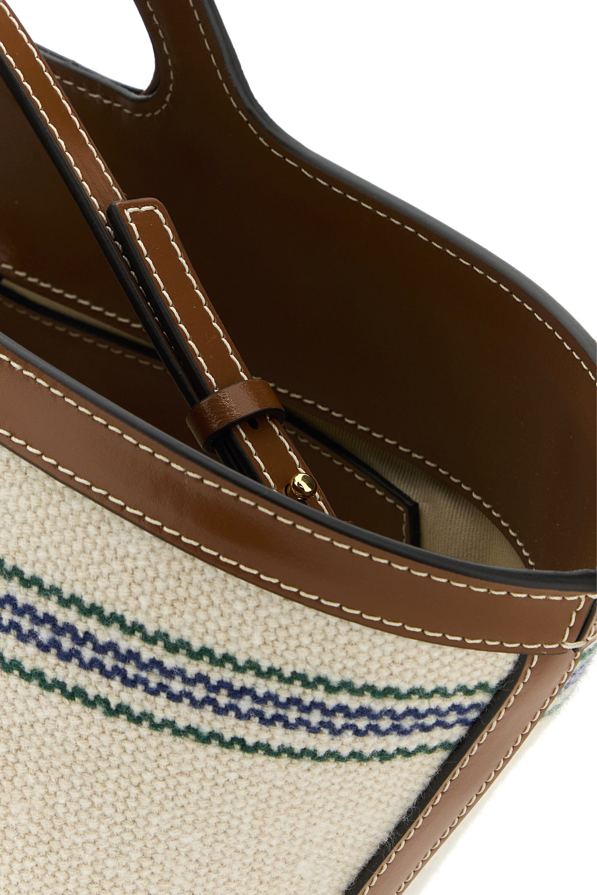 Handbag realized in canvas with smooth bovine leather inserts characterized by contrasting embroidered logo at the front.