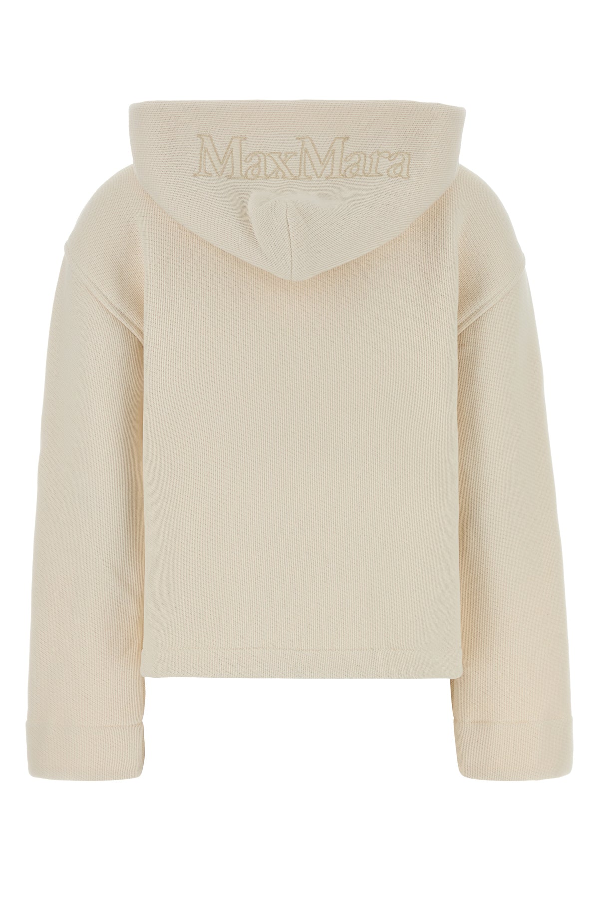 Sweatshirt realized in cotton blend characterized by embroidered logo on the hood.