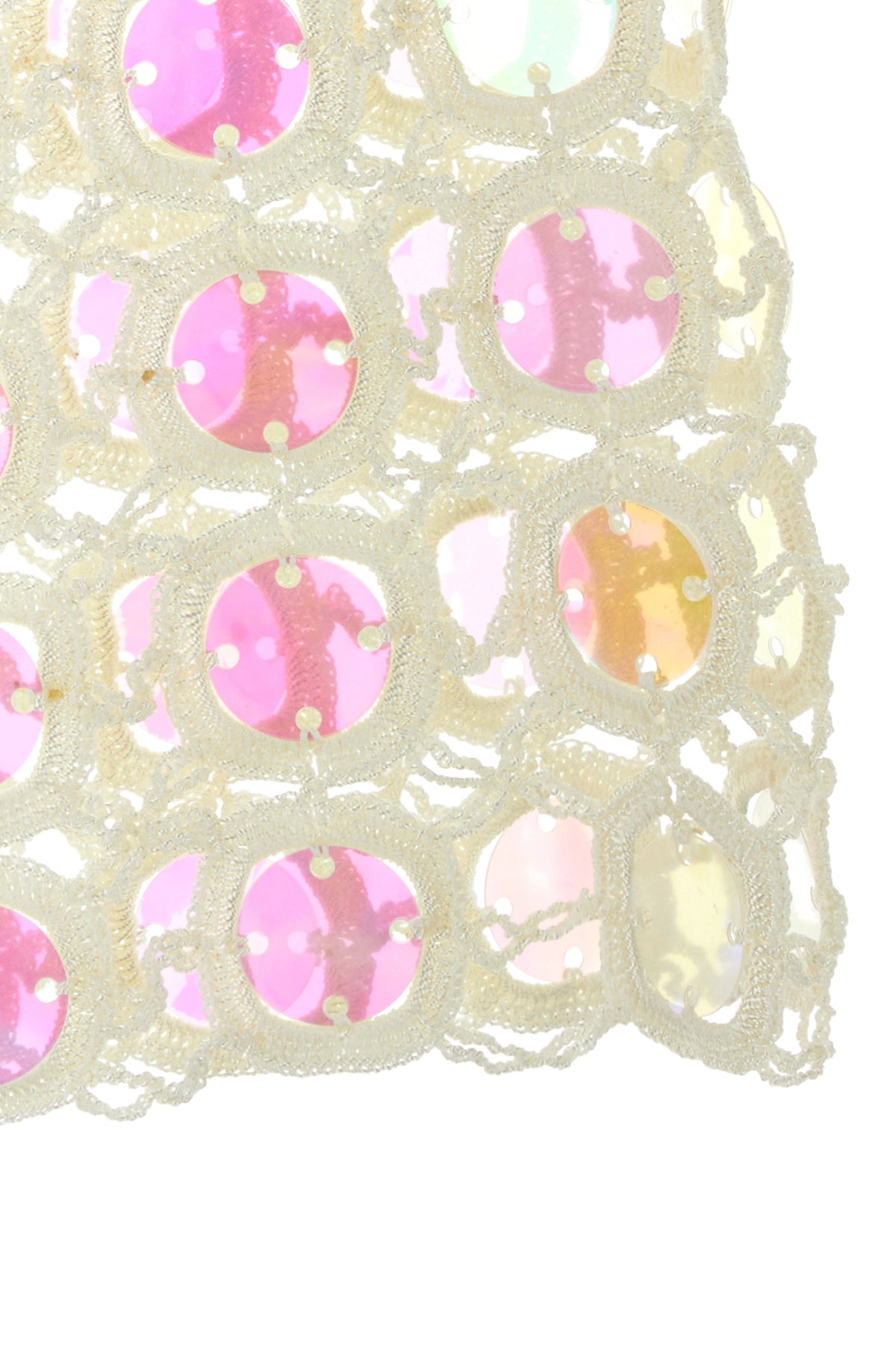 Crop-top realized in crochet enriched by see-thought patches on the entire surface.