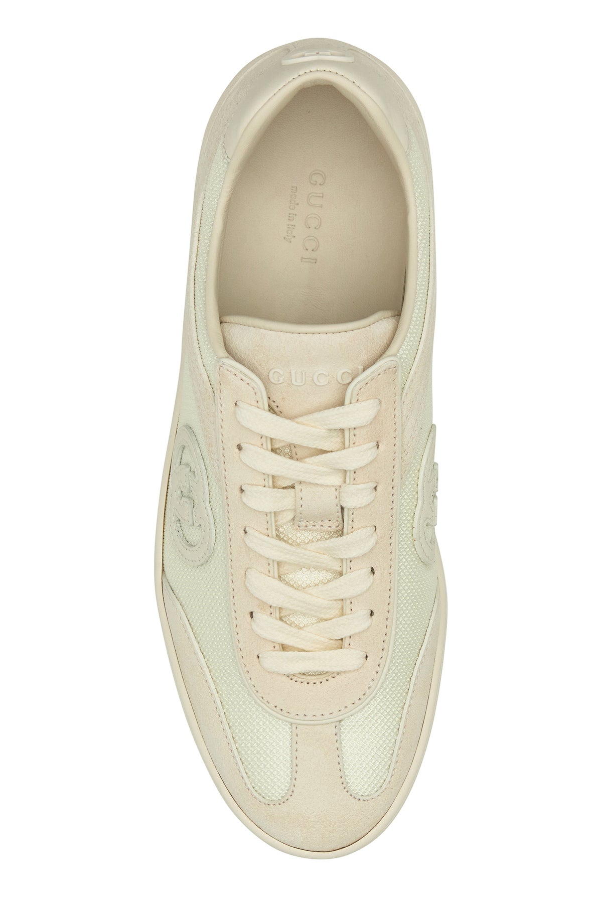 Sneakers realized in fabric and suede enriched by Incrocio GG leather patch on the sides and on the heel.