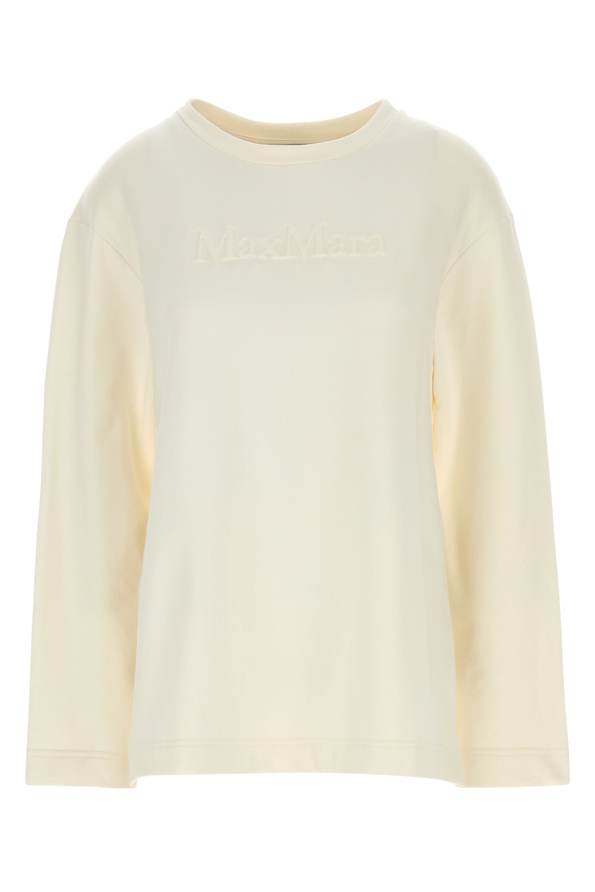 Lightweight sweatshirt realized in silk blend characterized by logo in relief at the front.