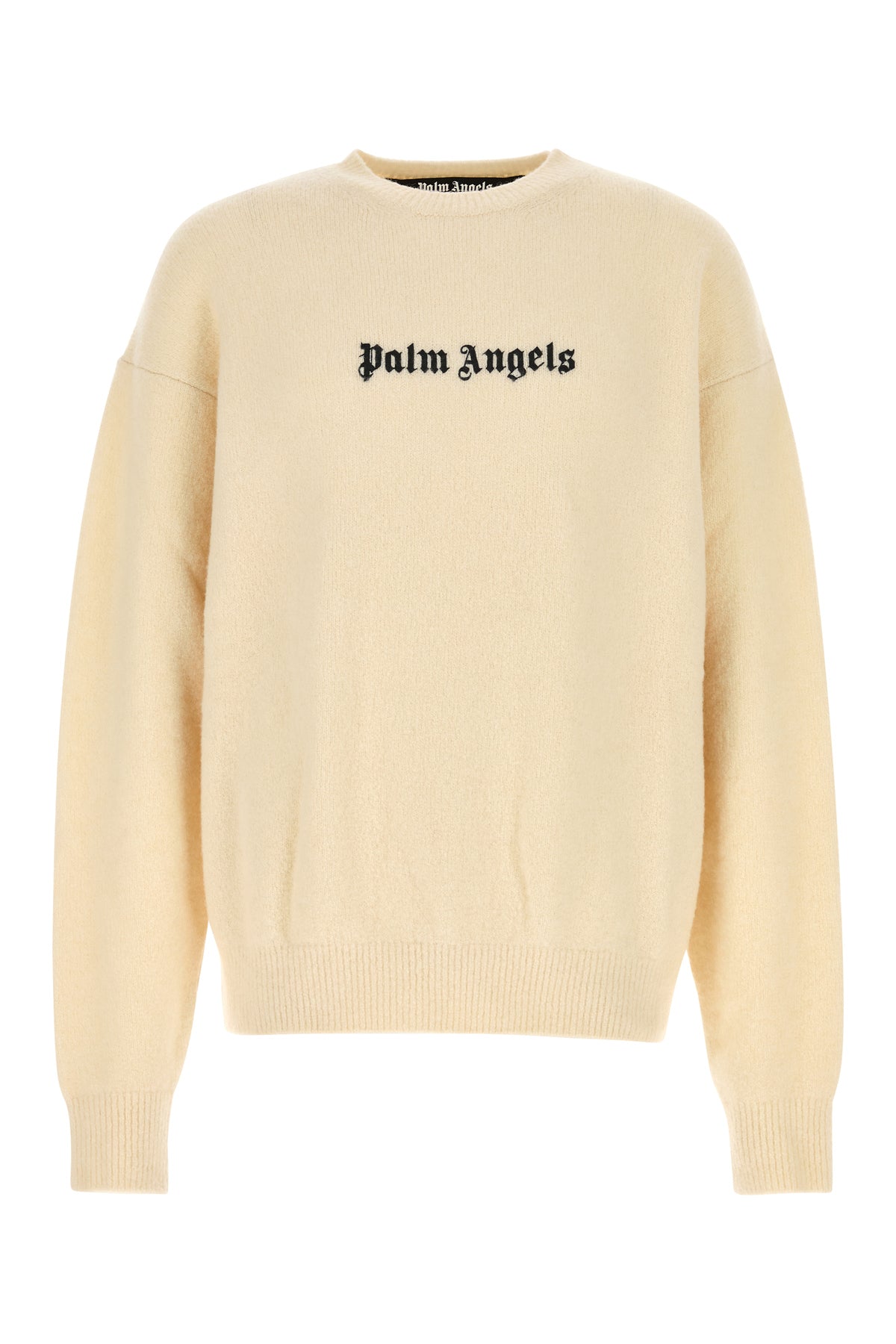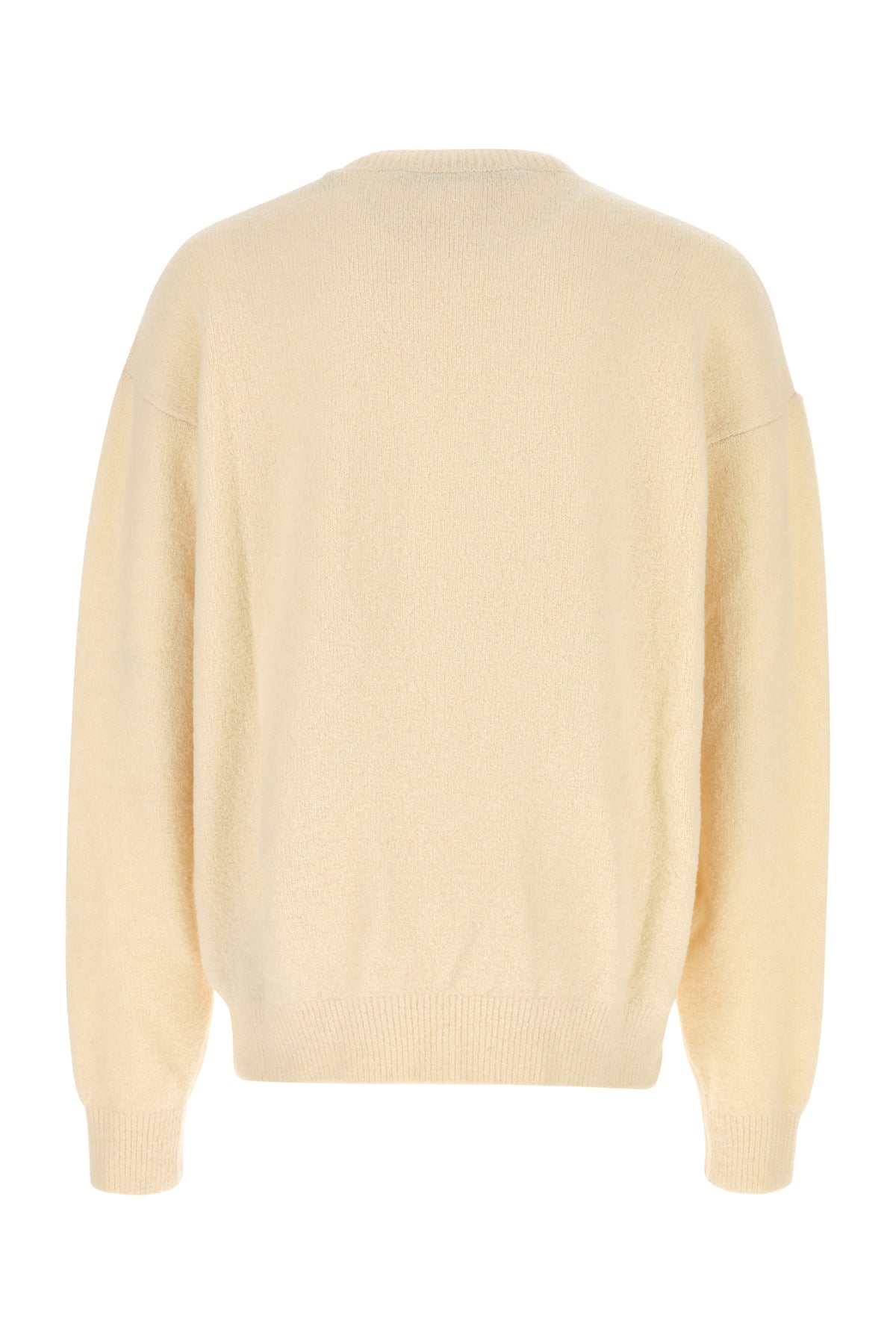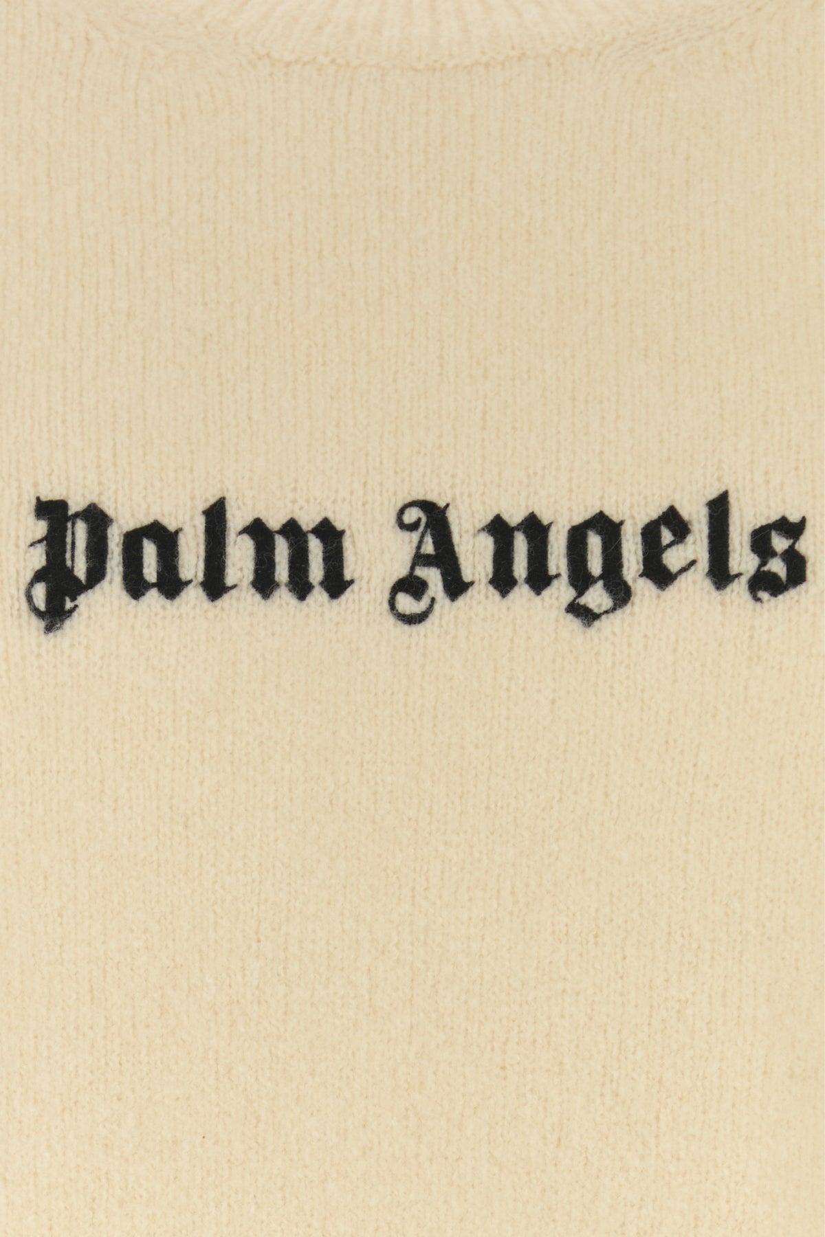 Sweater realized in stretch merino wool blend characterized by contrasting printed logo on the chest. - Ribbed crew-neck, cuffs and hemline