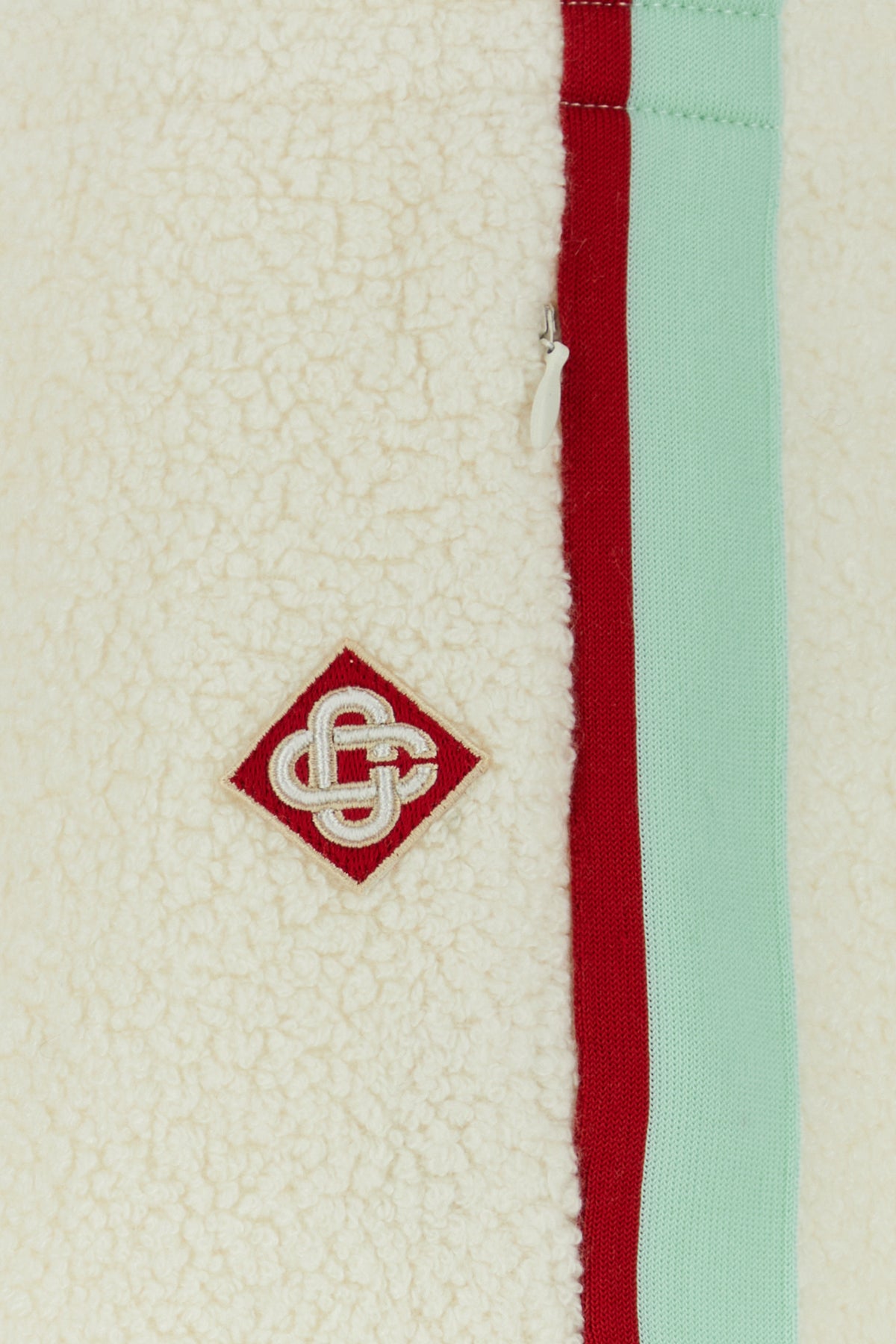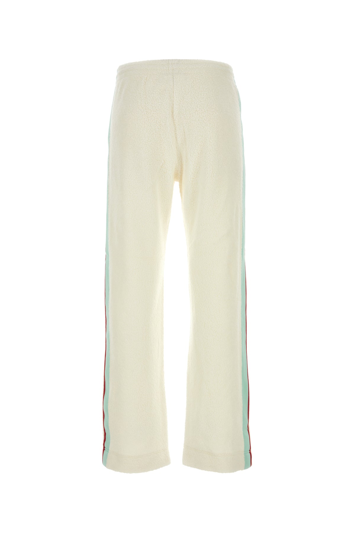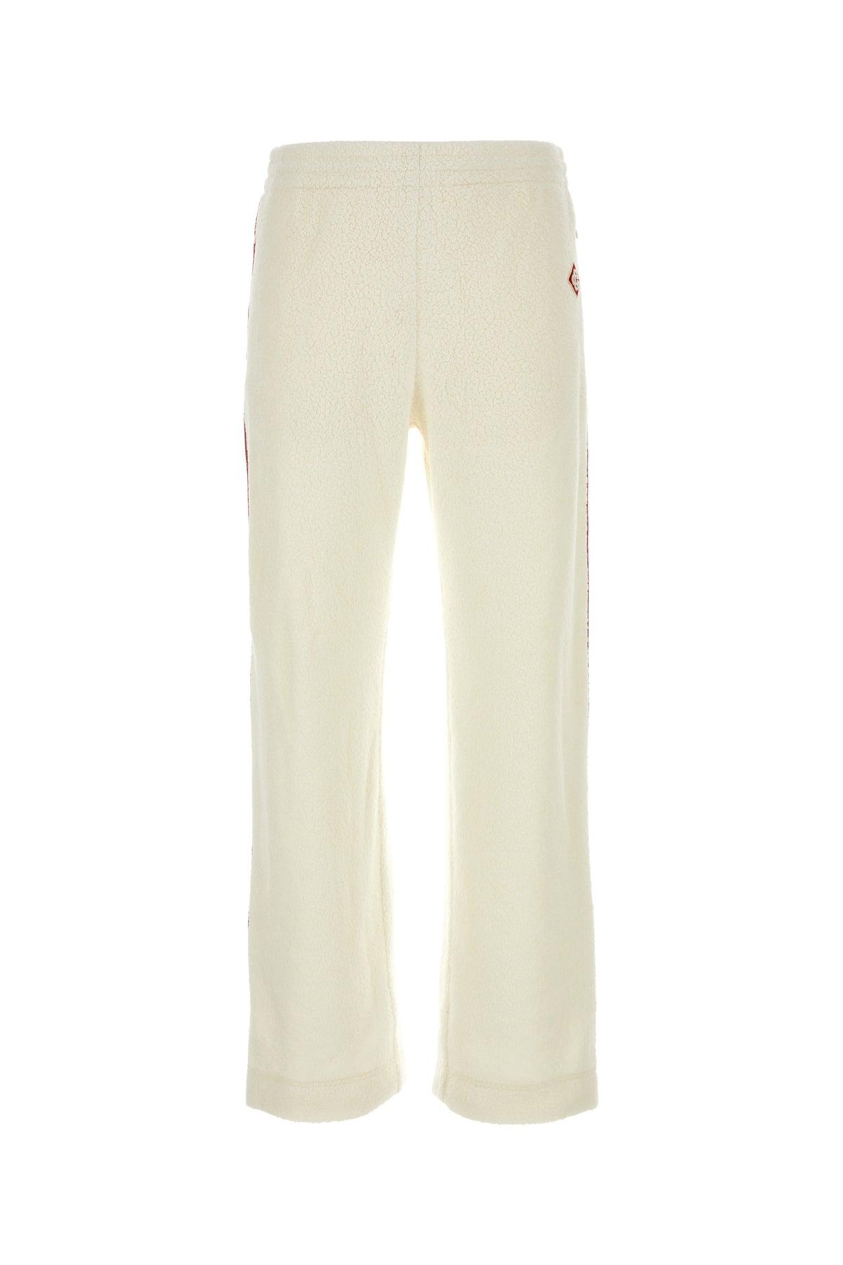 Joggers realized in terry characterized by contrasting bands on the sides enriched by contrasting logoed patch at the front.