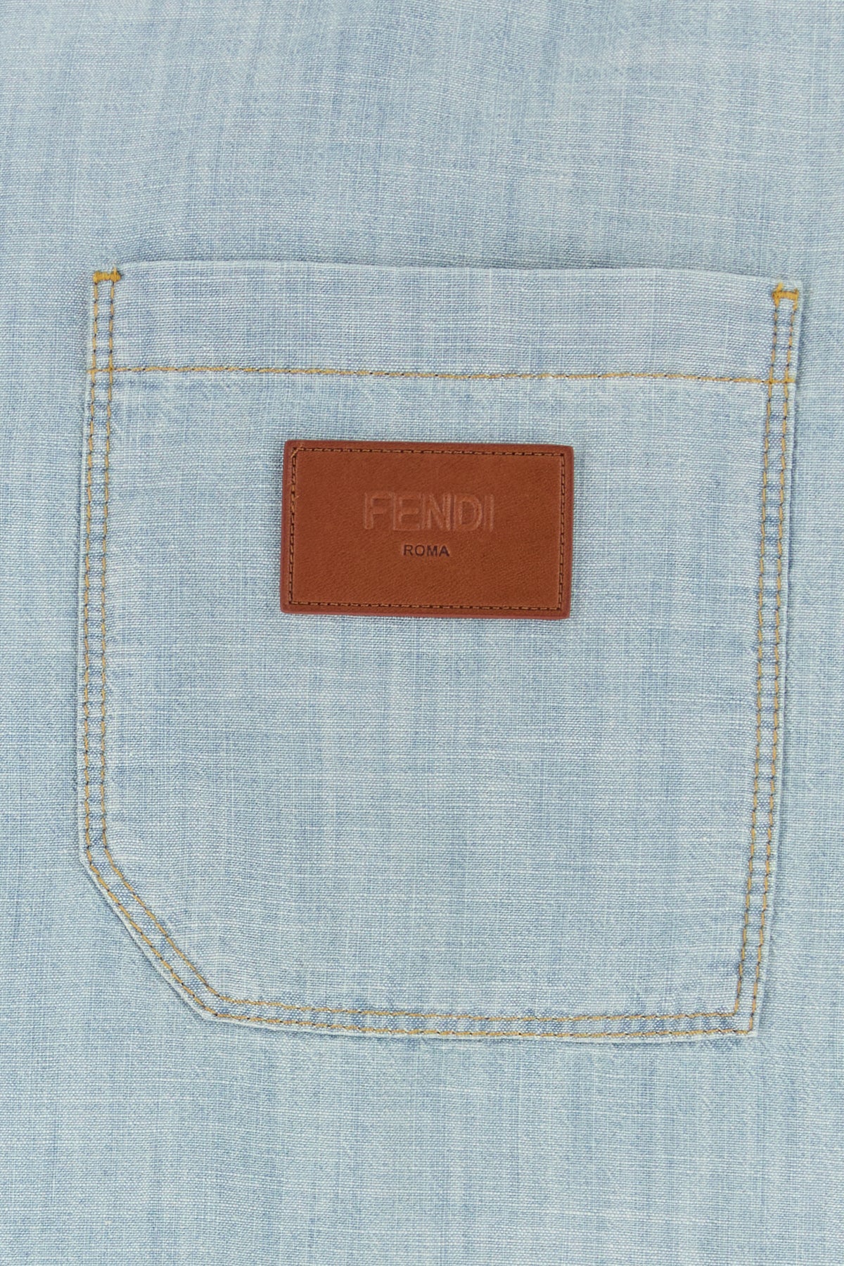 Short-sleeves shirt realized in pure cotton chambray enriched by contrasting logoed label on the chest.