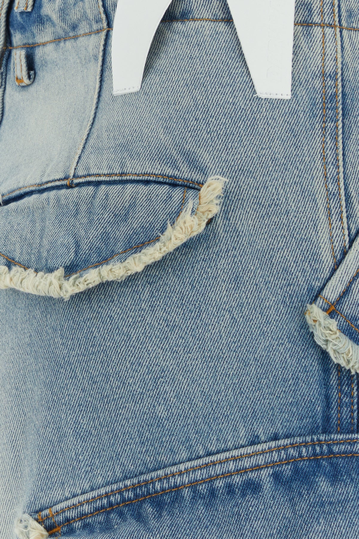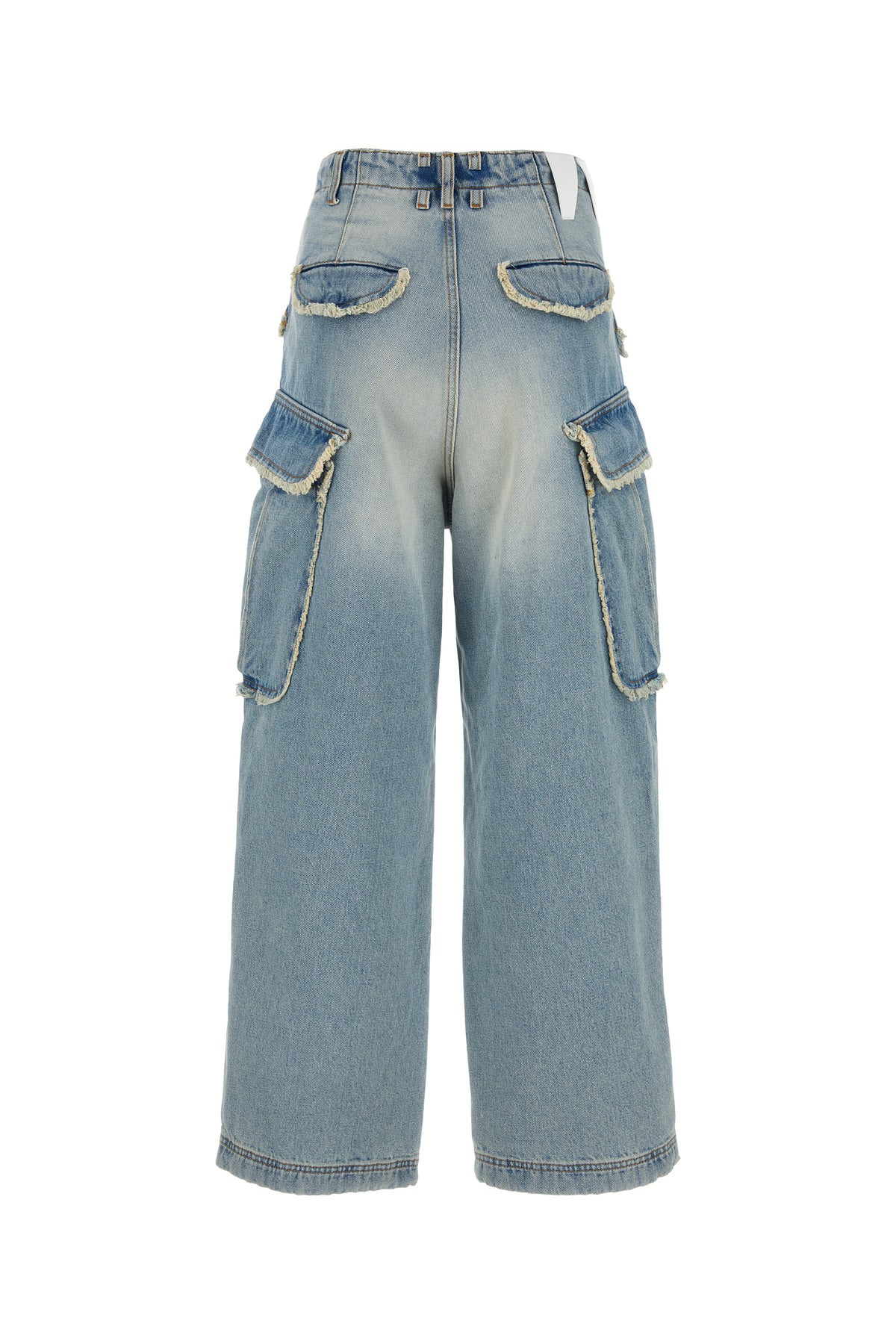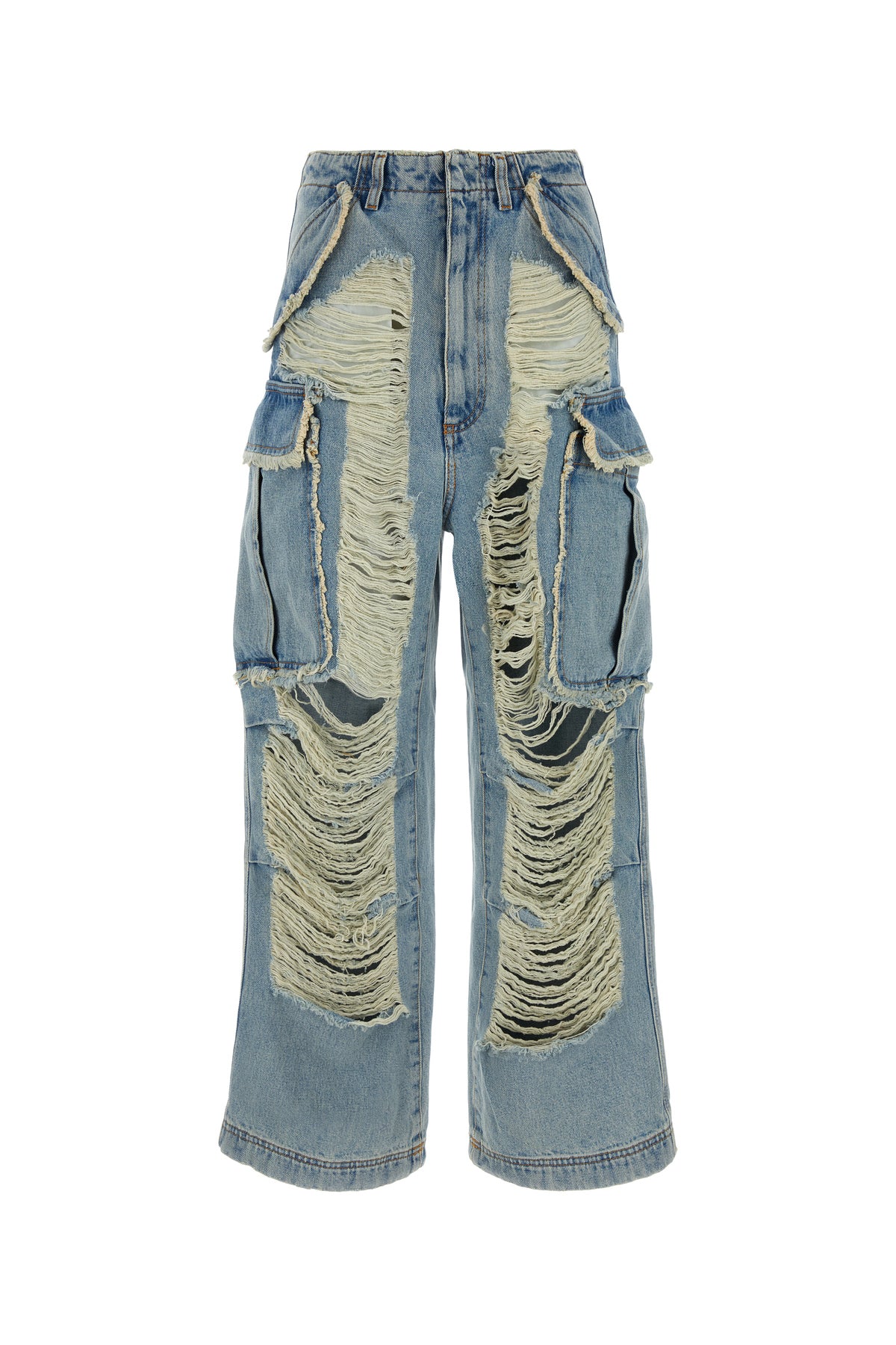 Cargo jeans realized in distressed pure cotton denim with intentional rips enriched by logoed label at the back.