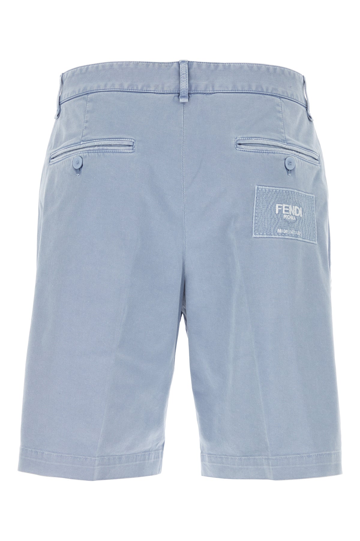 Bermuda shorts realized in stretch cotton enriched by logoed metal detail at the front and contrasting logoed patch at the back.