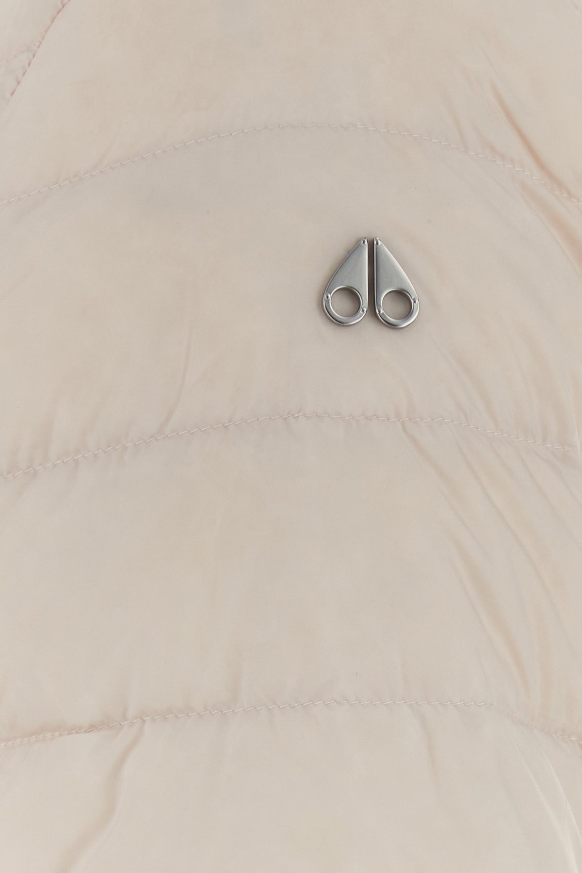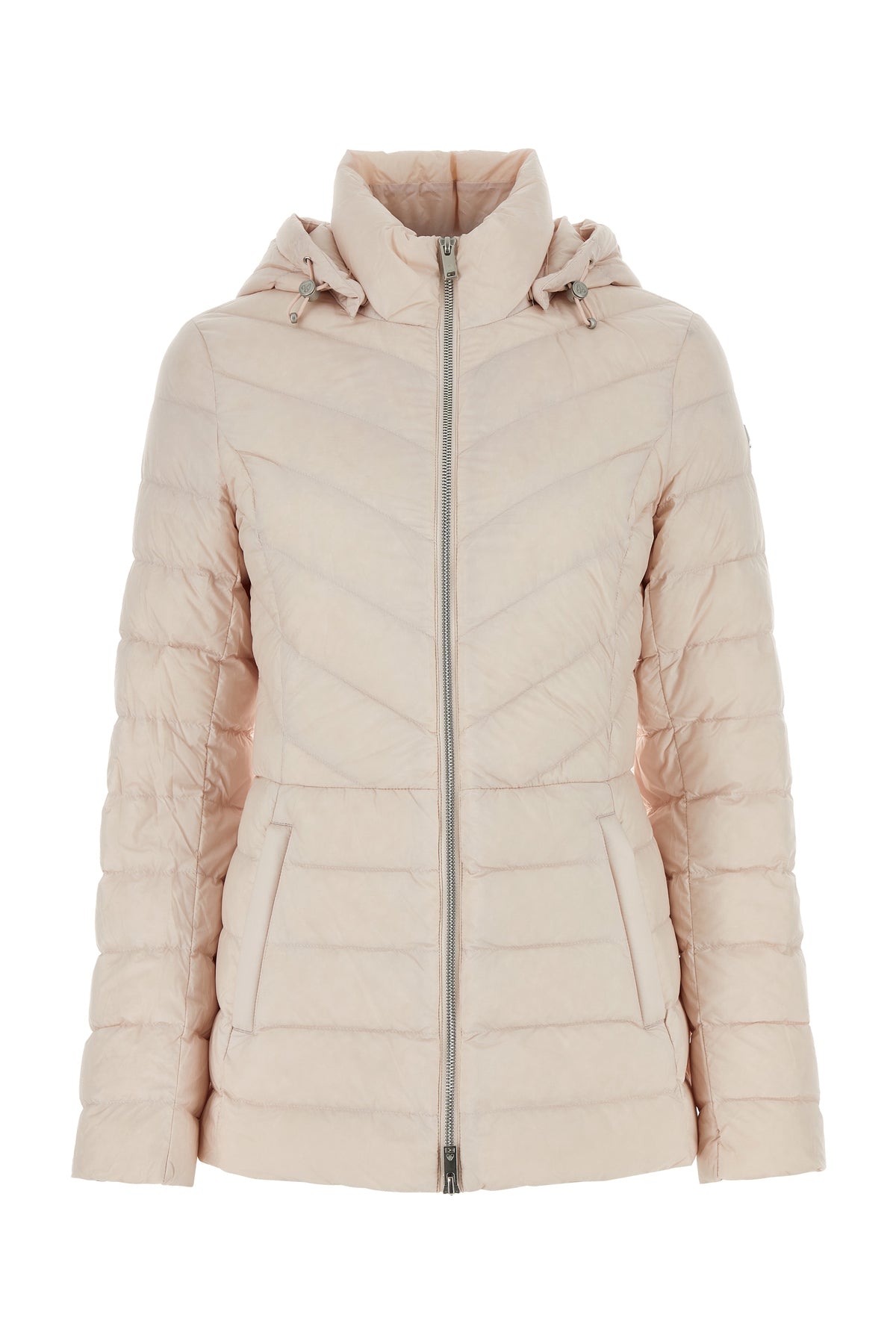 Down jacket realized in quilted nylon enriched by logoed metal detail on the side.