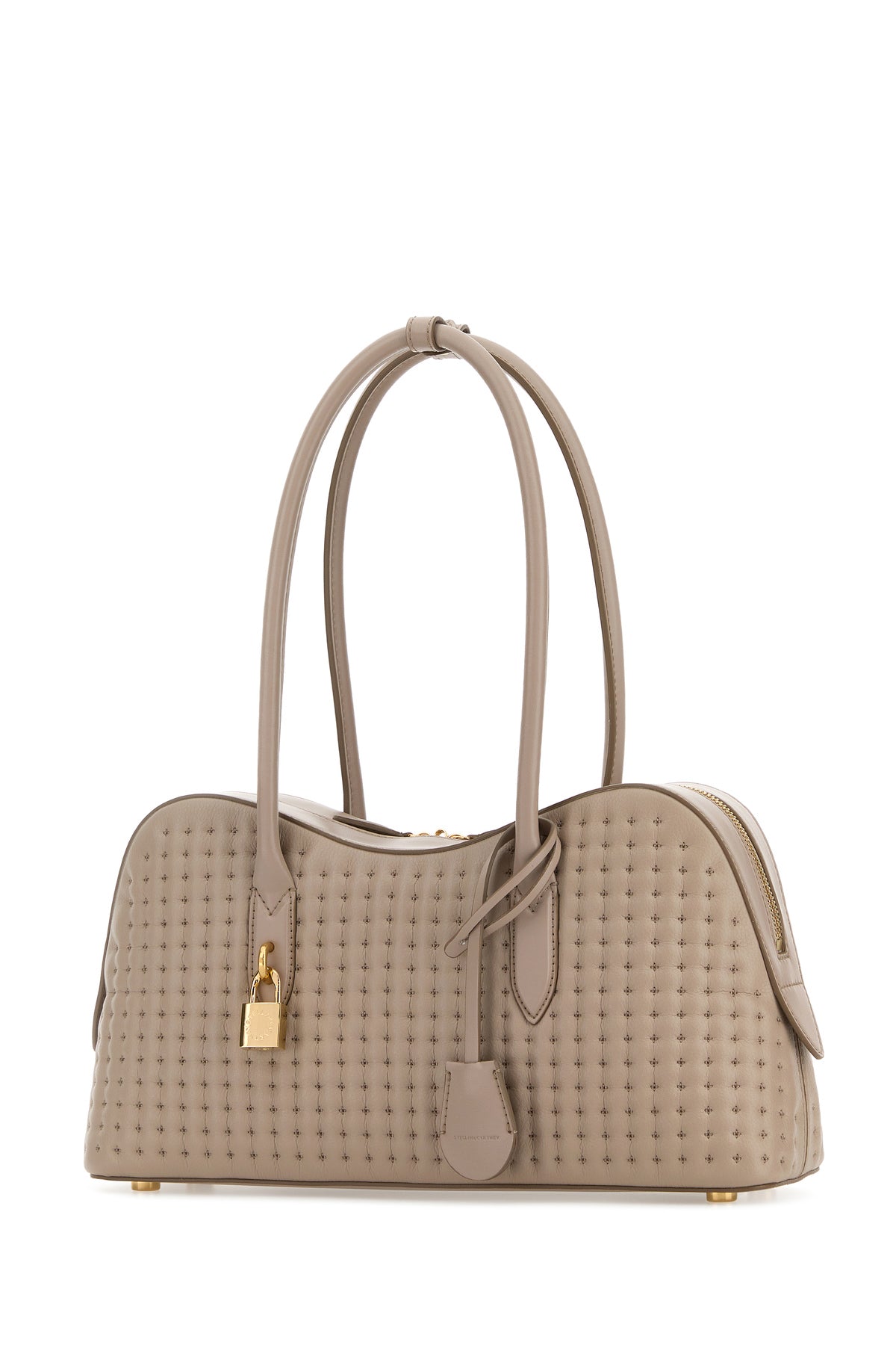 Shoulder bag realized in quilted synthetic leather enriched by logoed padlock at the front.