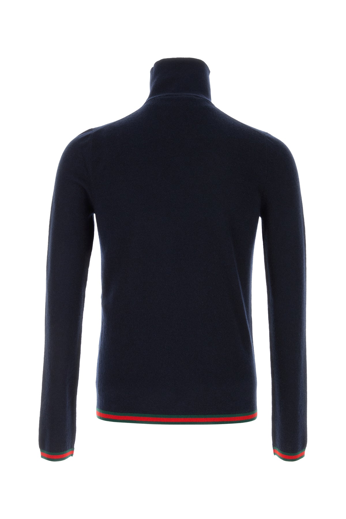 Sweater realized in pure cashmere characterized by Web embroidery on the cuffs and on the hemline.