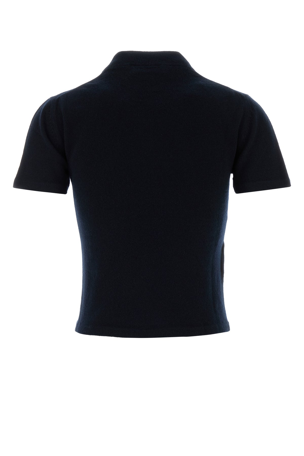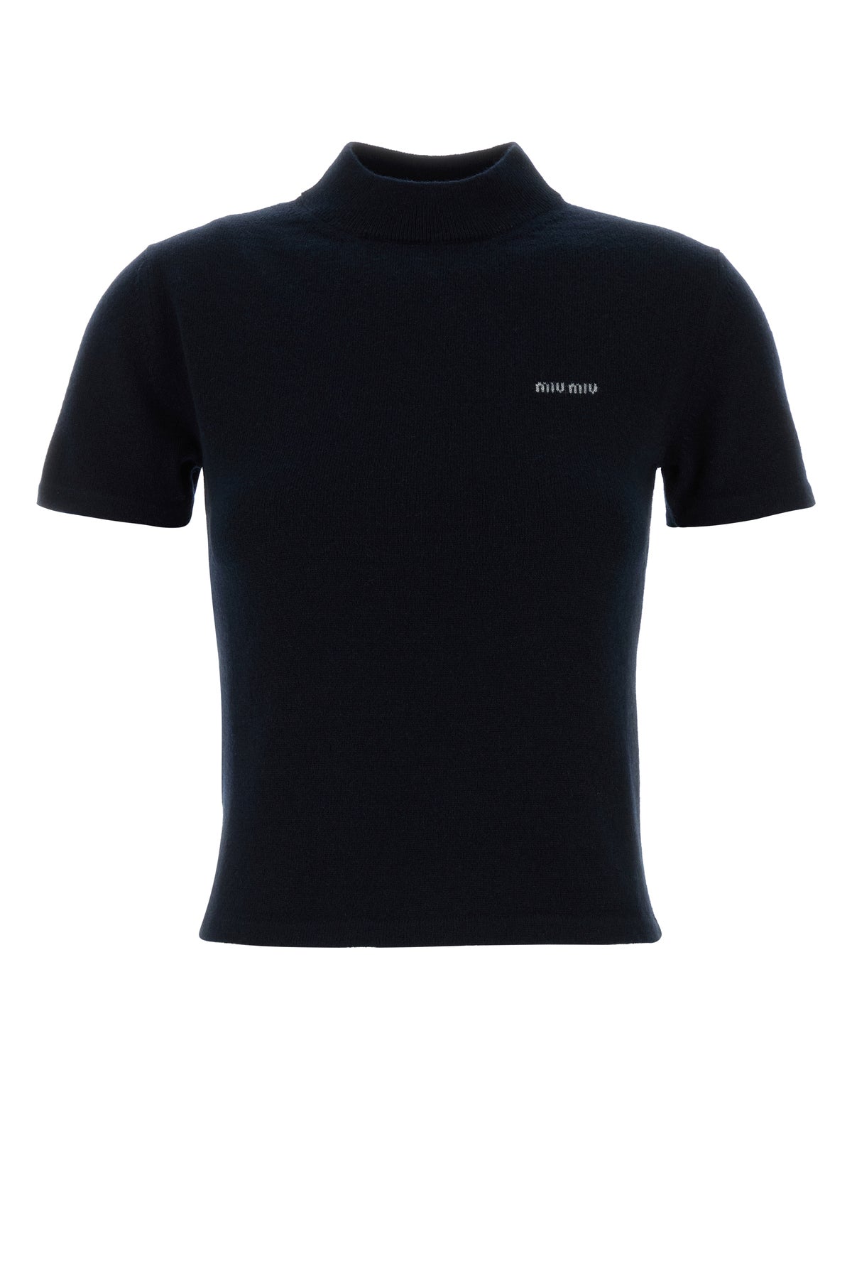 Short-sleeves sweater realized in pure cashmere characterized by contrasting embroidered logo on the chest.
