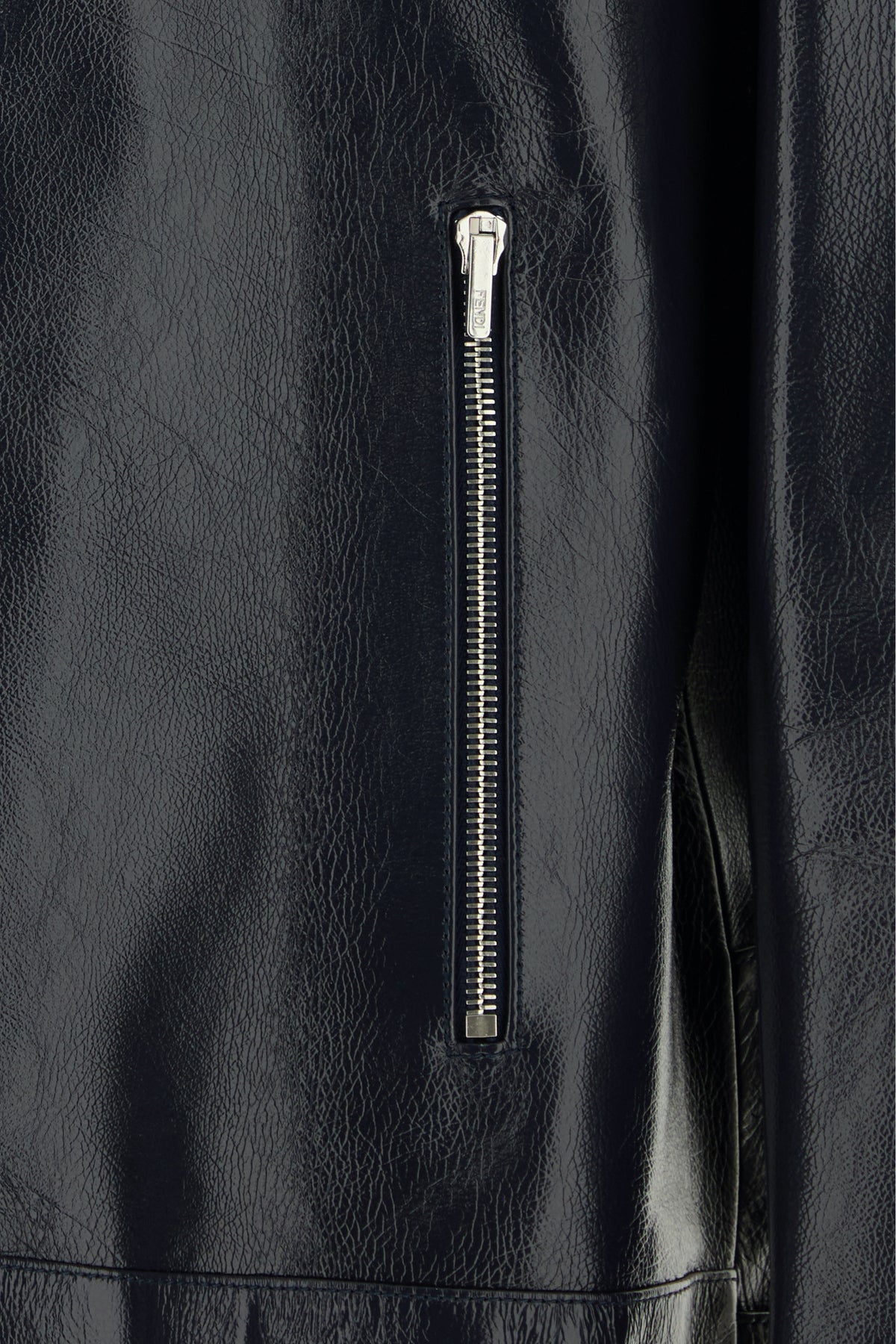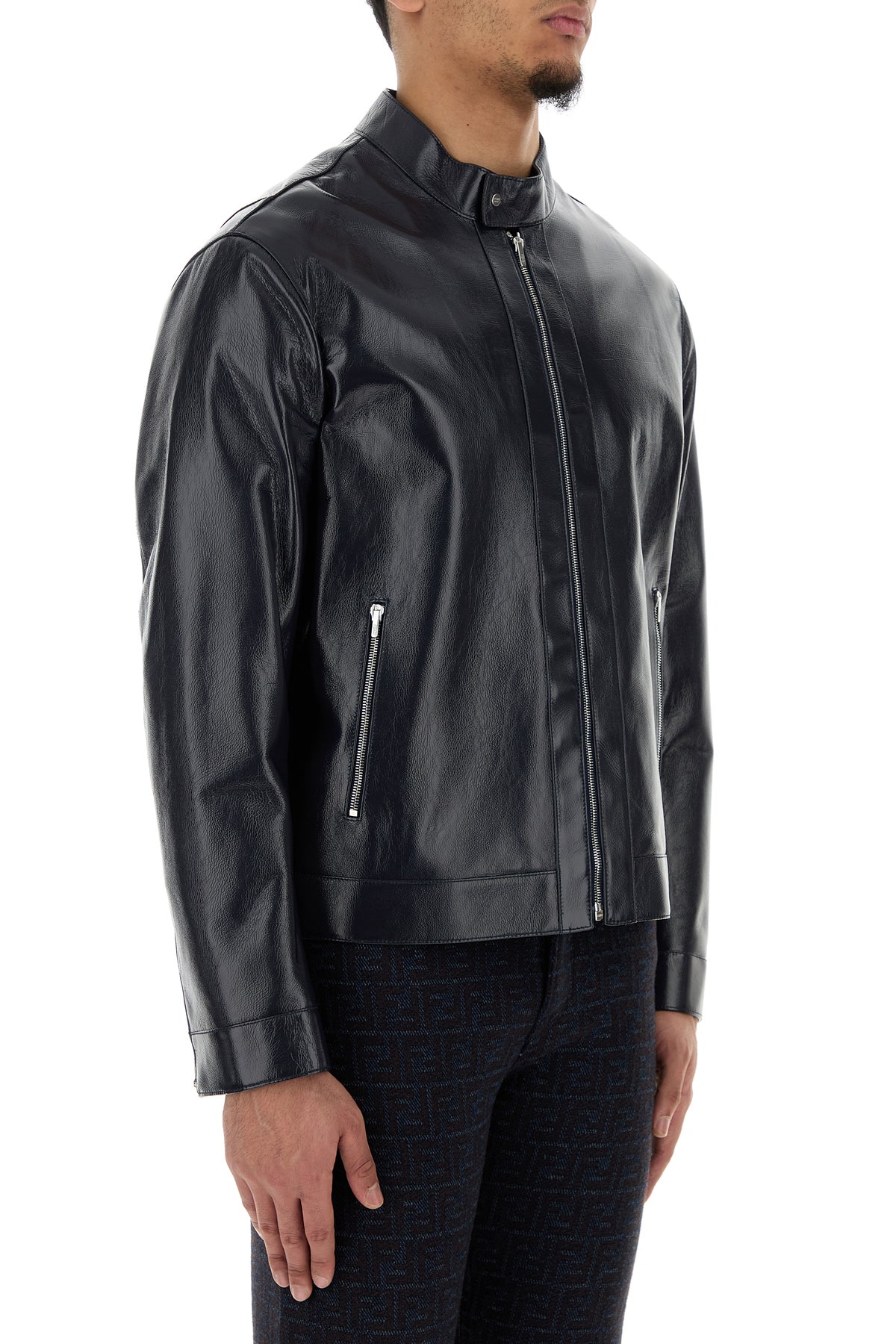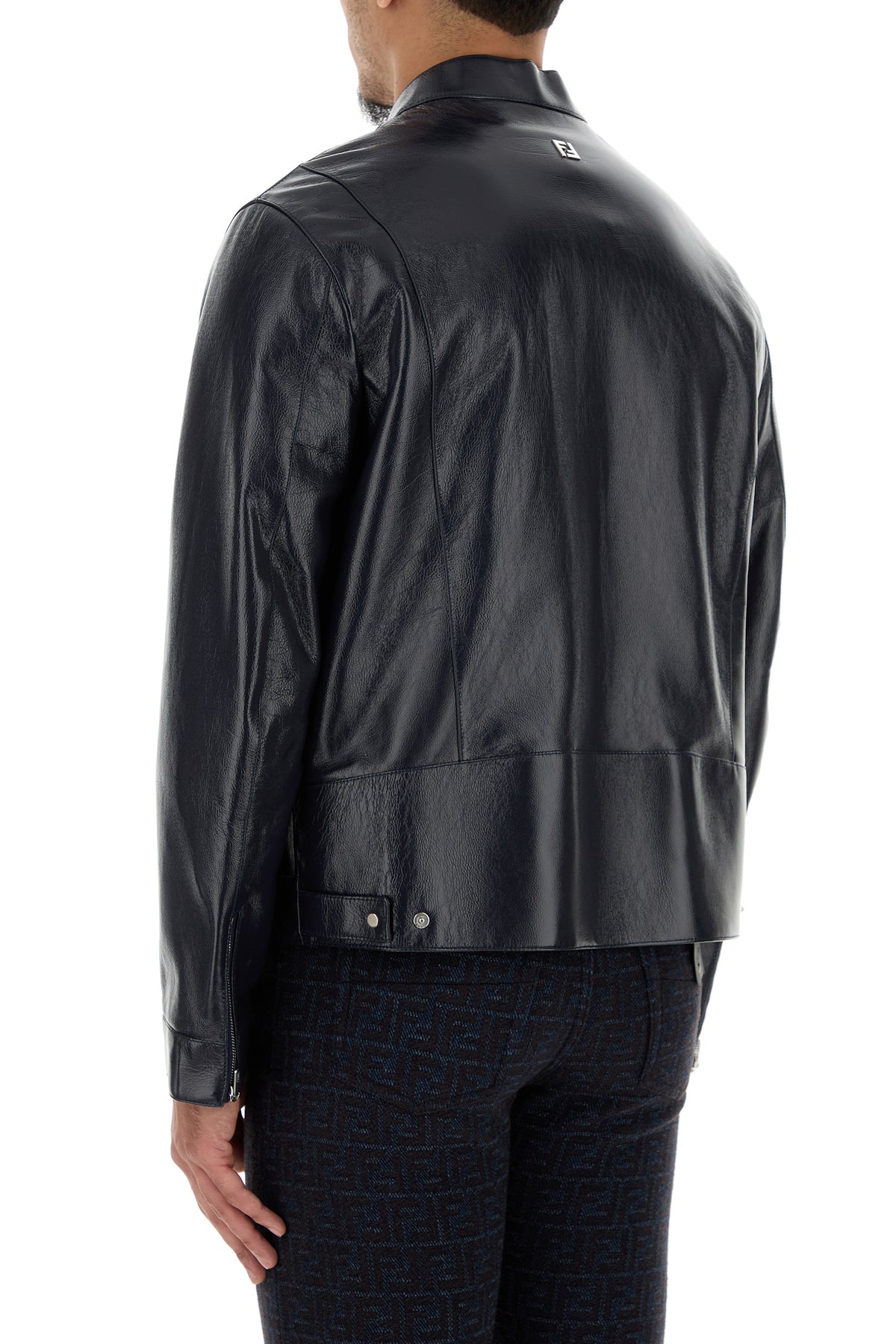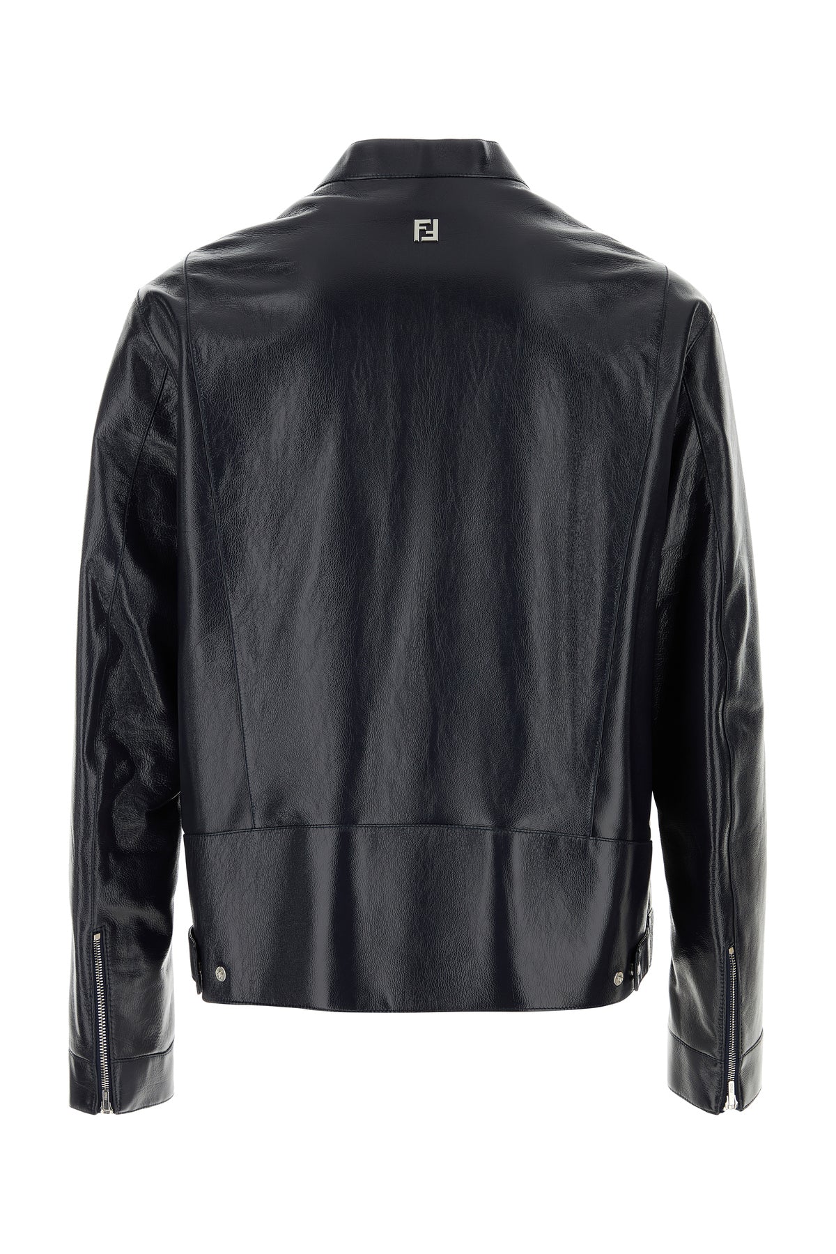 Jacket realized in polished-finish calf leather enriched by metal FF detail at the back.
