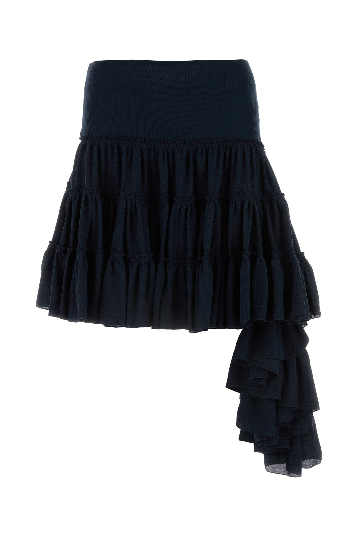 Mini skirt realized in pure silk enriched by tonal fabric panel on the side.