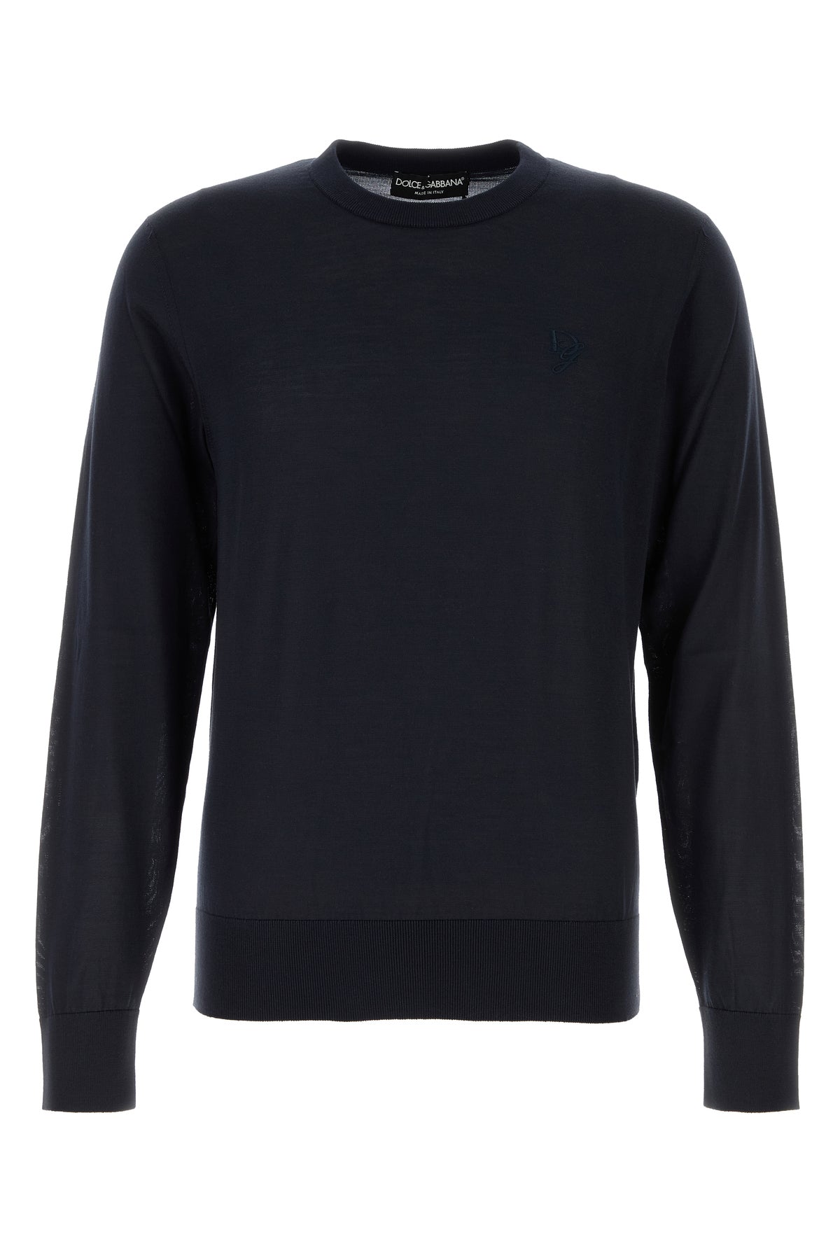 Sweater realized in pure silk characterized by tonal logoed embroidery on the chest.
