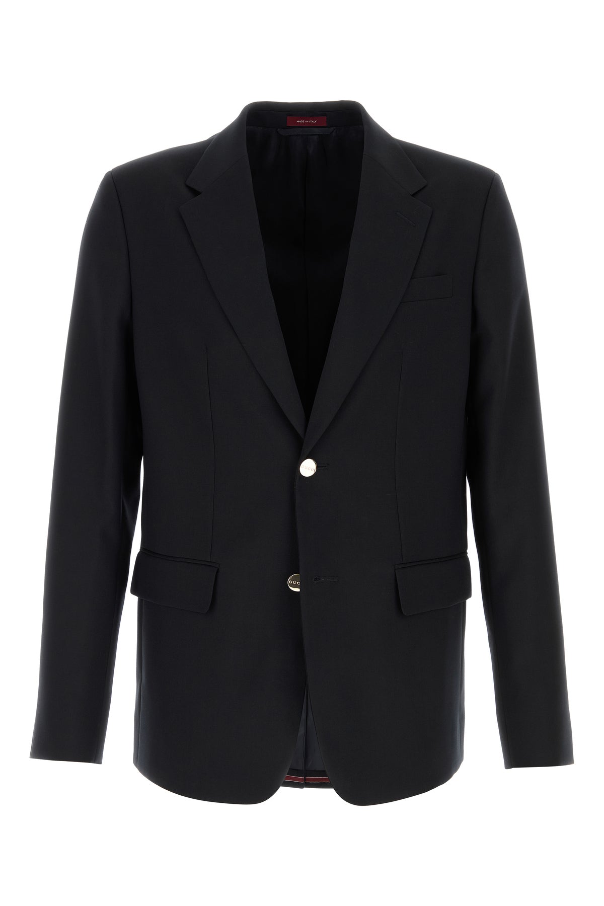 Blazer realized in pure wool characterized by contrasting Gucci Cimosa embroidery on the hemline.