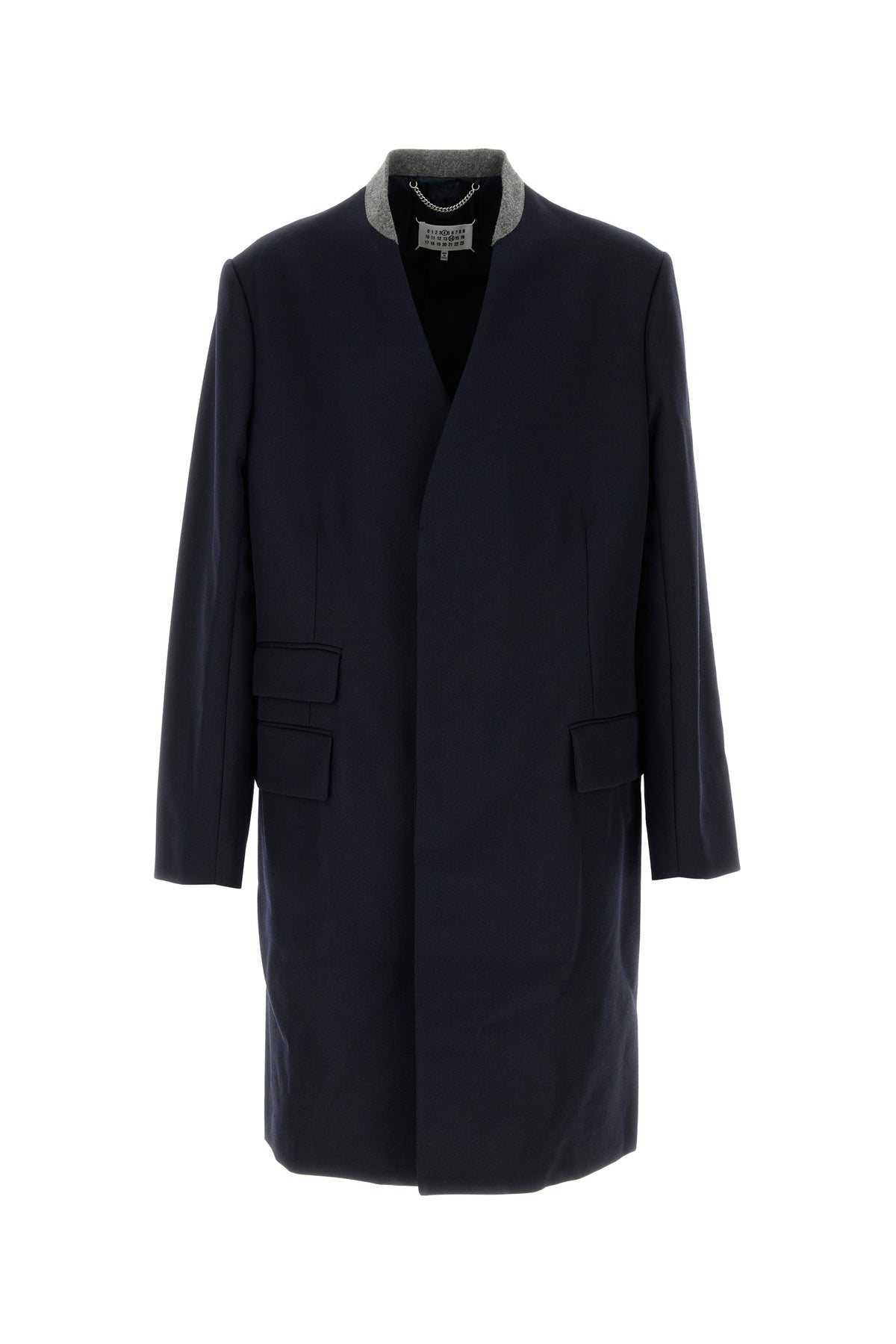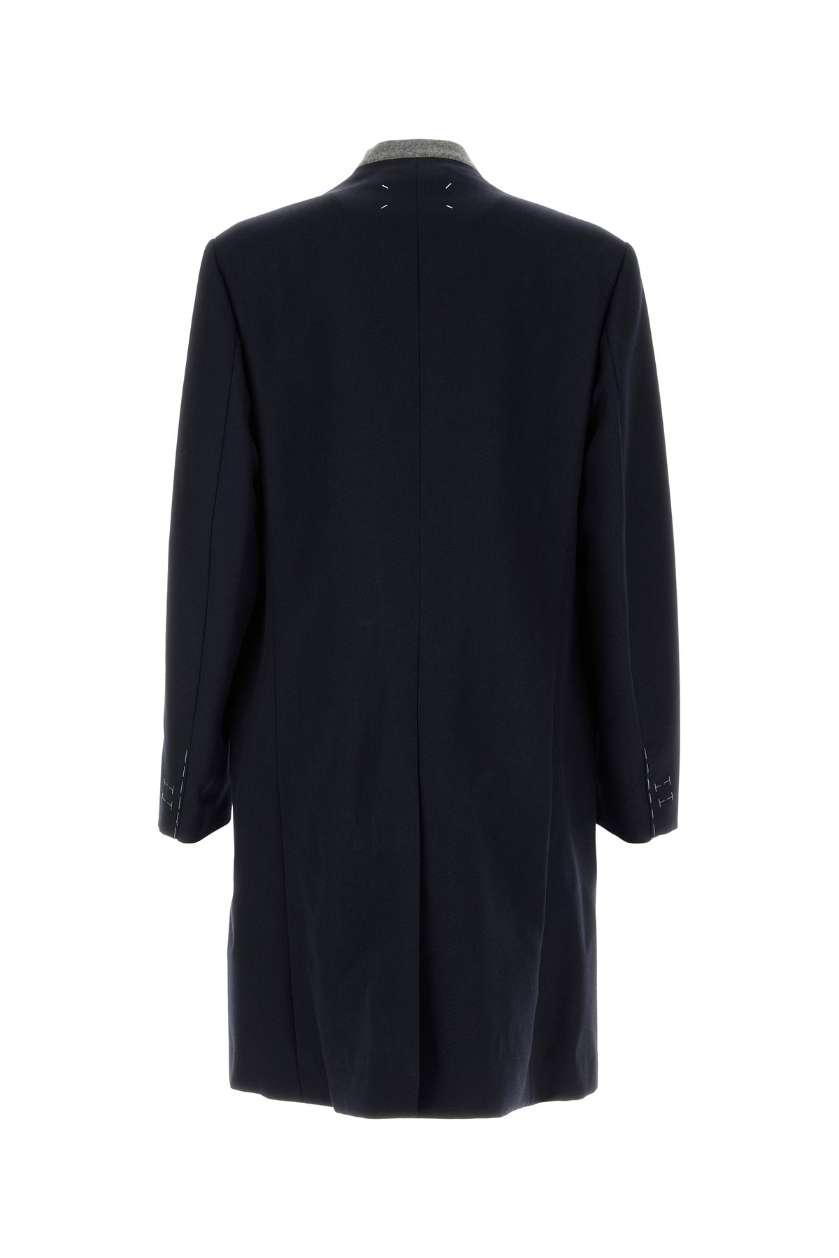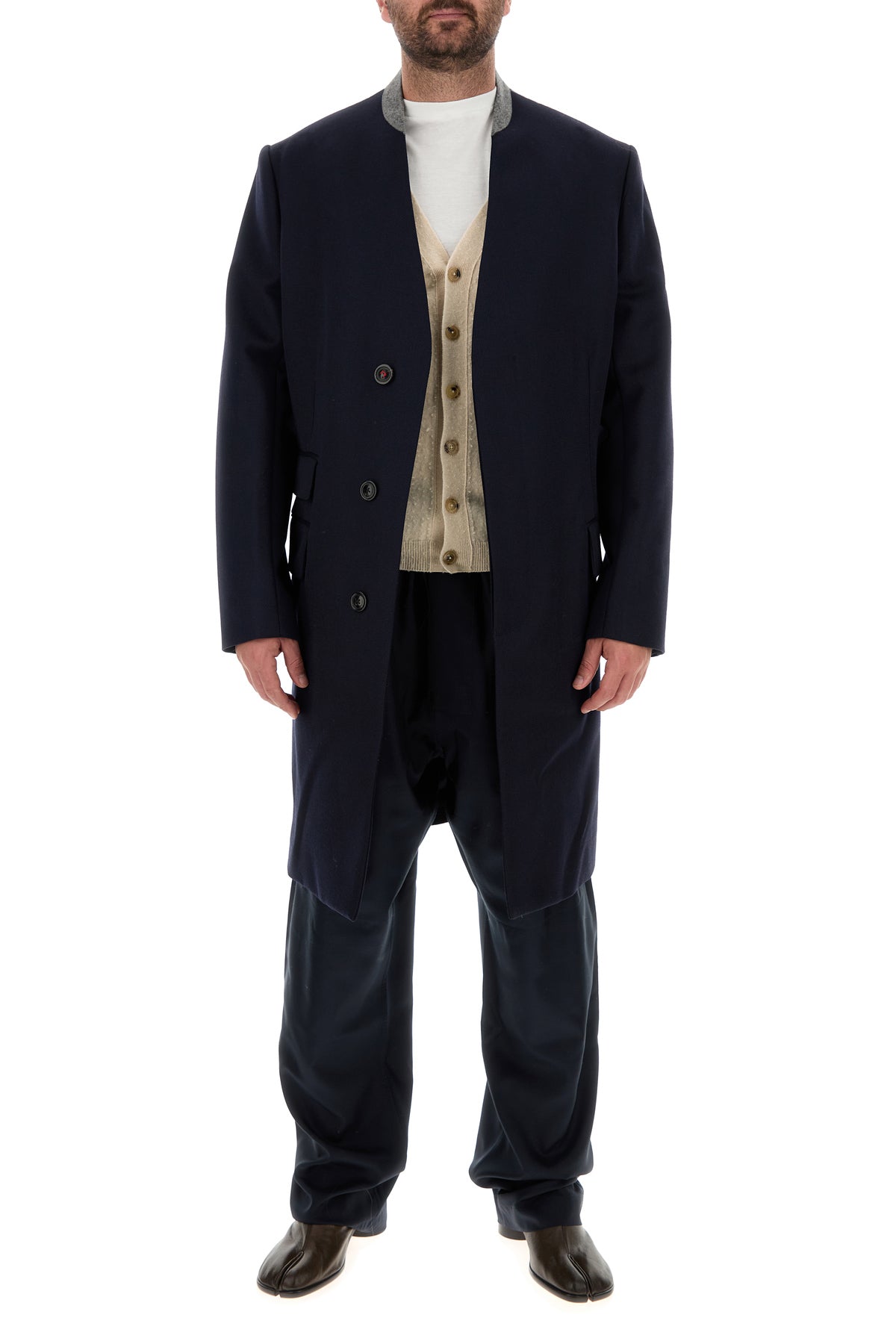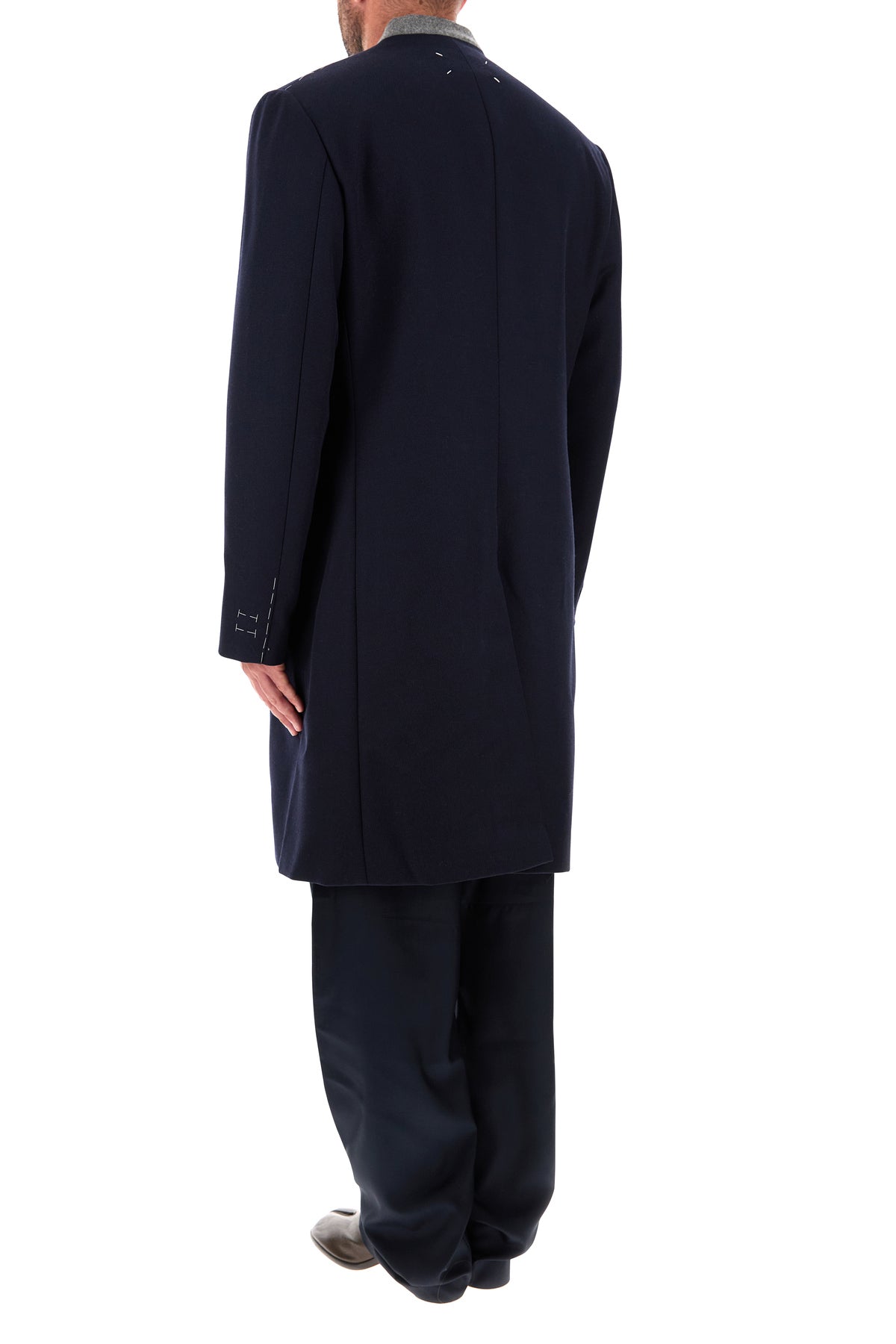 Coat realized in pure wool characterized by iconic contrasting stitchings at the back.
