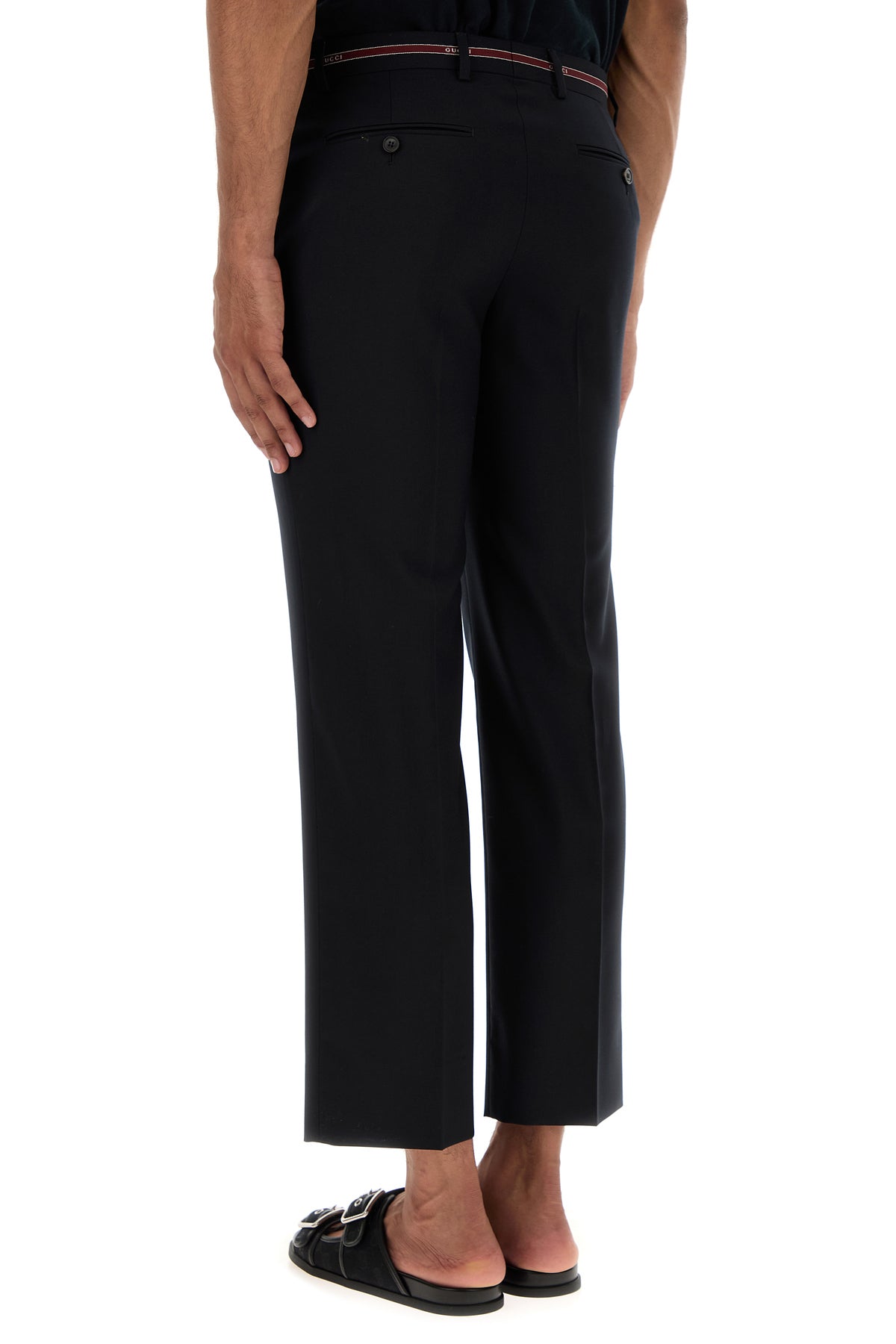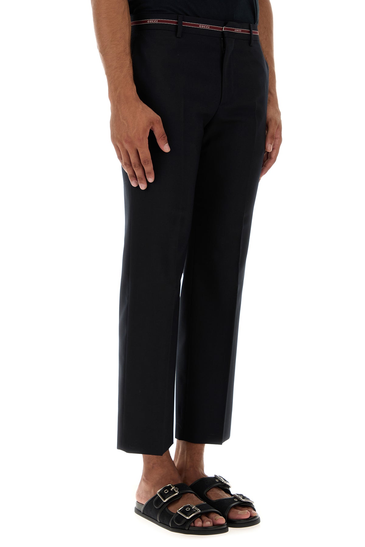 Pant realized in pure wool characterized by contrasting Gucci Cimosa embroidery at the waist.