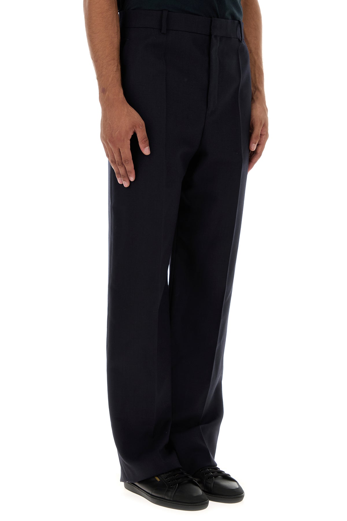 Pant realized in pure wool characterized by central ironed pleats.