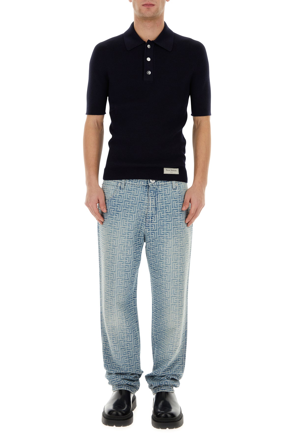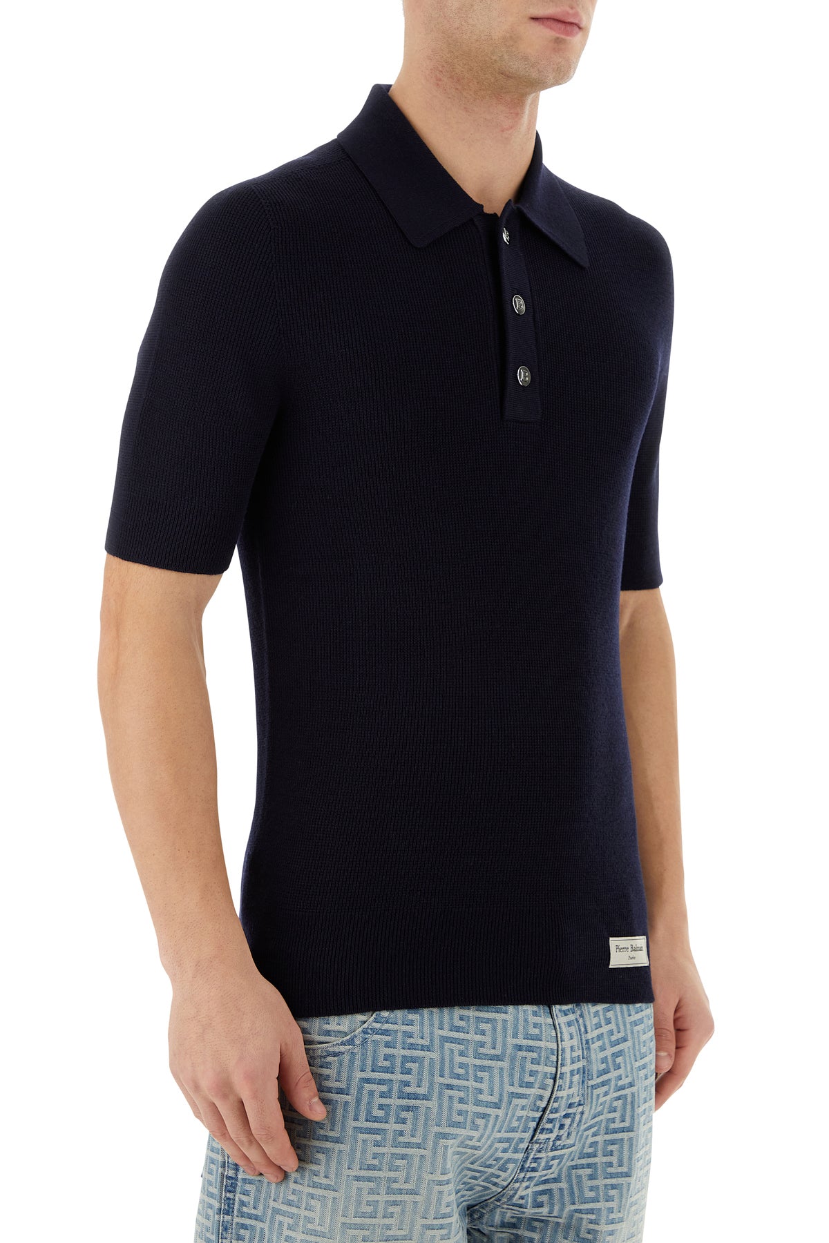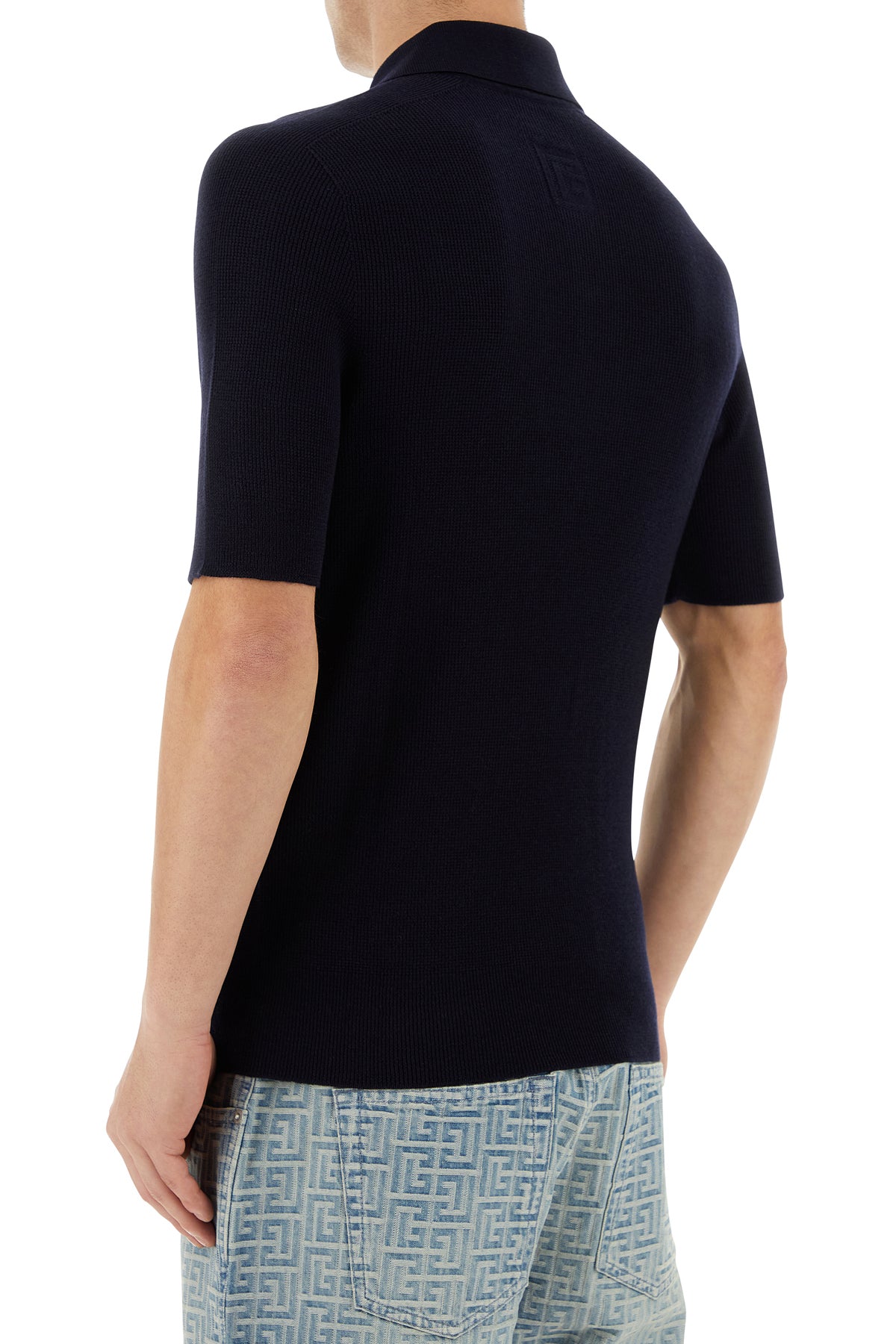 Midnight blue wool polo shirt
