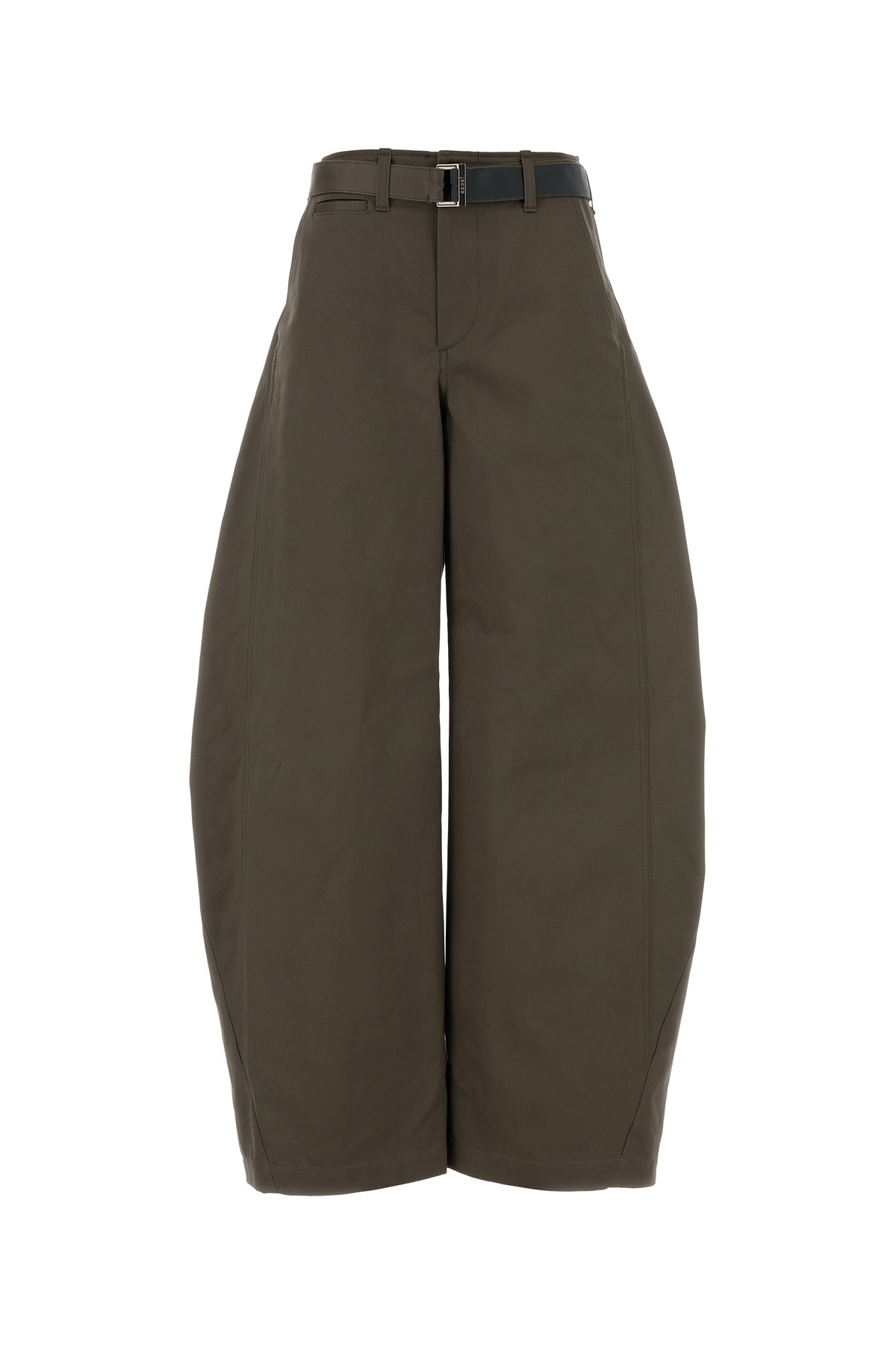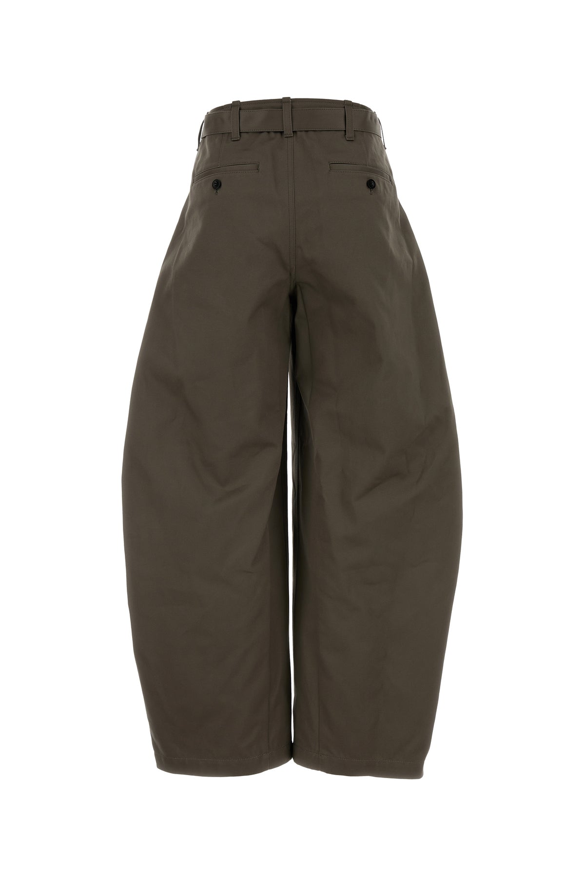 Wide-leg pant realized in pure cotton enriched by fabric belt at the waist.