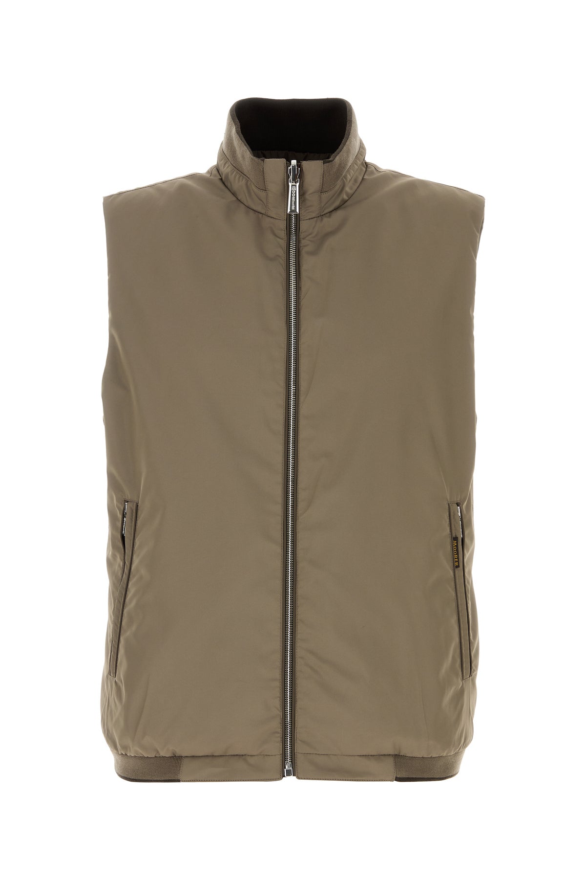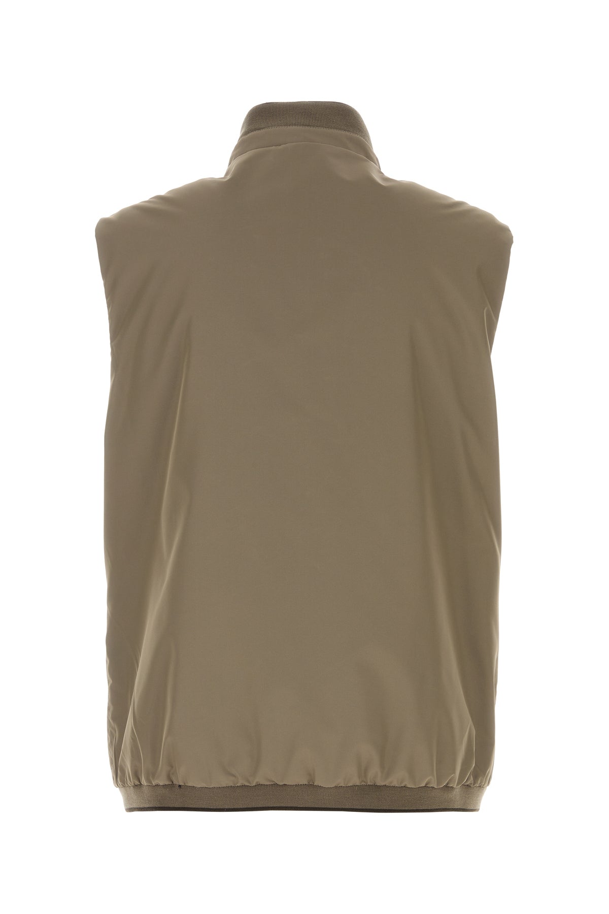 Reversible sleeveless jacket realized in polyester enriched by logoed label at the front.