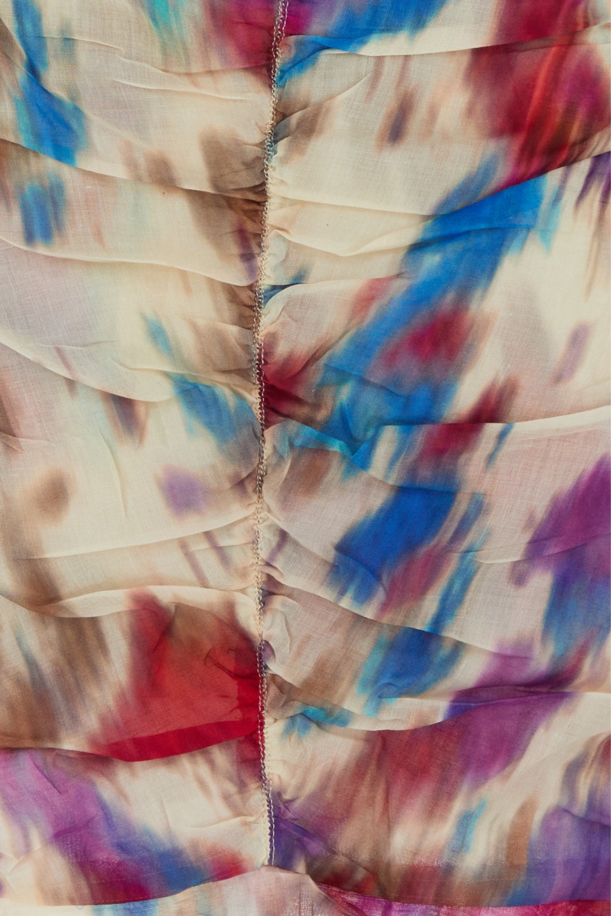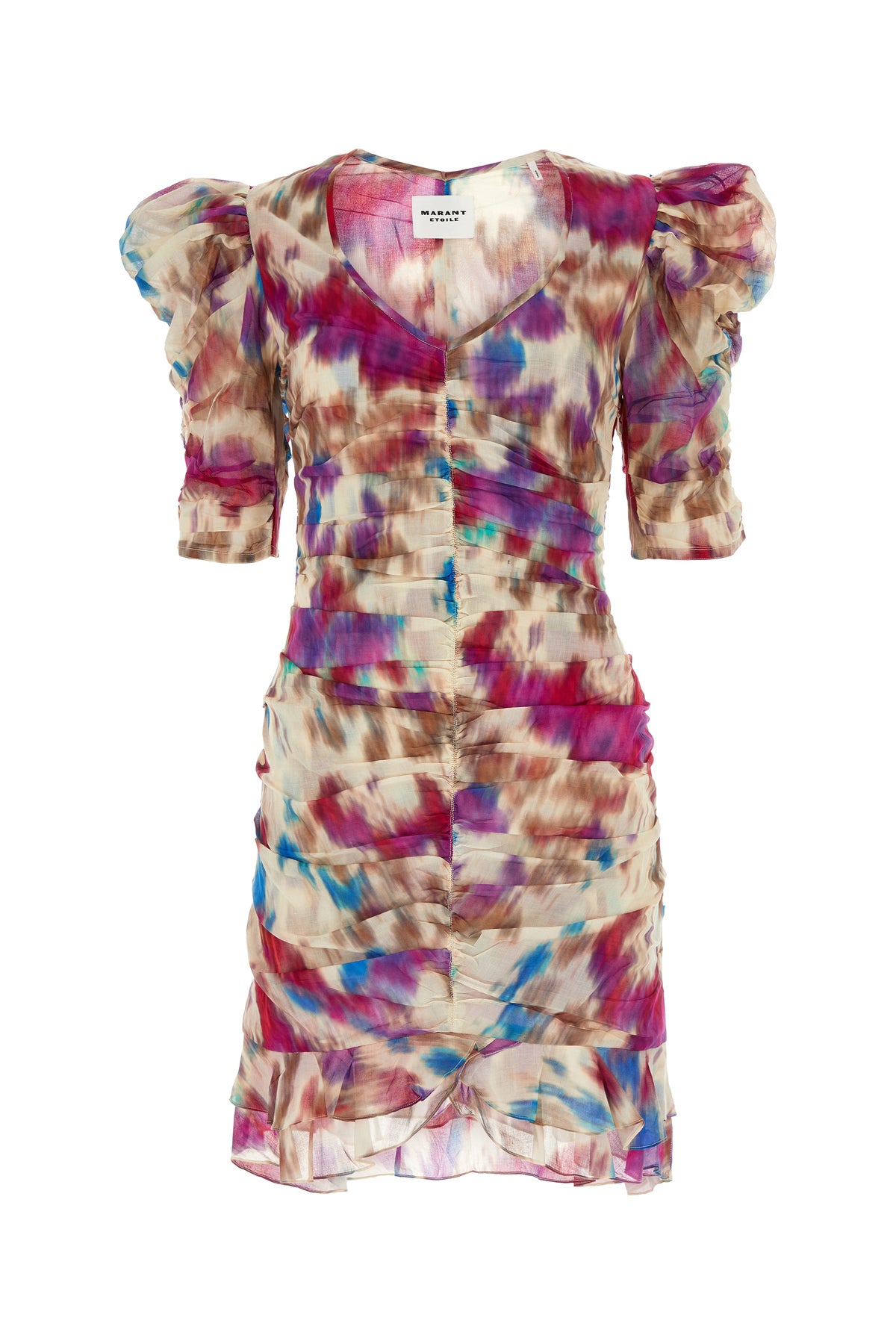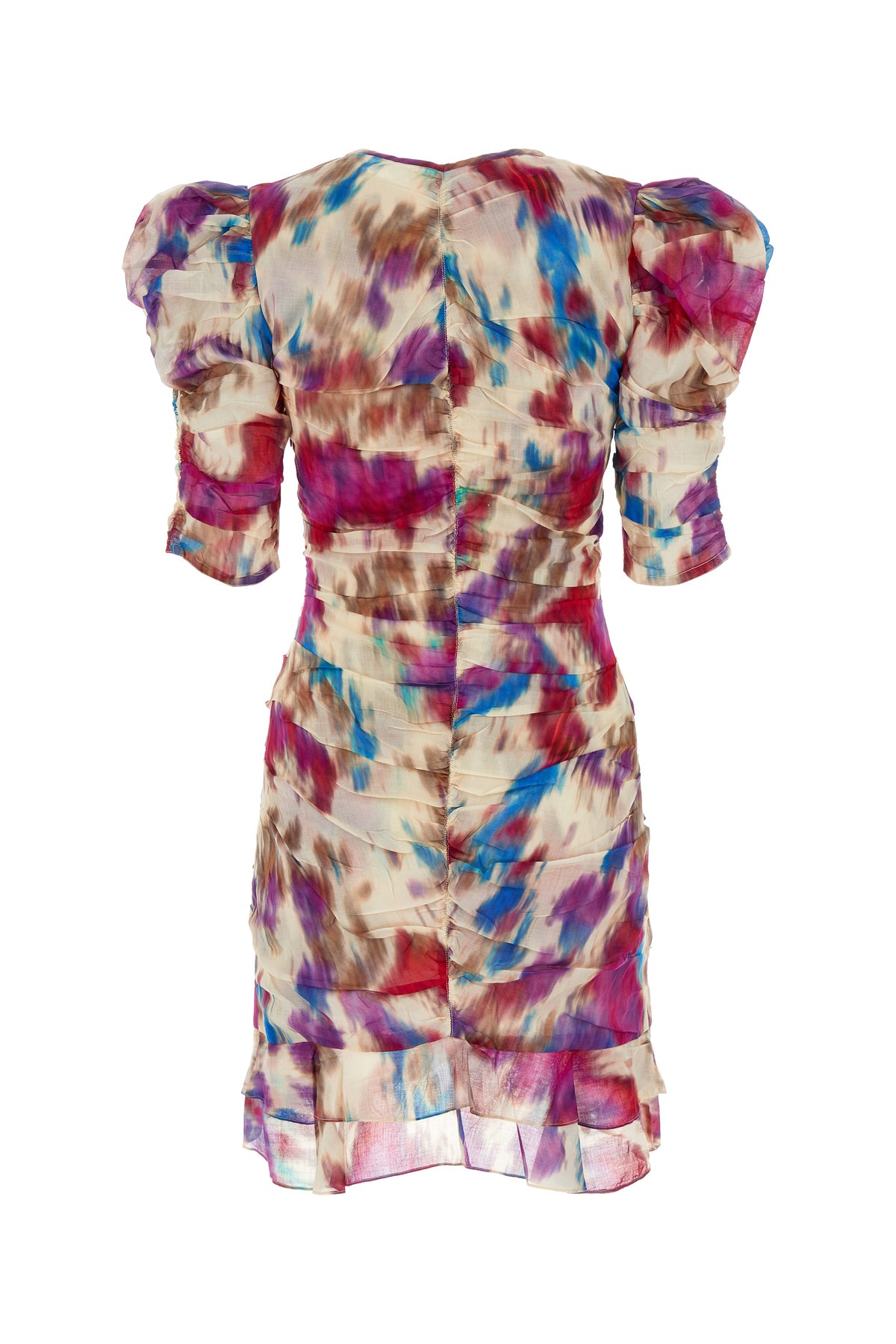Mini dress realized in pure cotton characterized by peculiar gatherings at the front, on the sleeves and at the back.