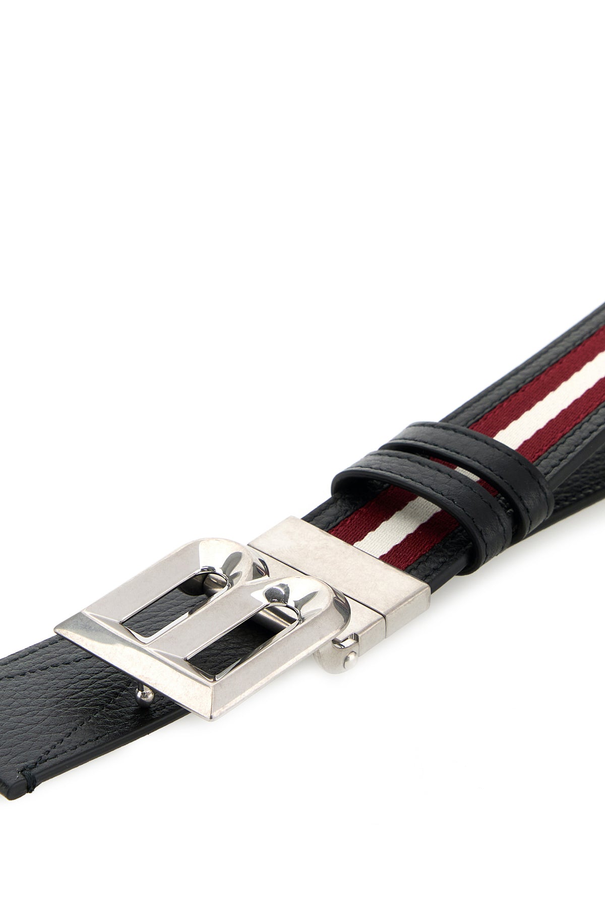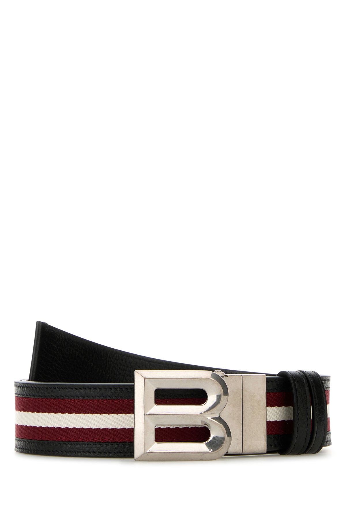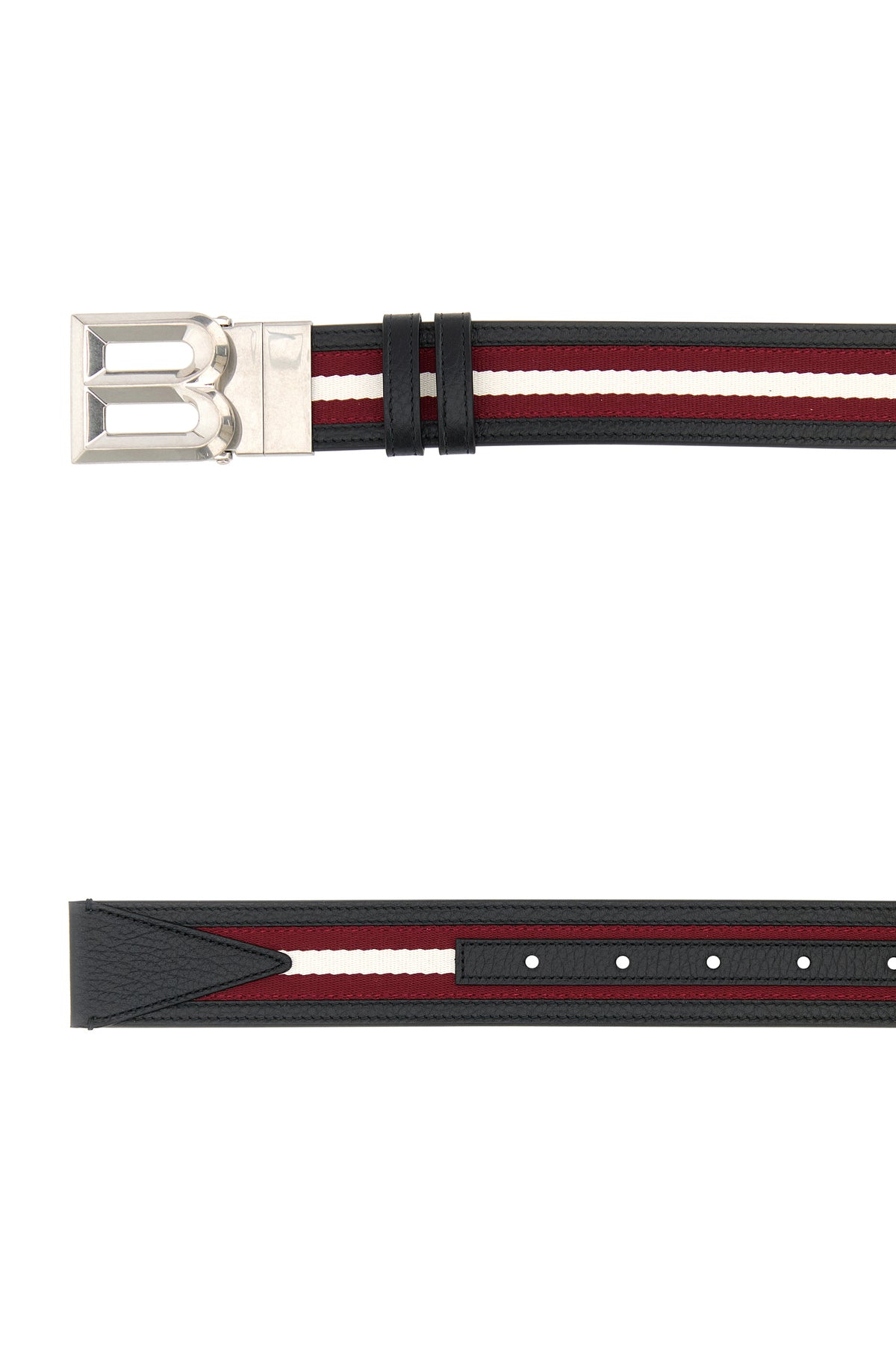 Belt realized in leather and Bally Stripe motif fabric characterized by metal B buckle.