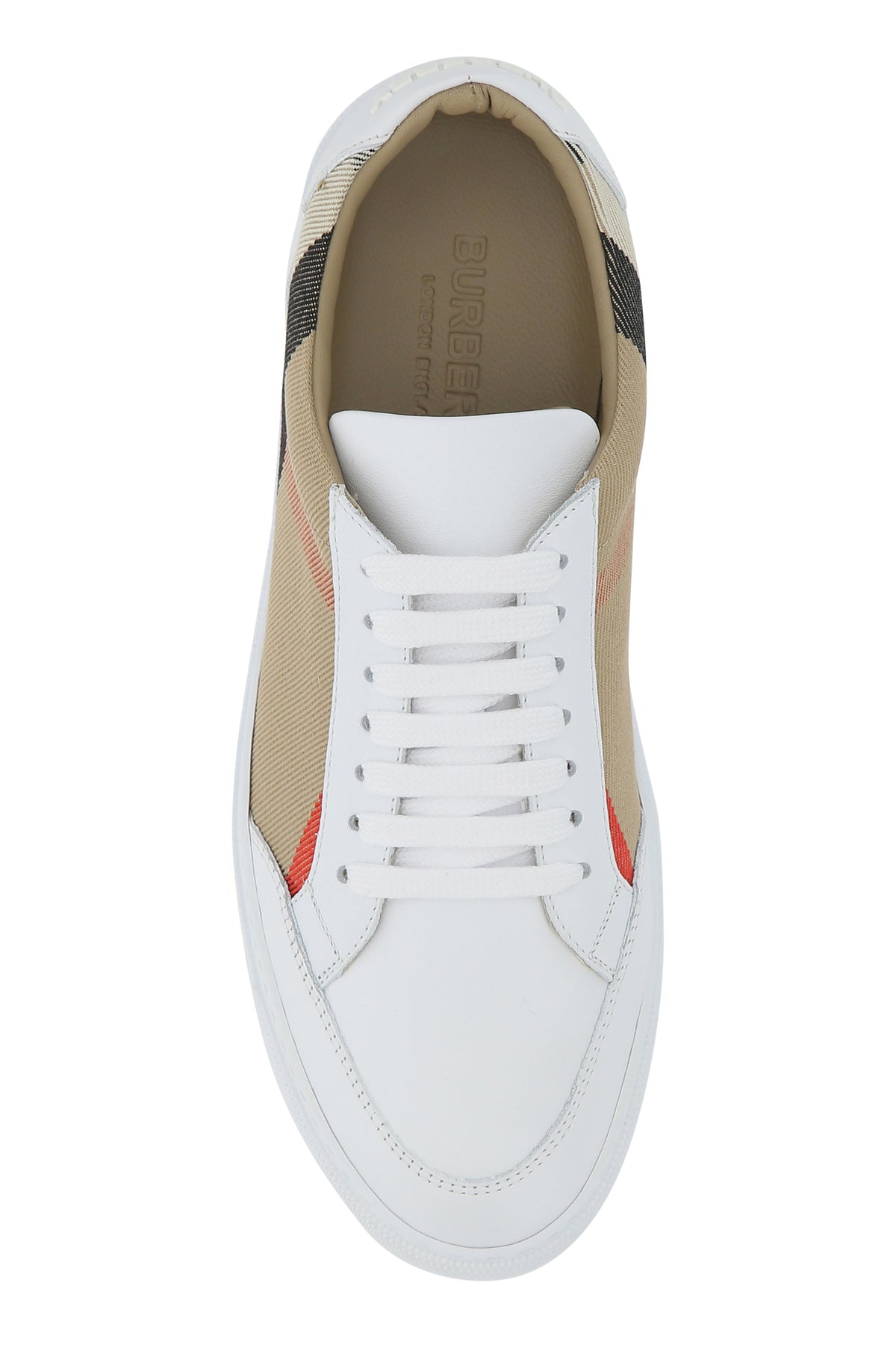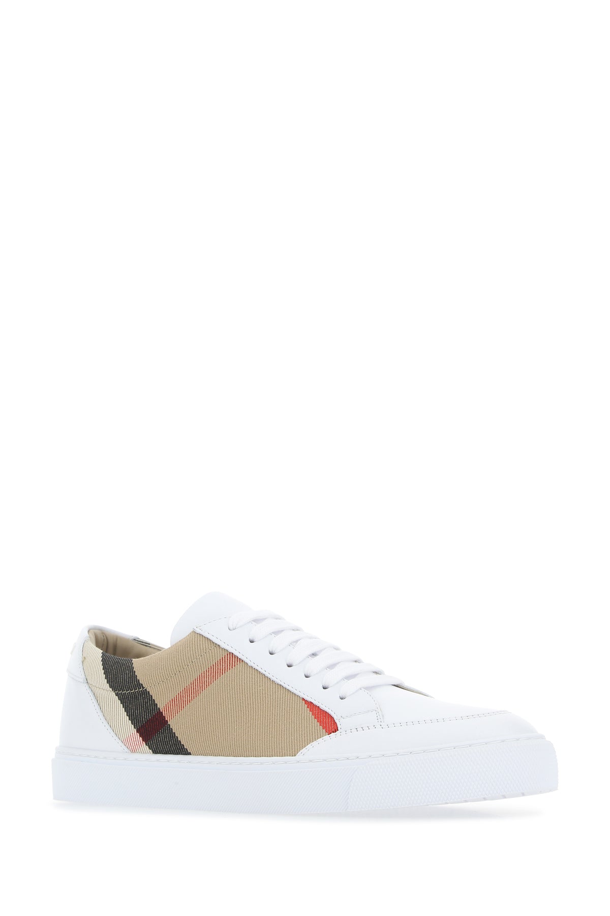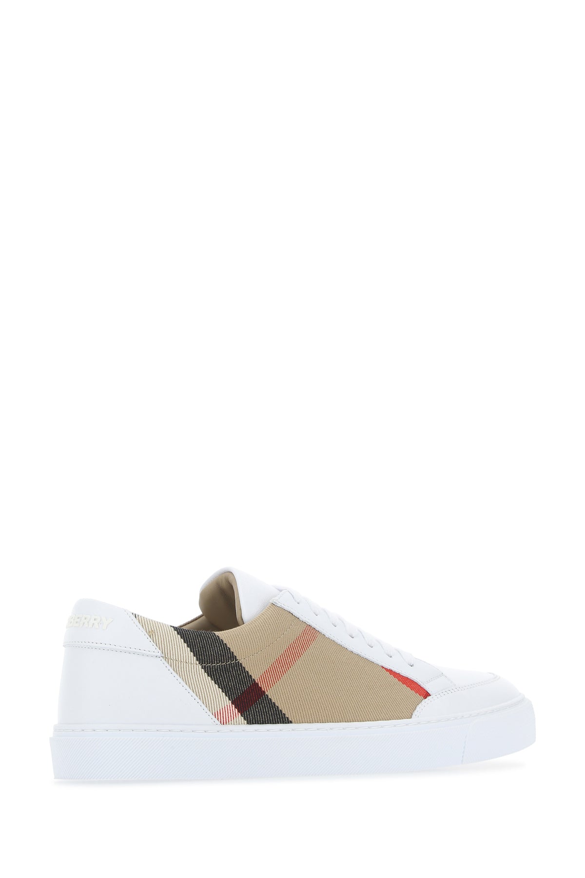 Sneakers realized in ovine leather and cotton characterized by striped embroidery on the sides and printed rubberized logo in relief on the heel.
