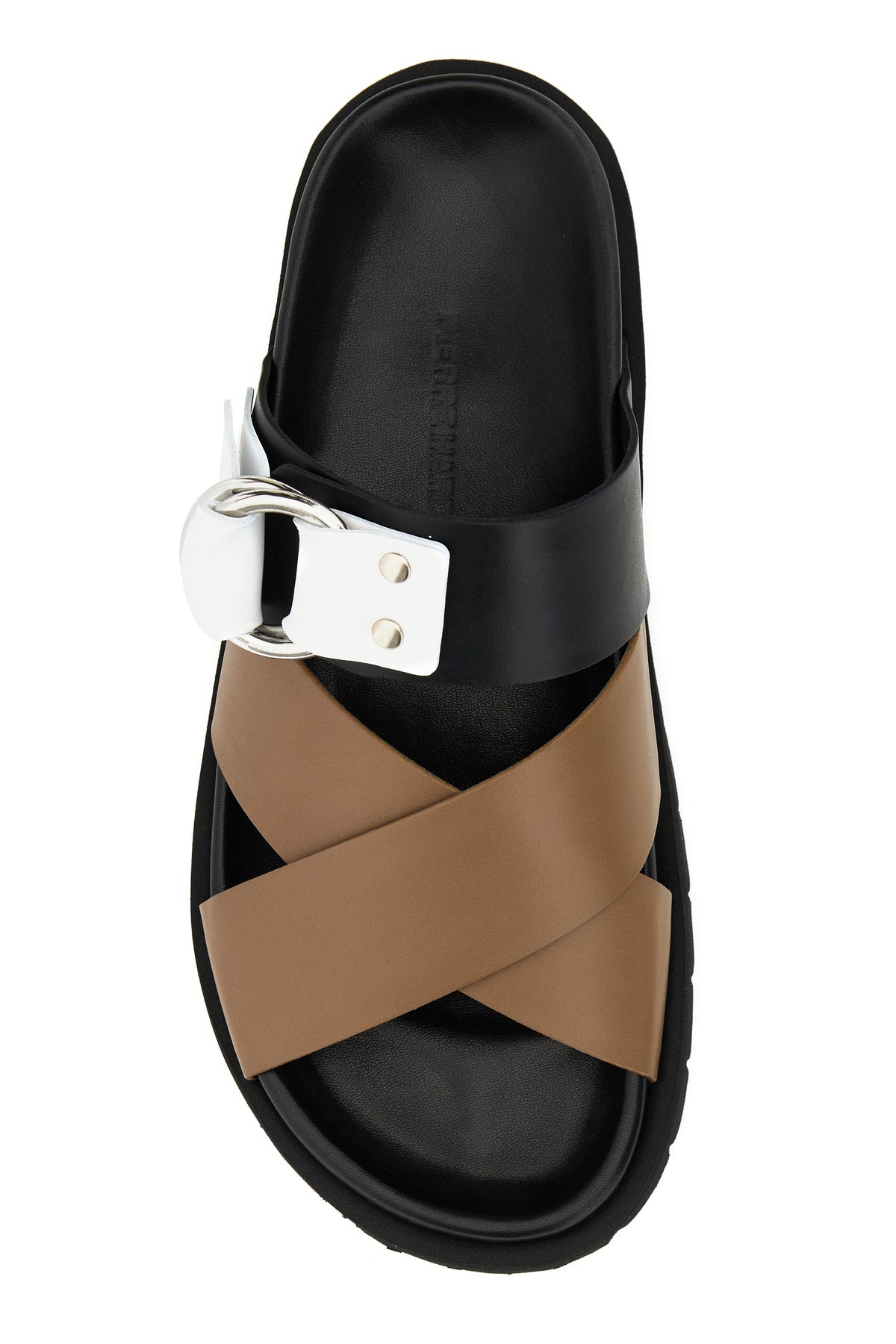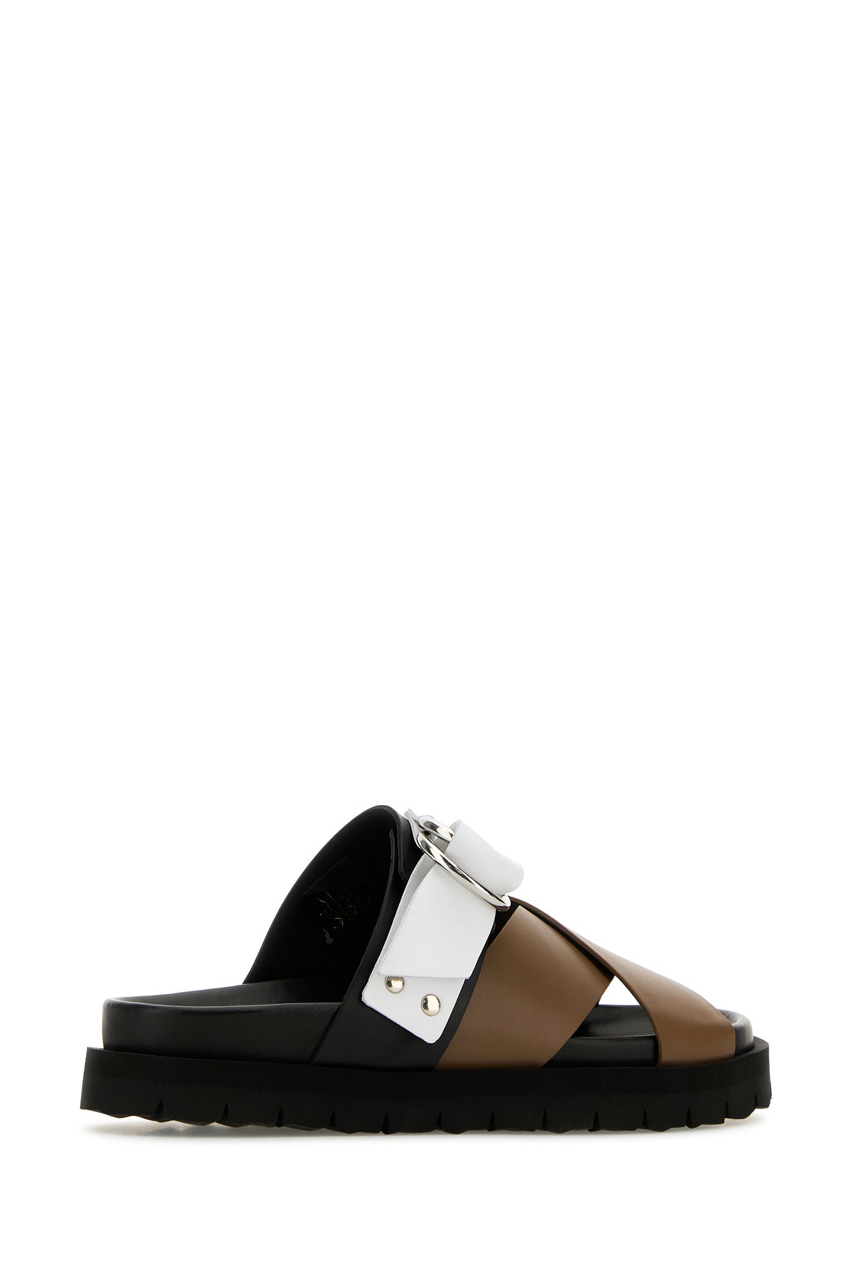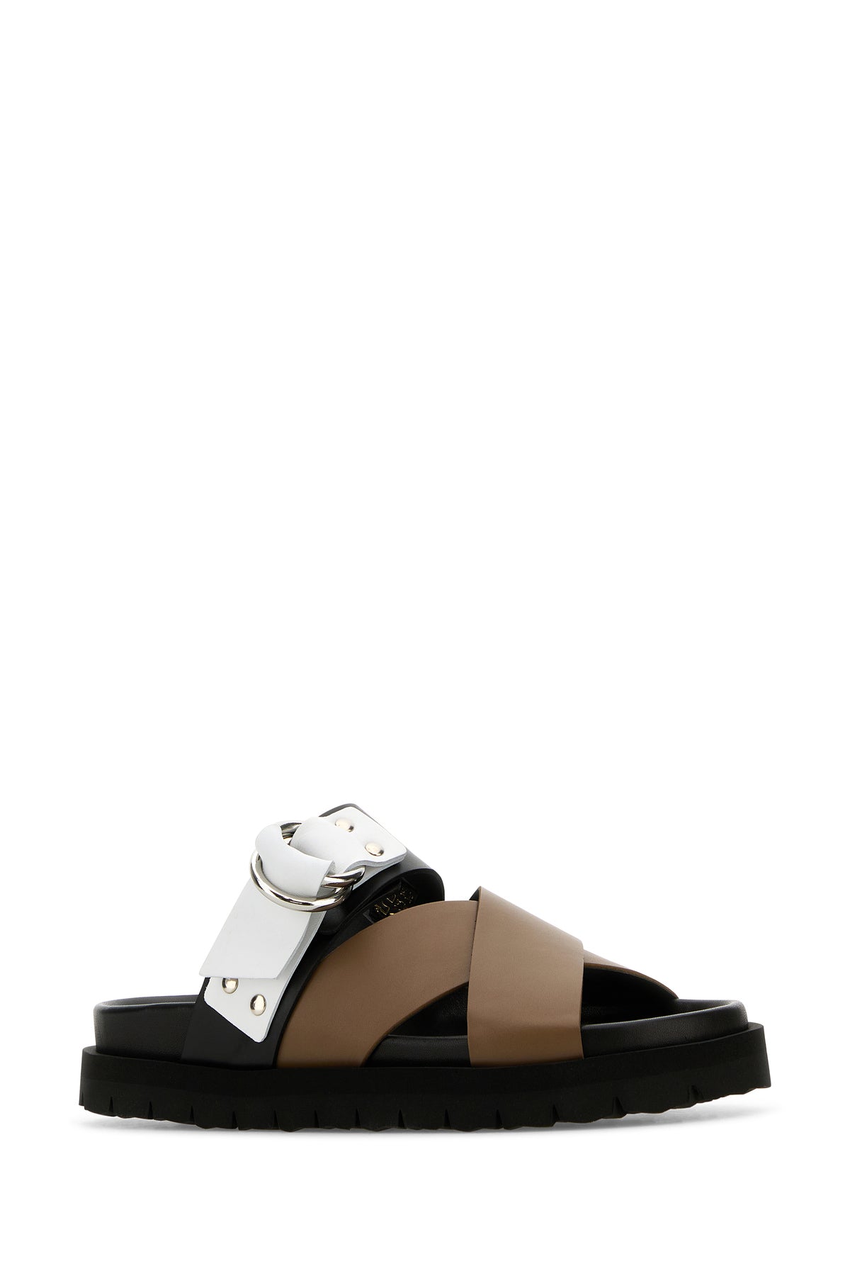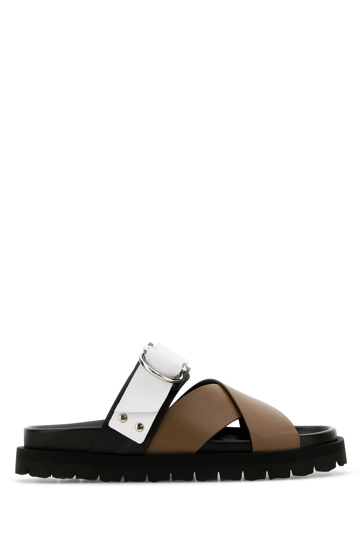 Slippers realized in leather characterized by adjustable straps on the instep.