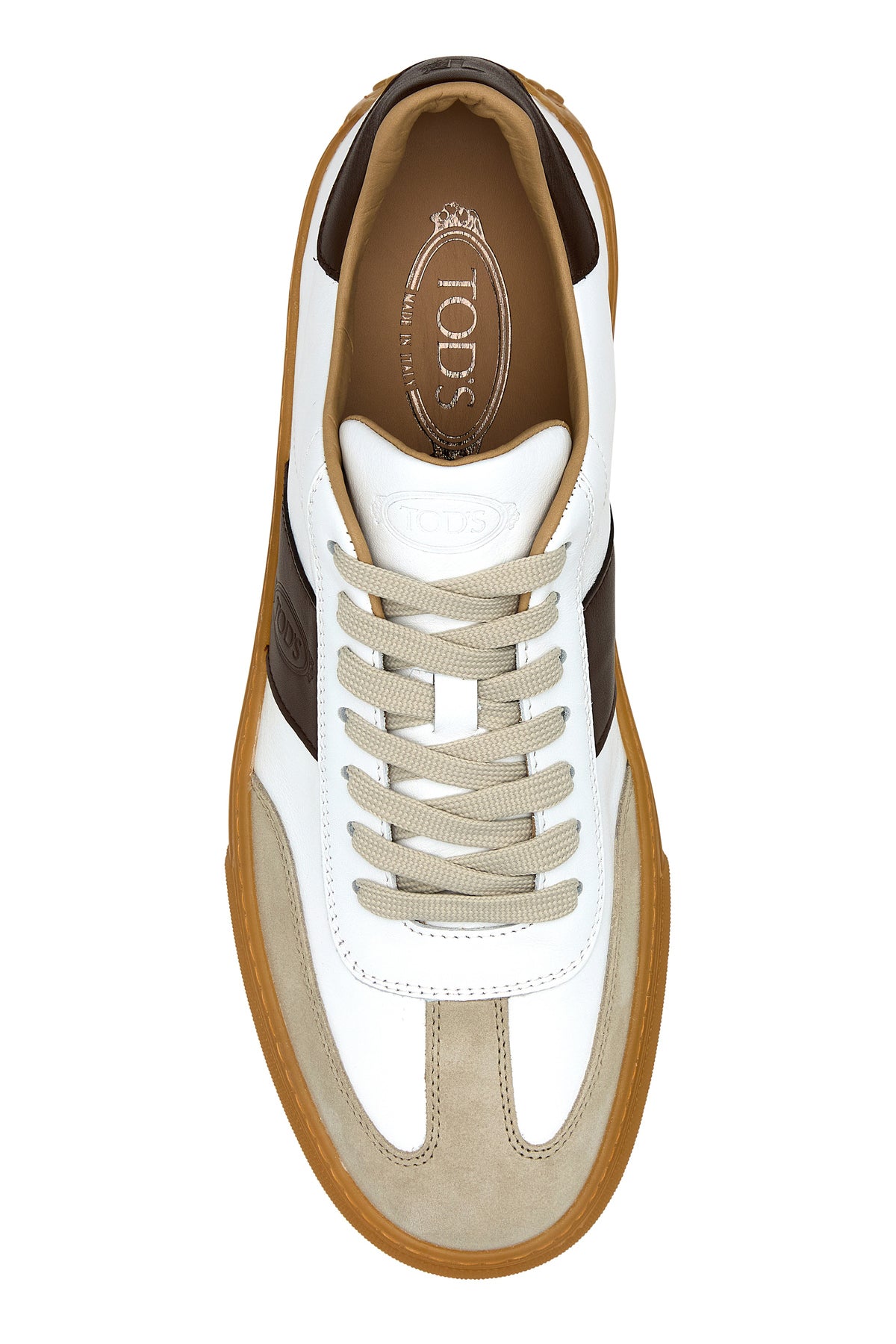 Sneakers realized in smooth leather with suede inserts characterized by embossed logo on the side and on the heel and logo in relief at the back.