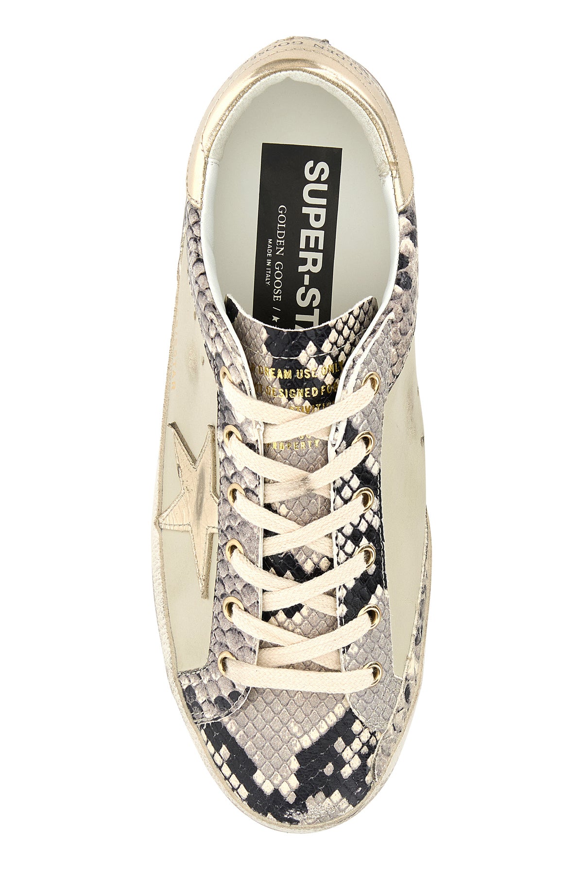 Sneakers realized in smooth leather with python printed leather inserts characterized by printed logo on the side and at the back enriched by iconic tonal Star patch on the side.