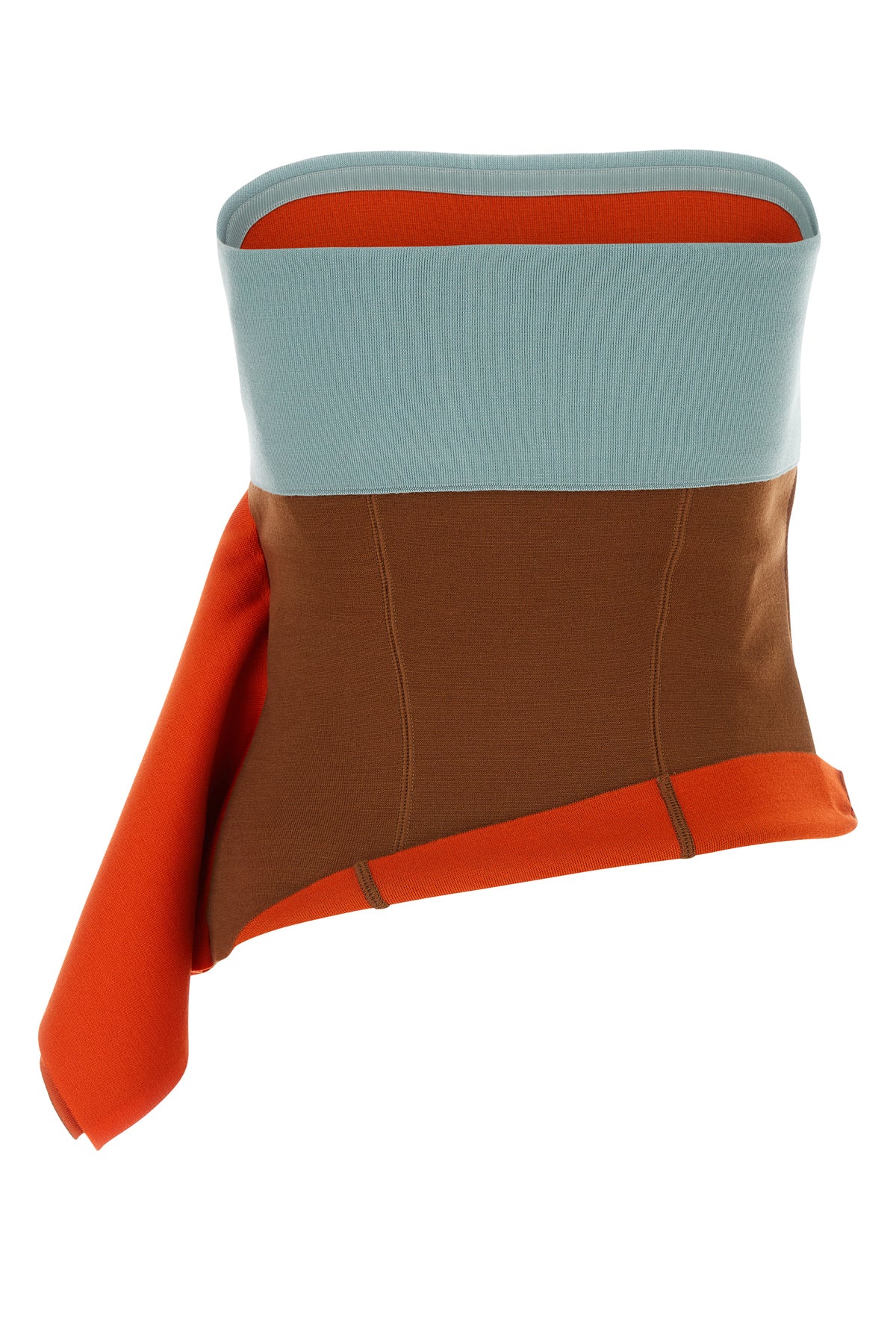 Off-the-shoulder top realized in stretch wool blend enriched by fabric panels on the side.