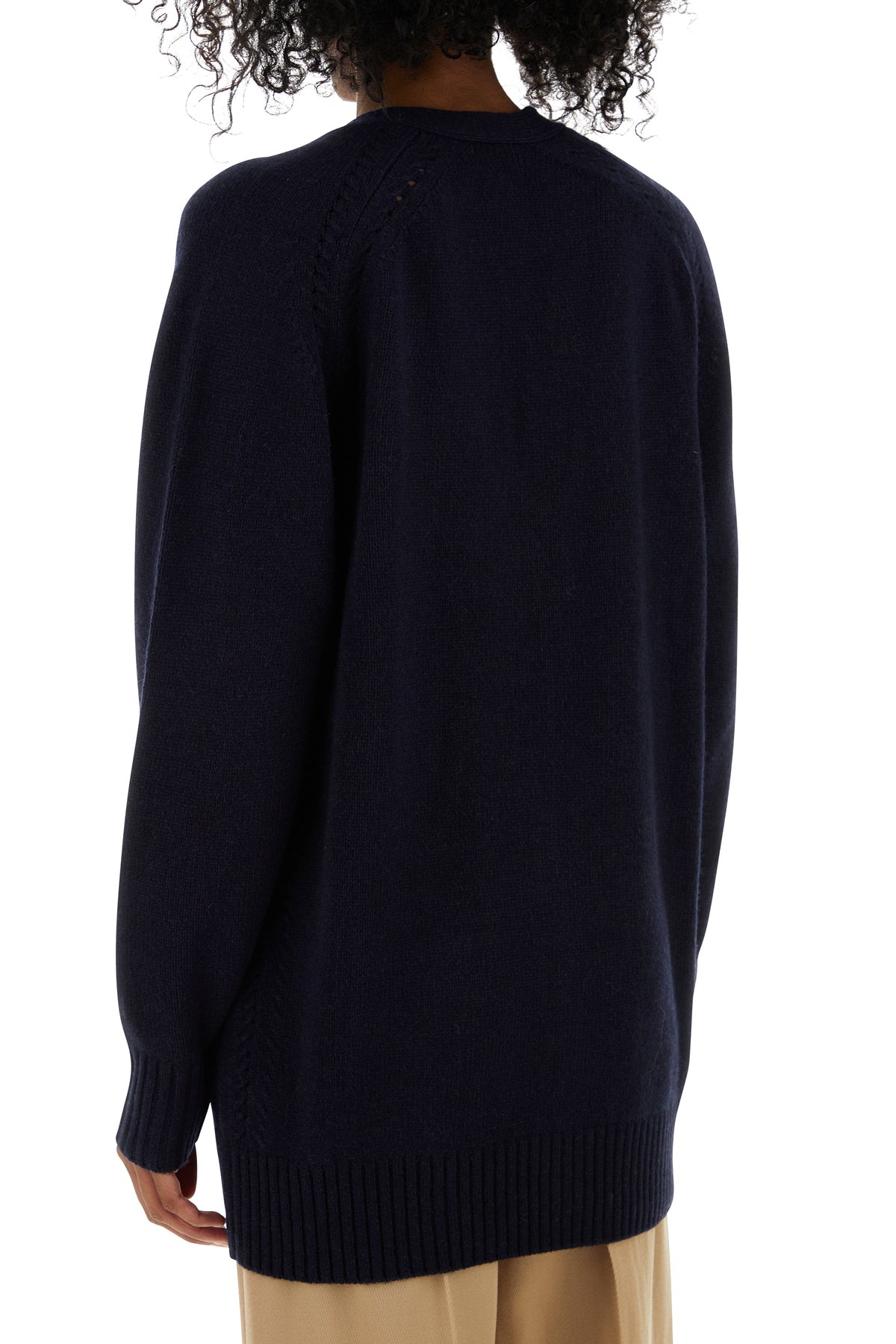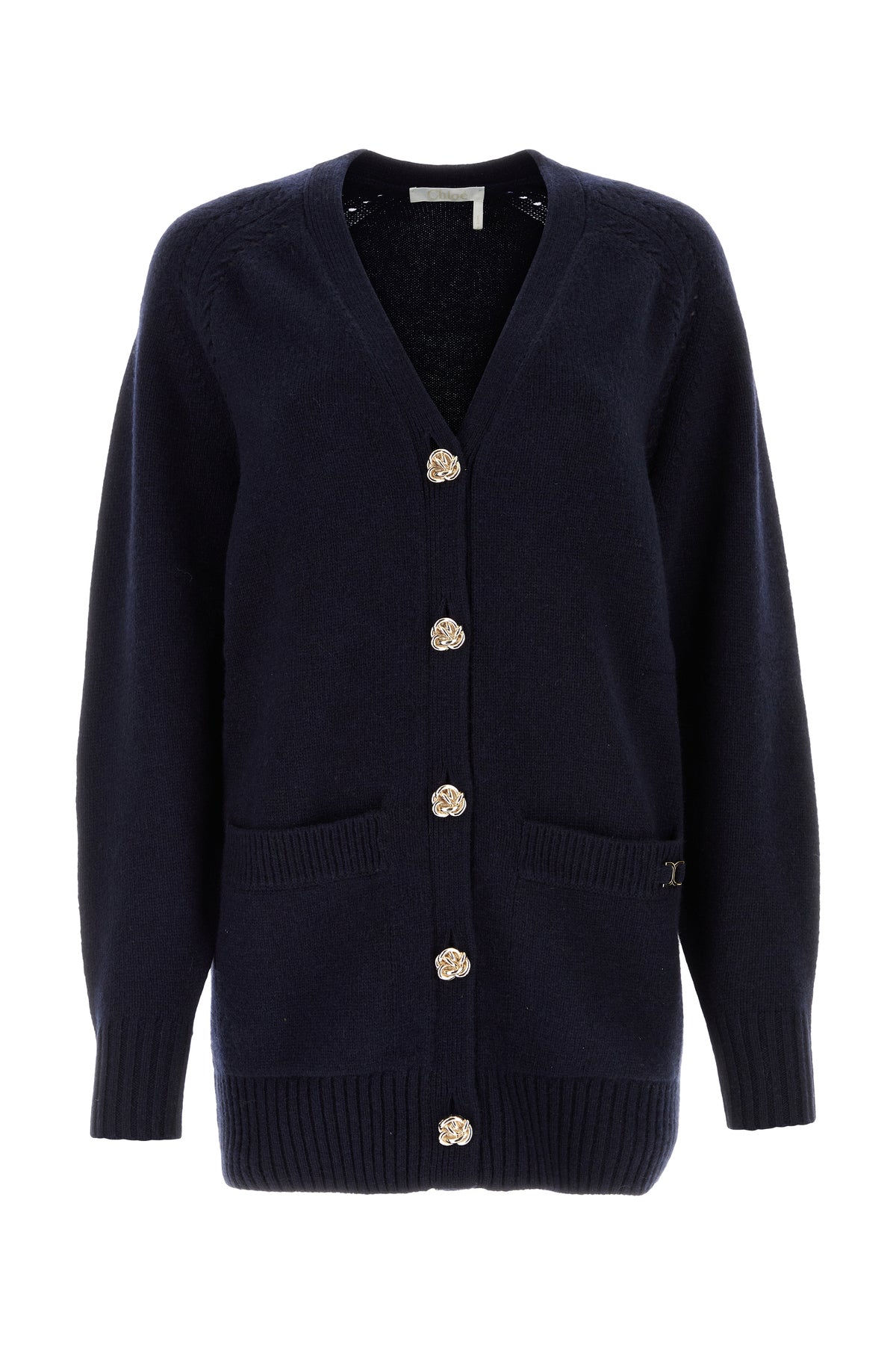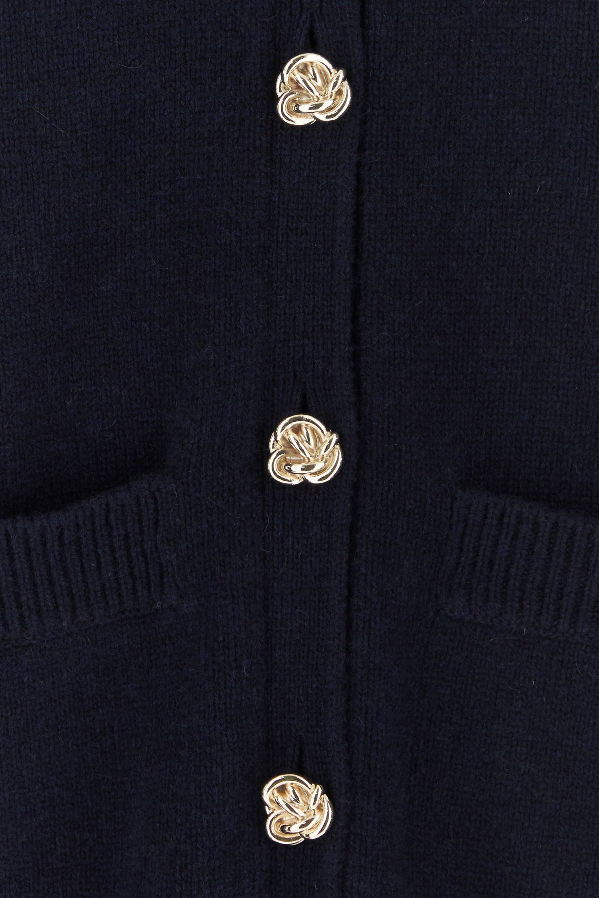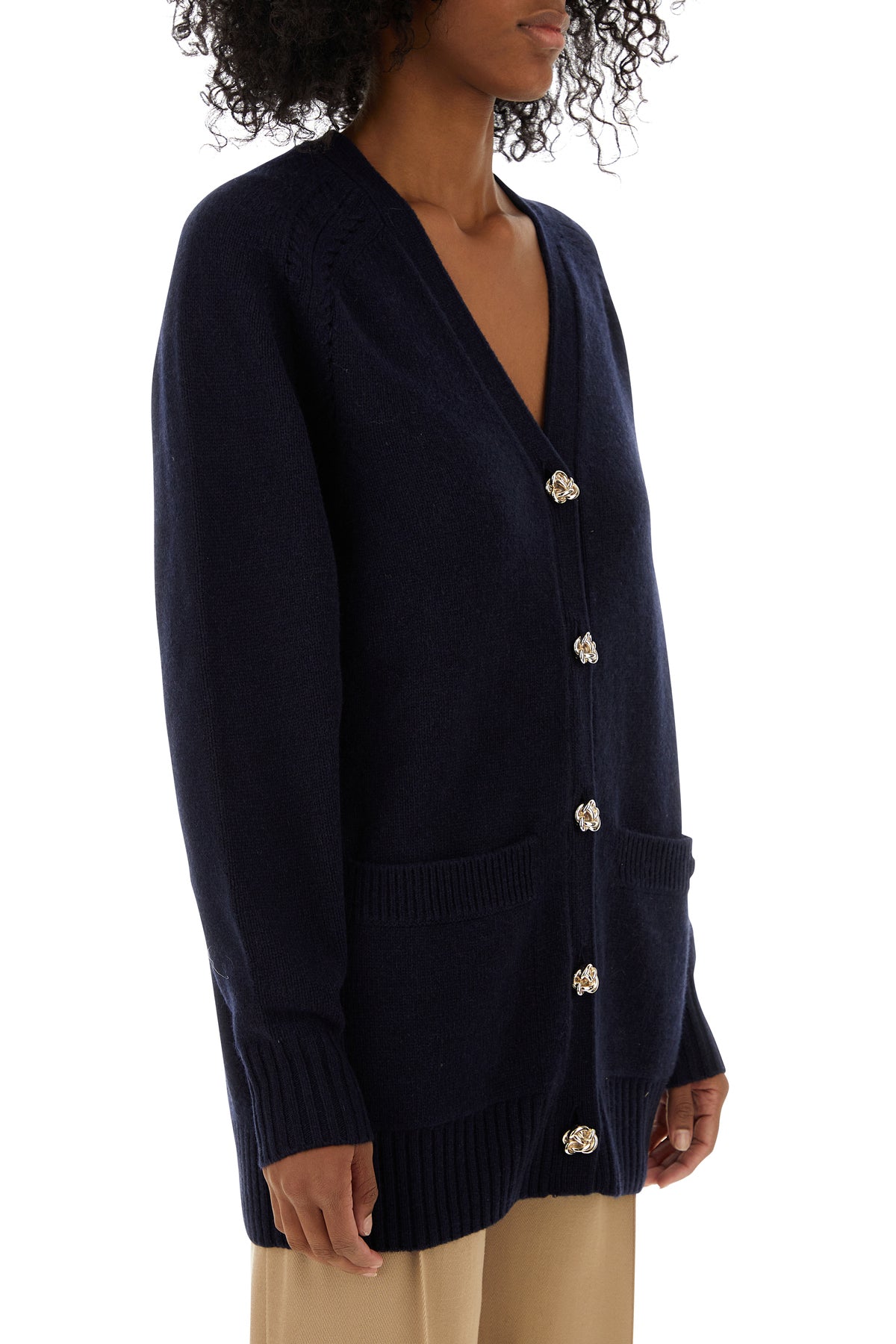 Cardigan realized in cashmere and wool enriched by peculiar metal detail at the front.
