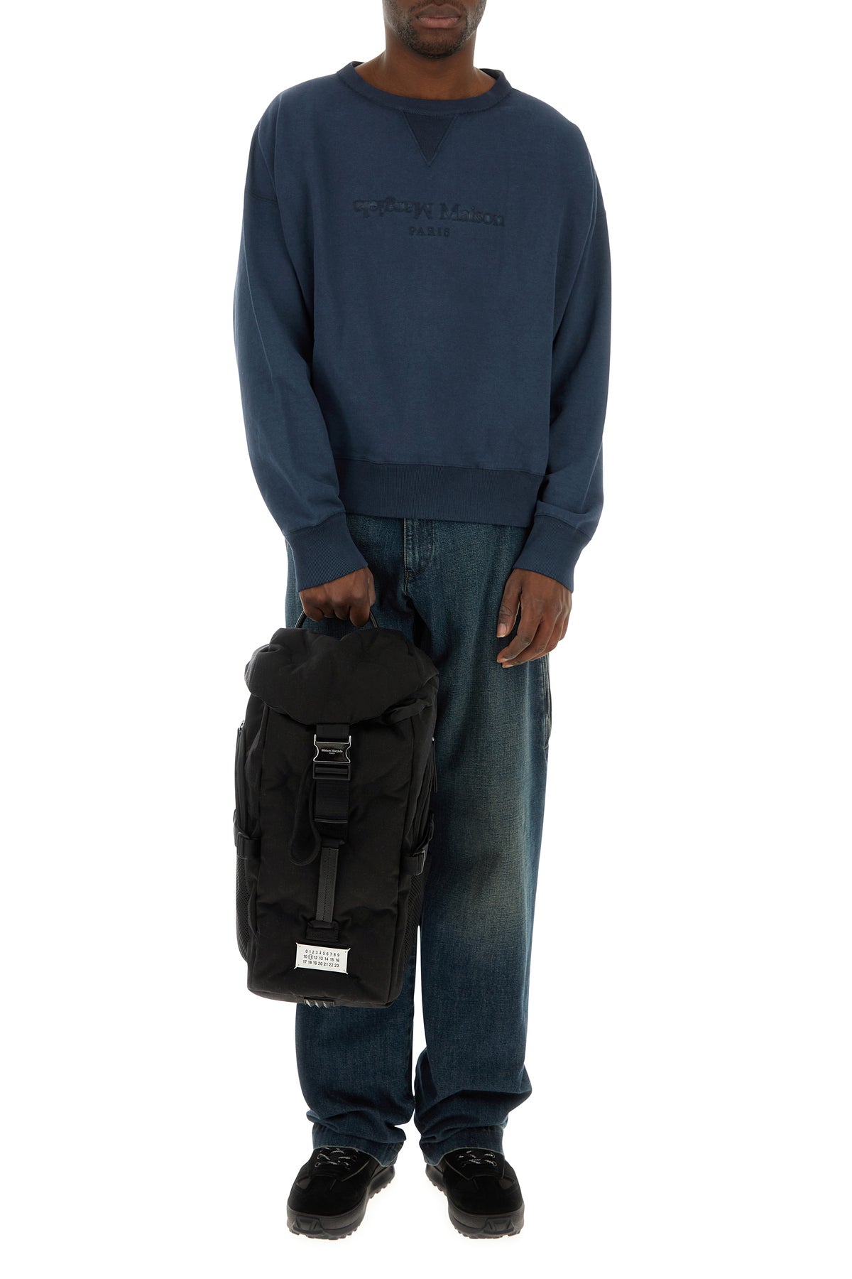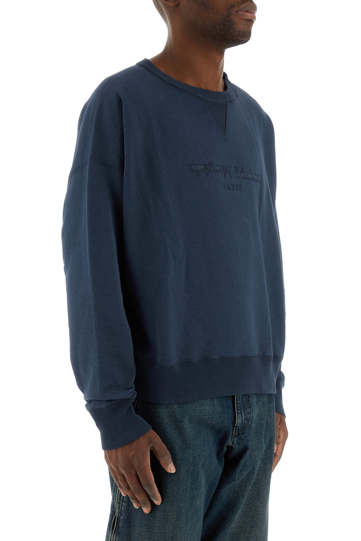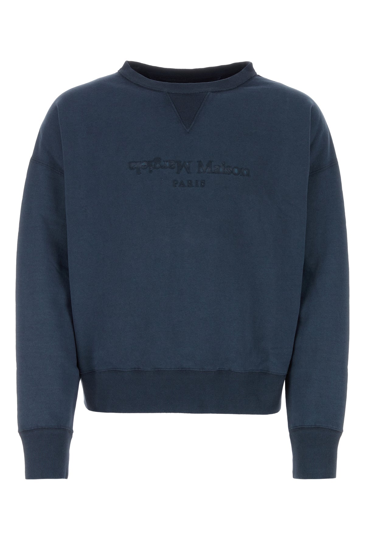 Sweatshirt realized in pure cotton characterized by tonal logoed embroidery on the chest and iconic contrasting stitchings at the back.