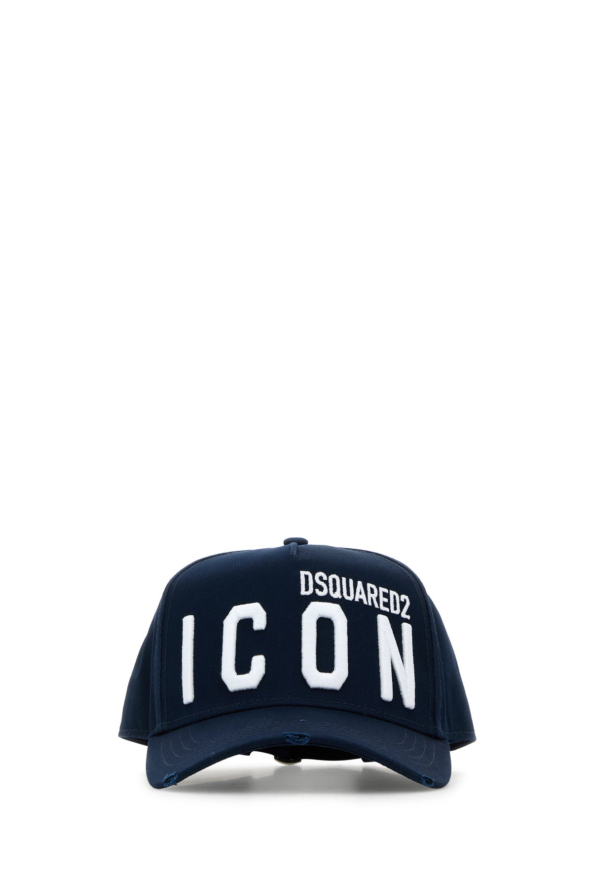 Baseball cap realized in slightly distressed pure cotton gabardine characterized by contrasting embroidered logo and contrasting Icon patch at the front.