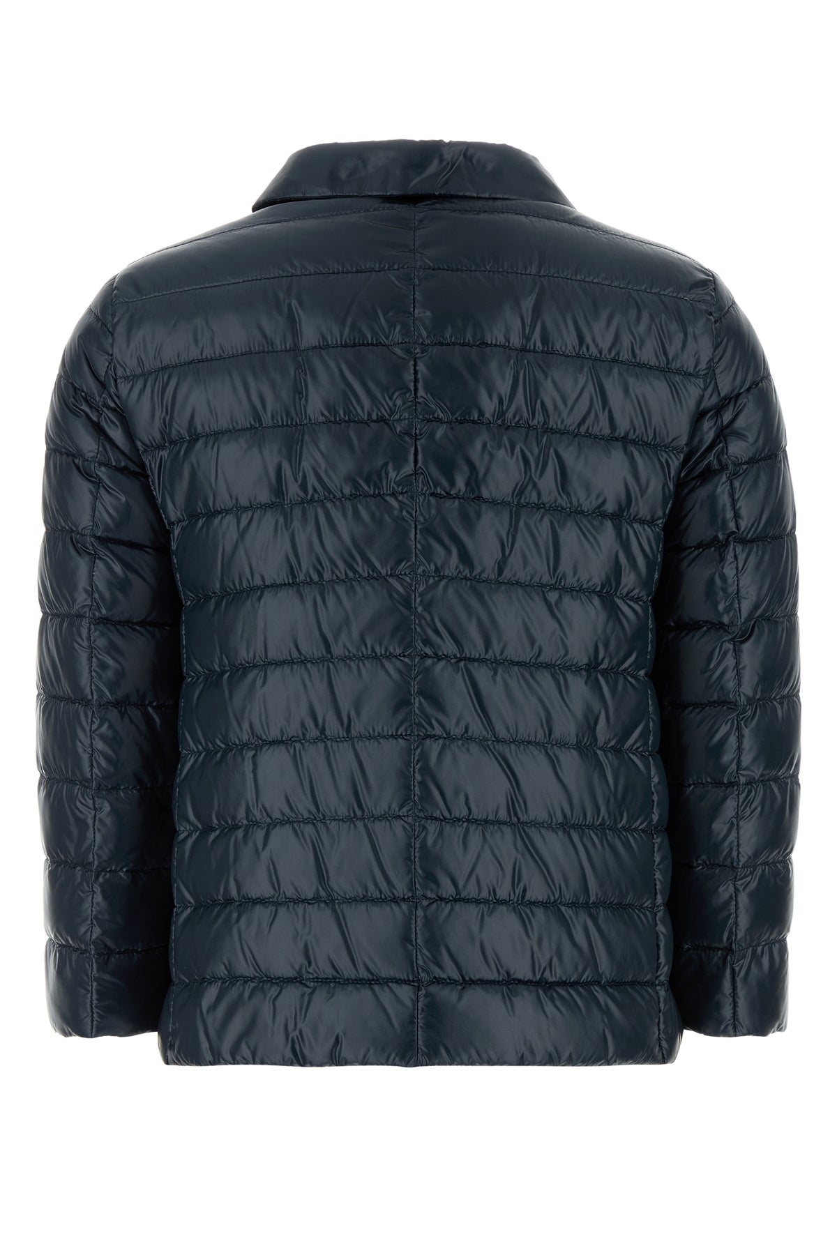 Down jacket realized in quilted nylon characterized by collar.