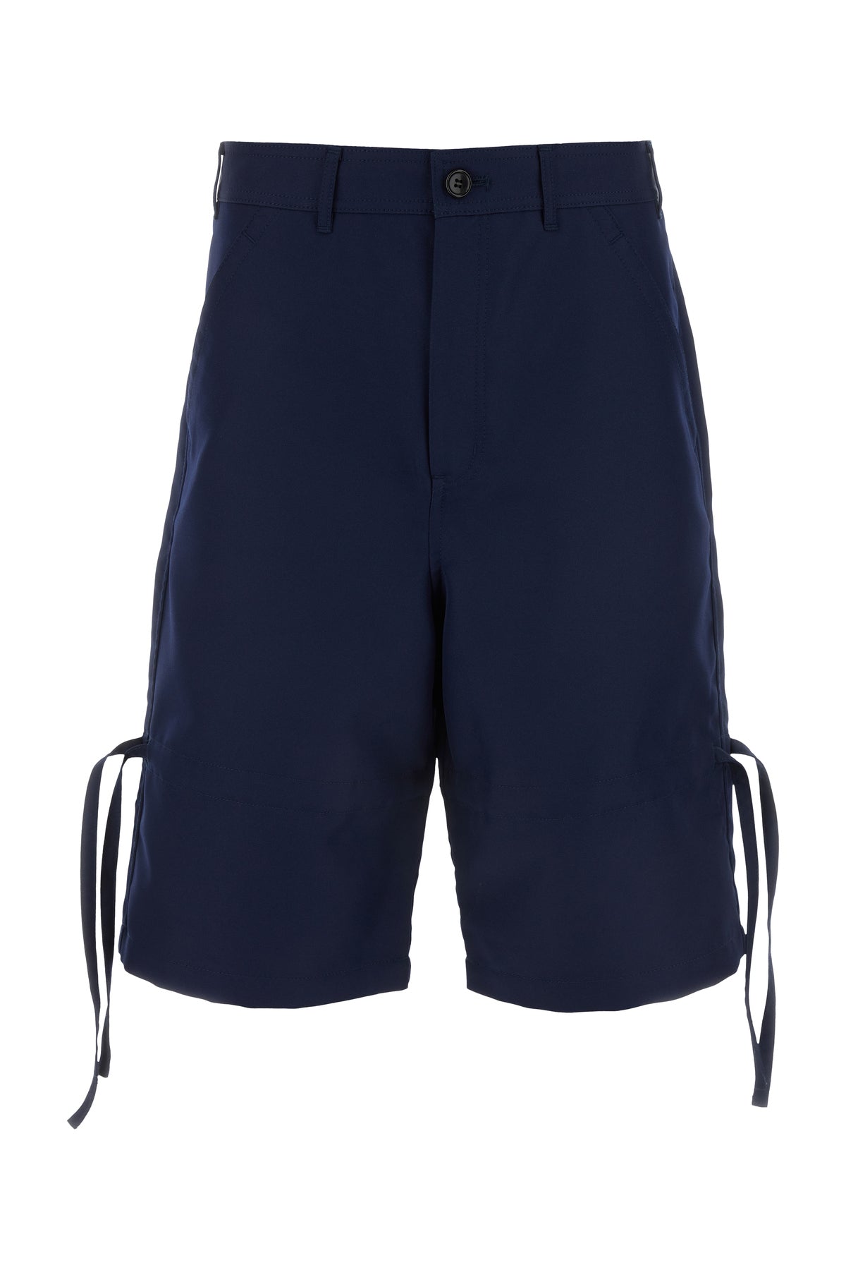 Bermuda shorts realized in polyester enriched by decorative ribbons on the sides.