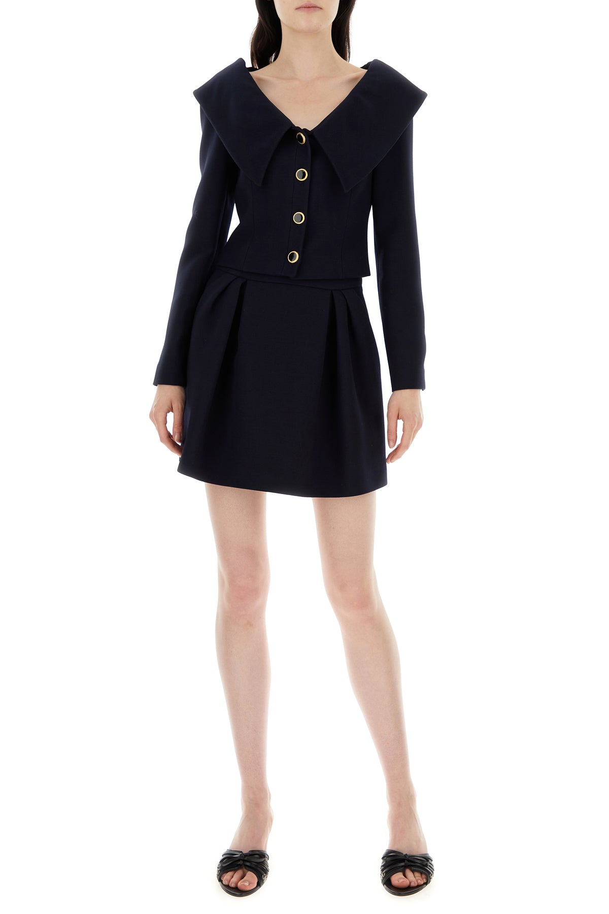 Mini skirt realized in pure virgin wool characterized by inverted pleats.