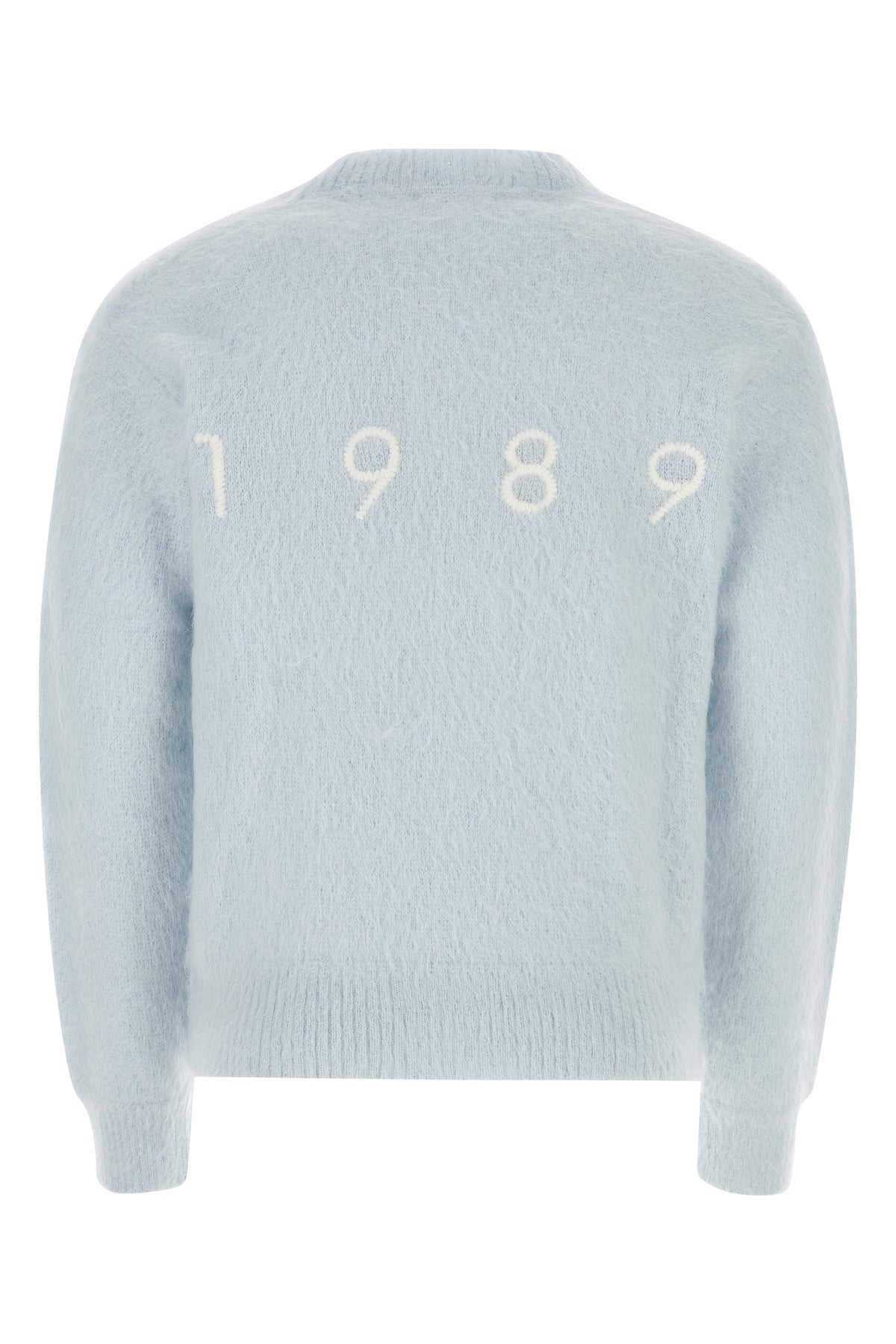 Cardigan realized in mohair blend characterized by contrasting embroidered logo at the back.