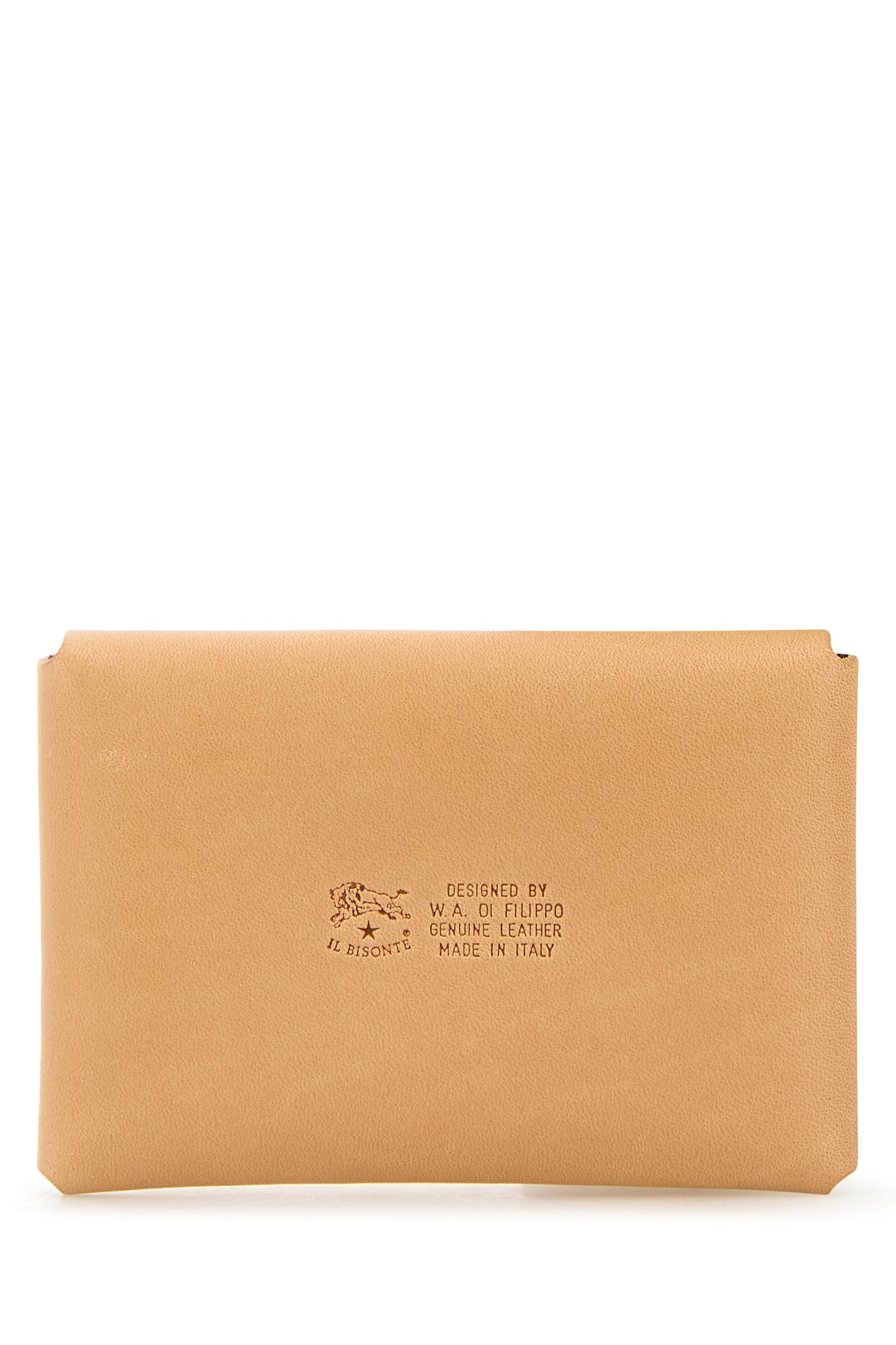 Card holder realized in bovine leather characterized by embossed logo at the front.