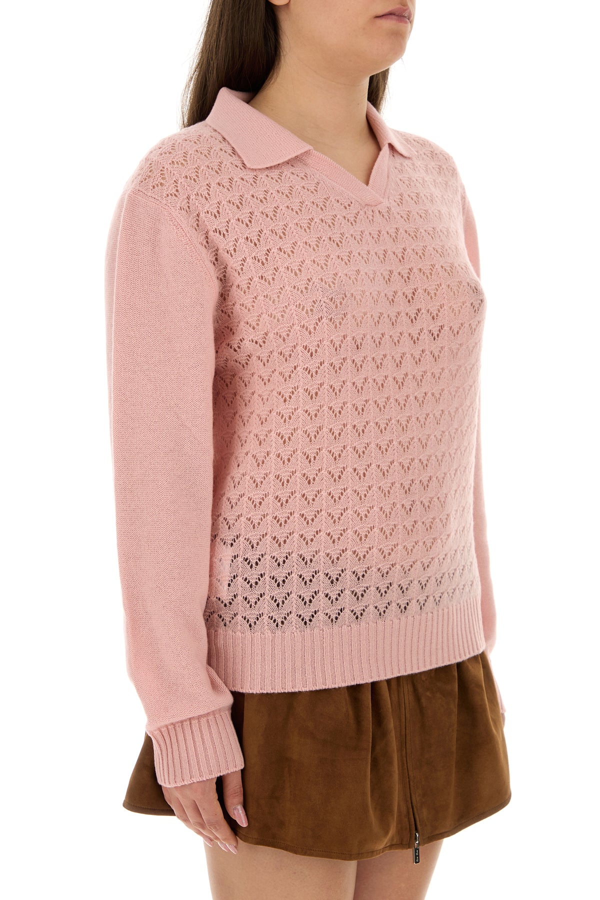 Pink cashmere polo shirt