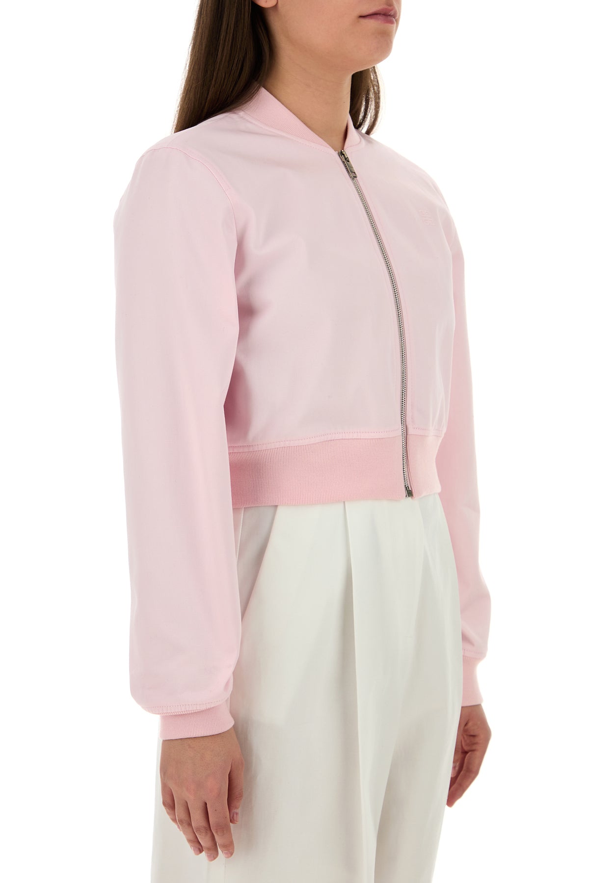 Cropped-cut bomber jacket realized in pure cotton characterized by tonal 4G embroidery on the chest and tonal embroidered logo at the back.