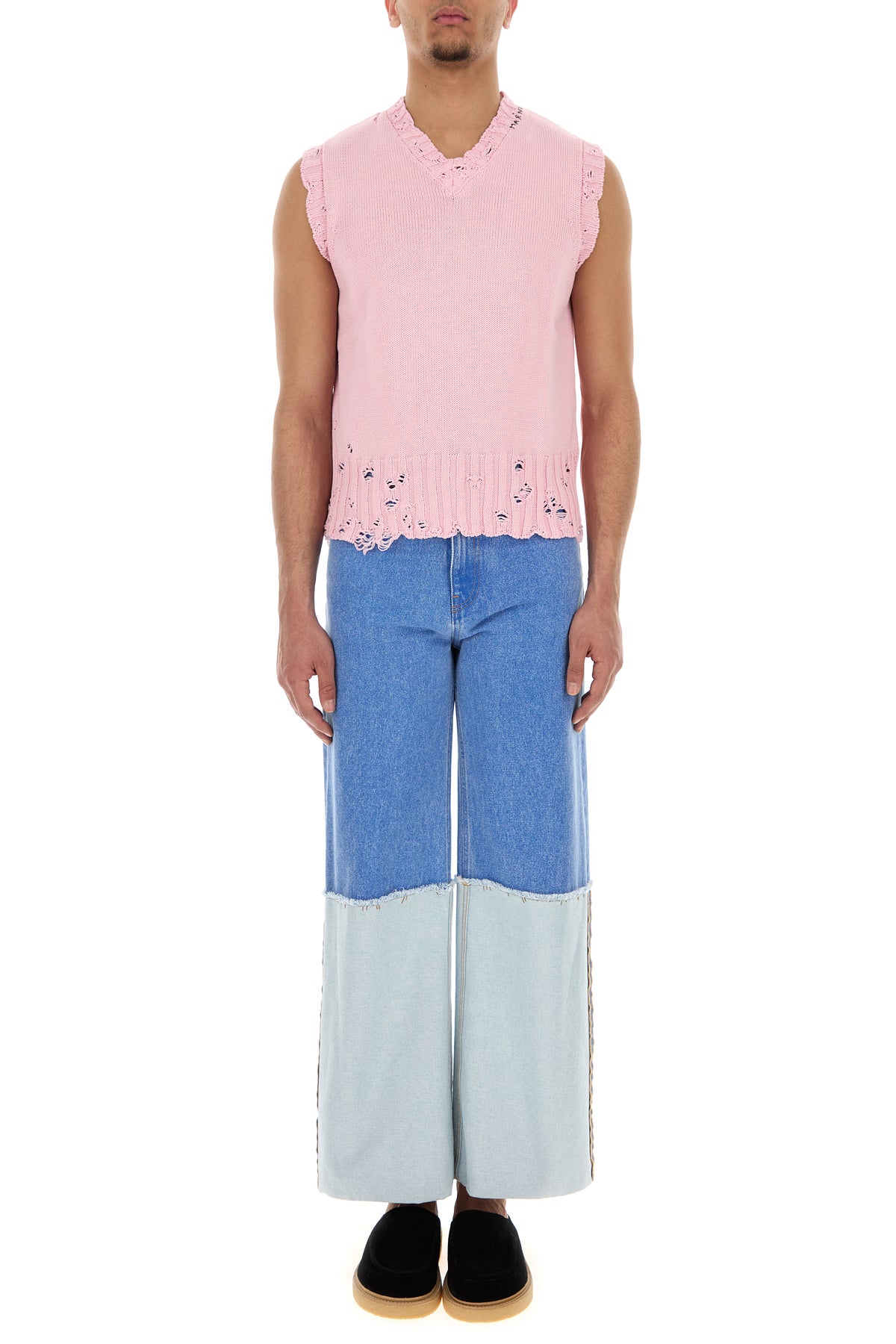 - Ribbed V neckline, arm holes and hemline