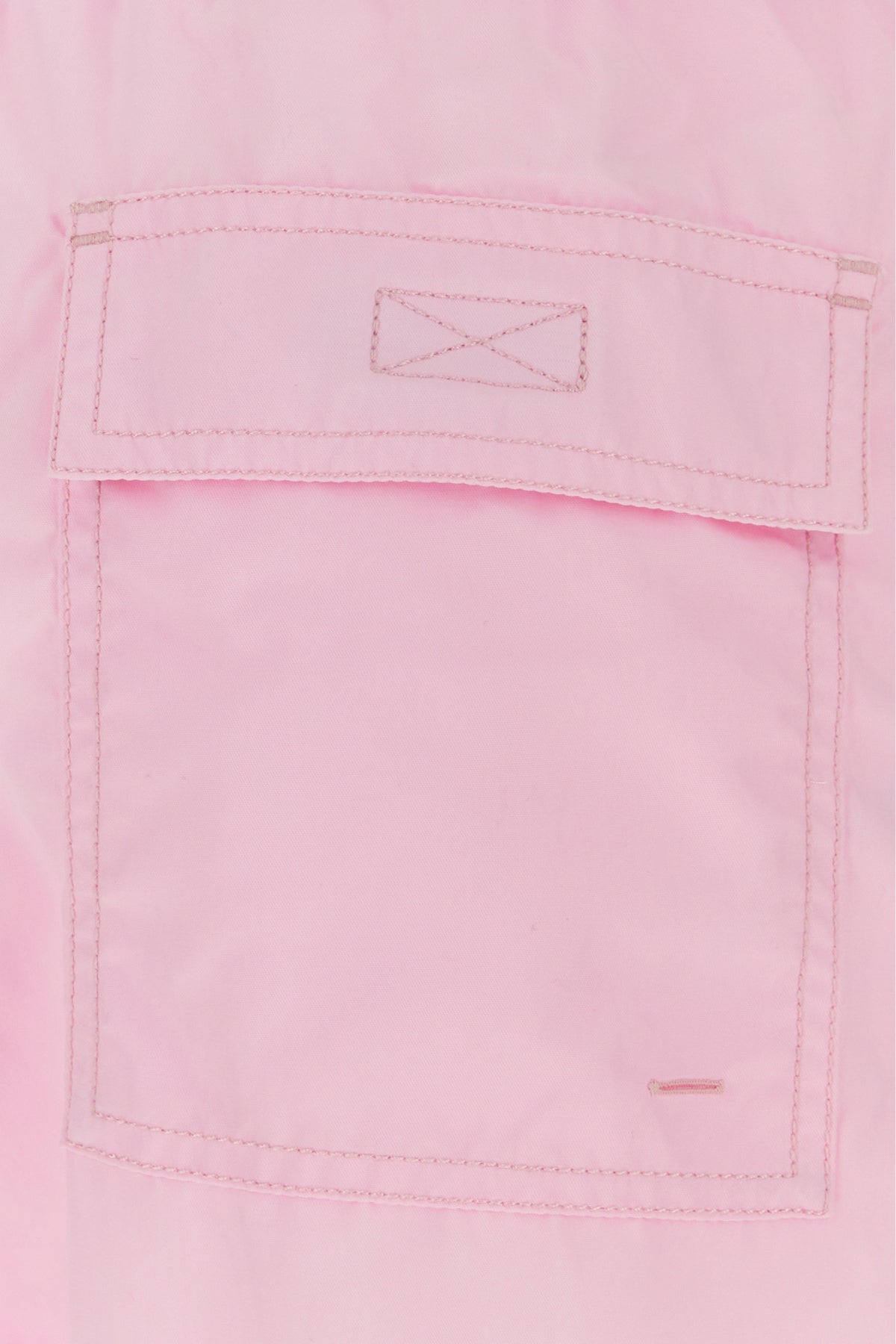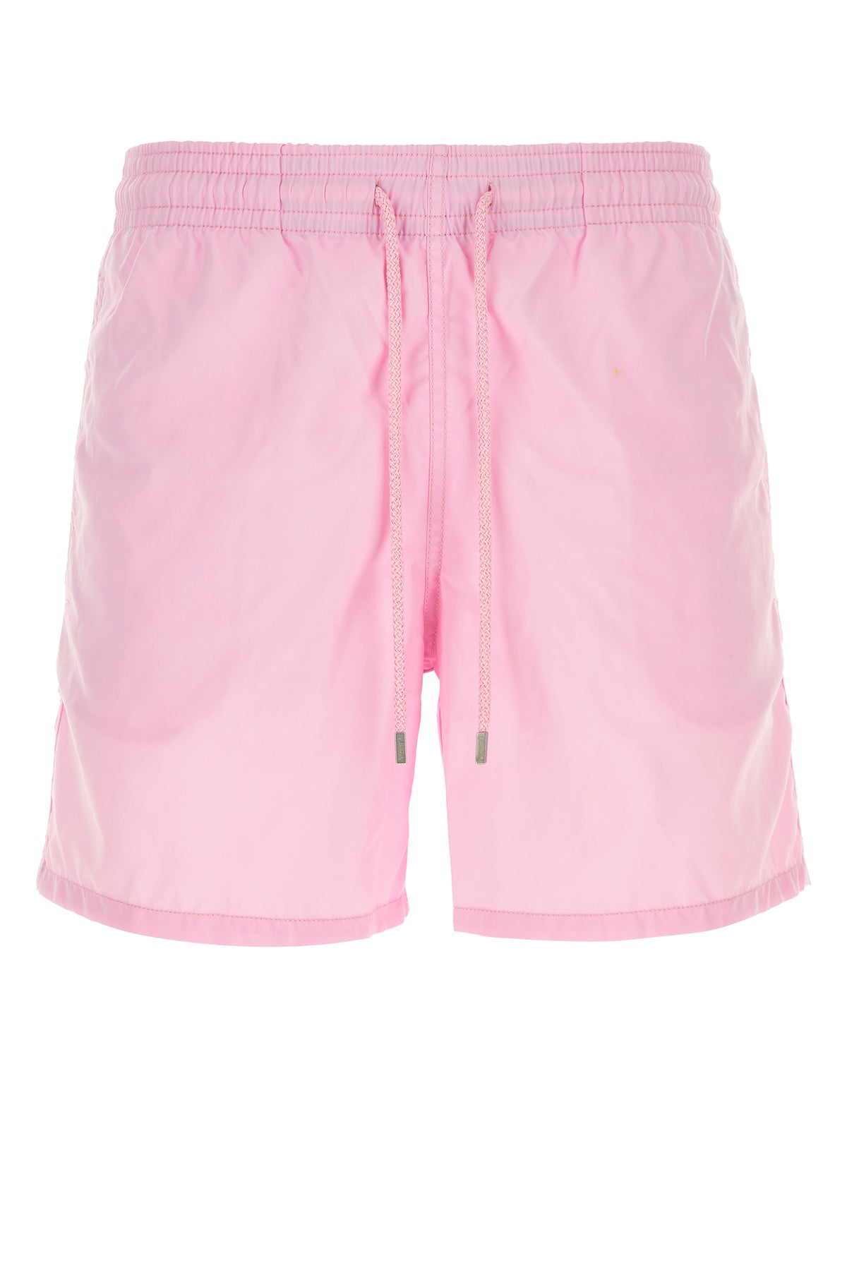 Swimming shorts realized in nylon enriched by contrasting logoed label at the back.